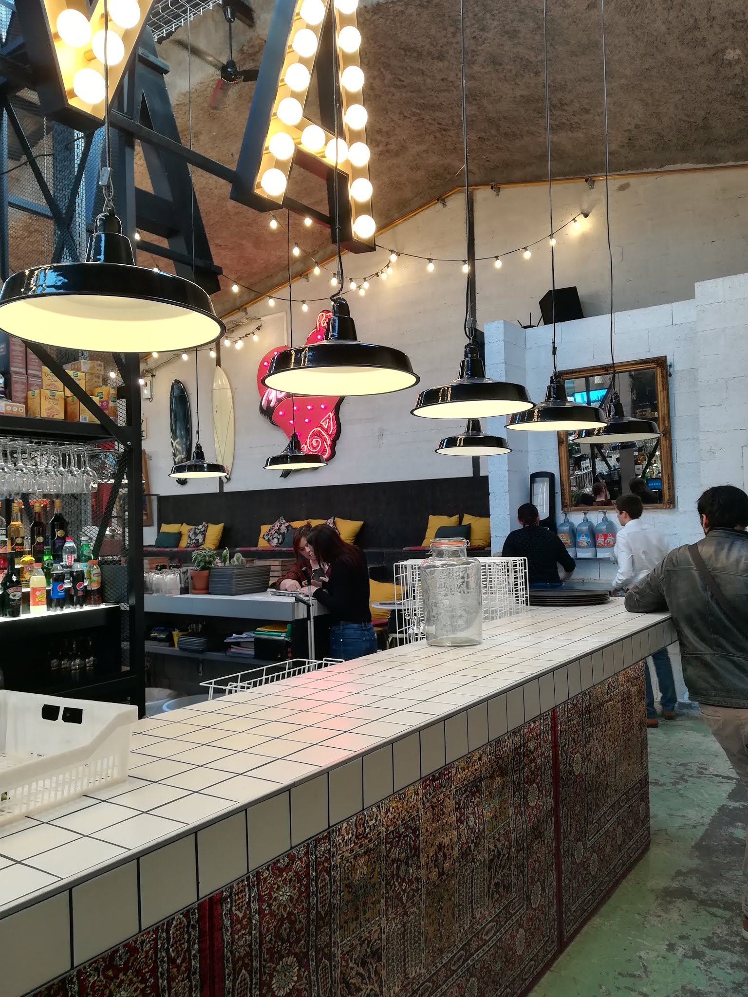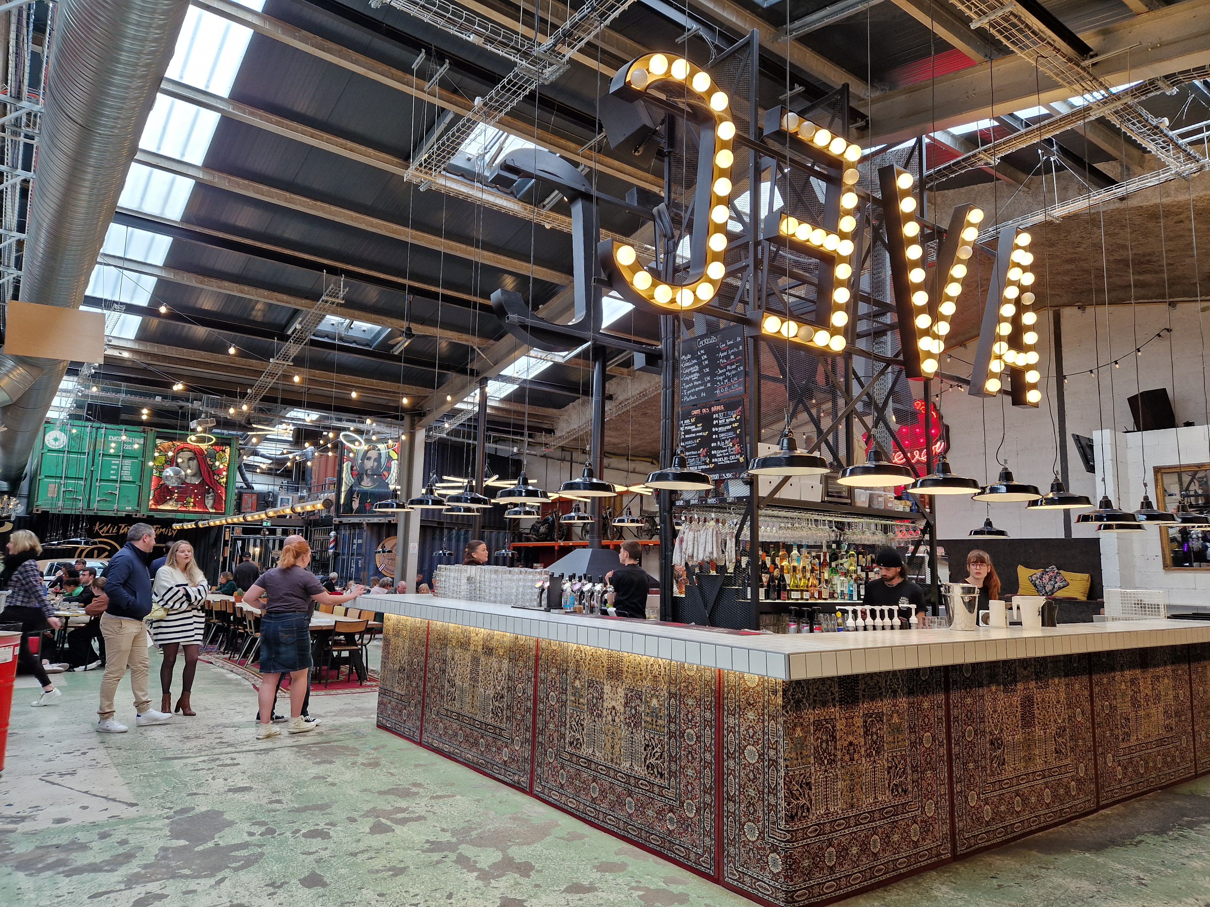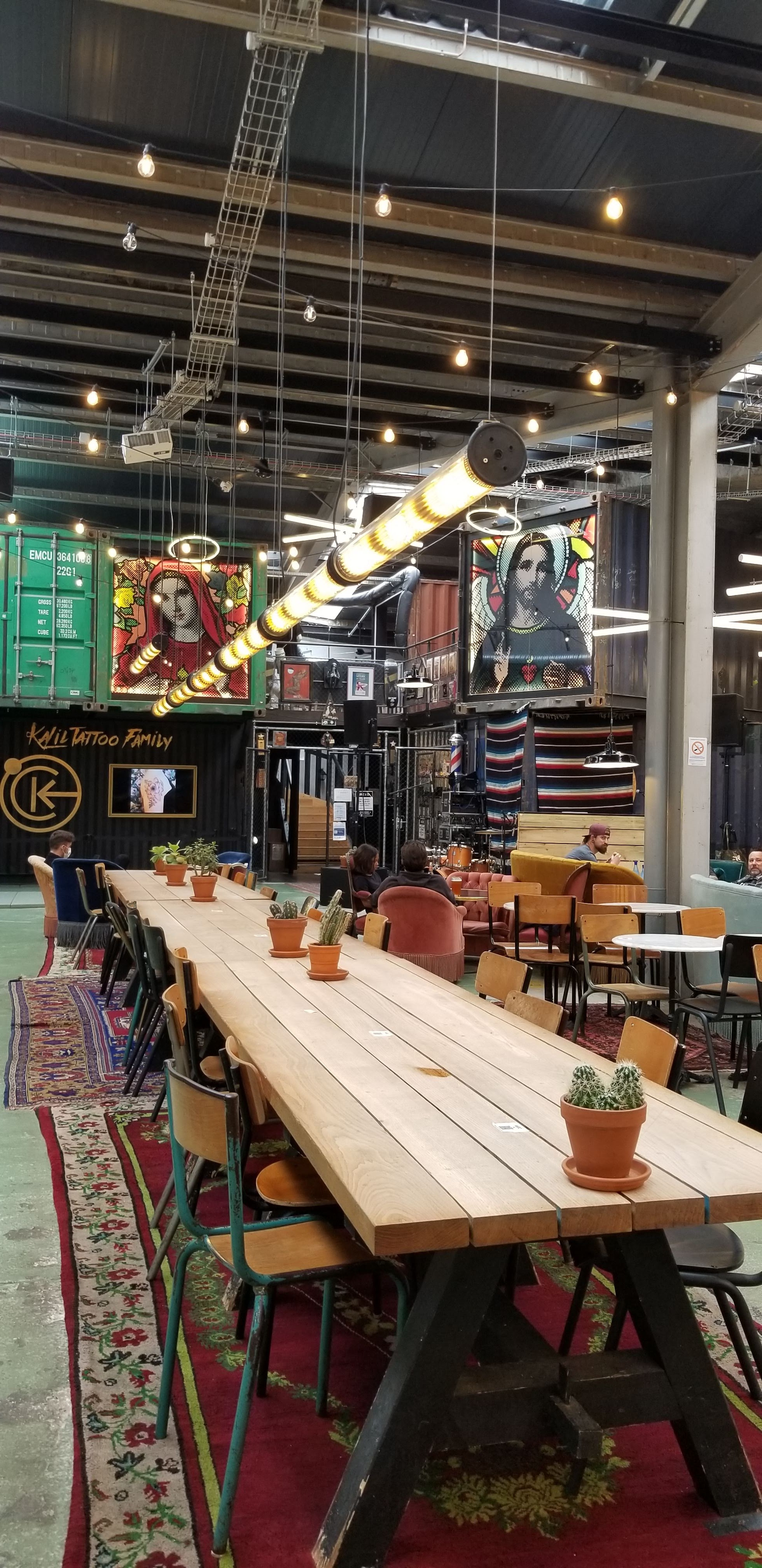 Un lieu assez original ou on y trouve bar, restaurant. Mais aussi tatoueur perceur, boutique de vêtements, etc... un bon concept. Petit bémol: la configuration de la file d'attente pour le bar et surtout le coin restauration qui fait que les clients passent souvent devants d'autres sans vraiment faire la queue.