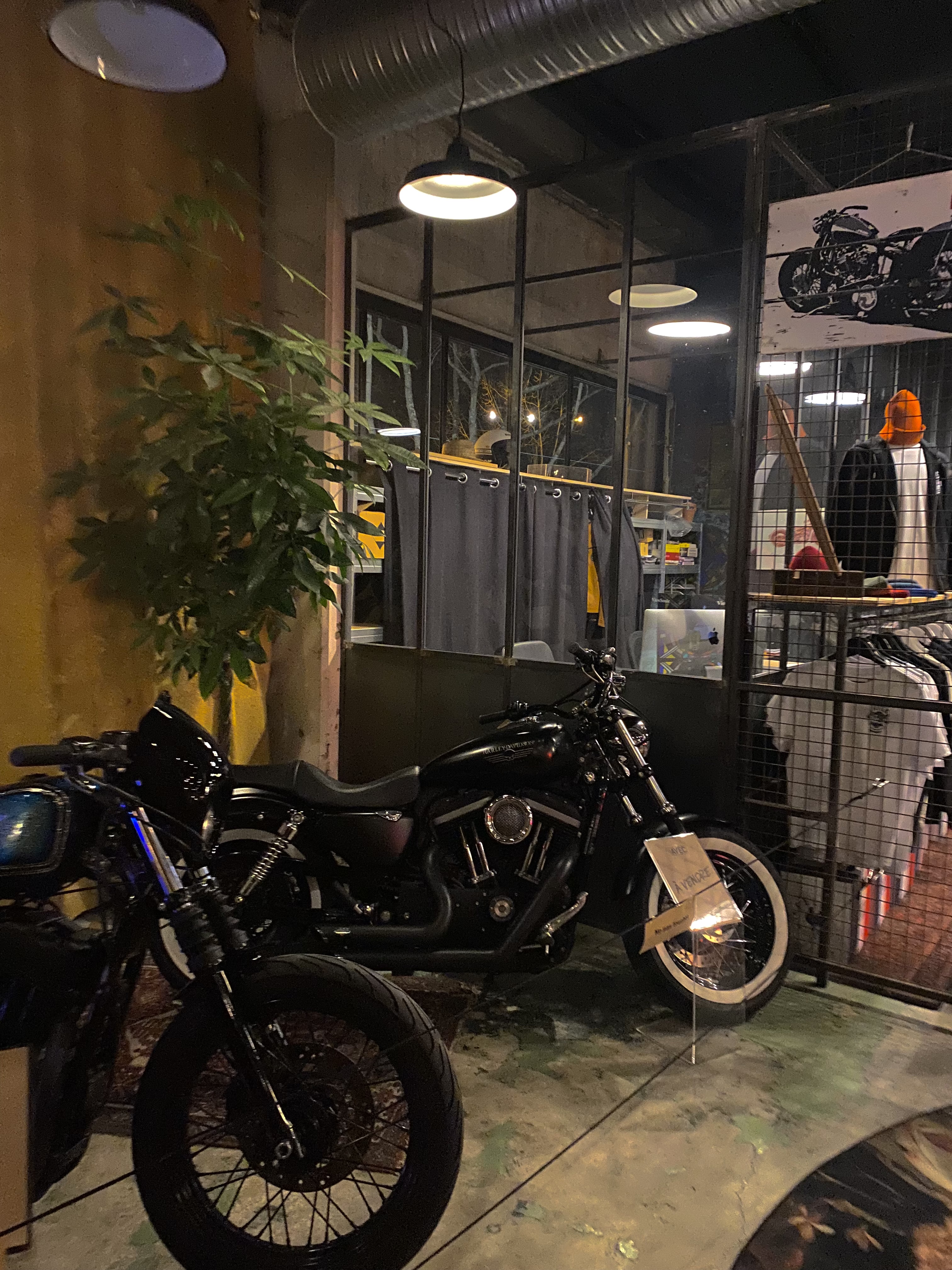 Très bel endroit pour passer du bon temps Garage moto Magasin de vêtements Tatoueur Barbier Bar Restaurant Par contre messieurs et mesdames les serveurs faites au moins semblant d'être heureux de travailler là... Vous avez un magnifique endroit... faites nous envie d'y revenir.