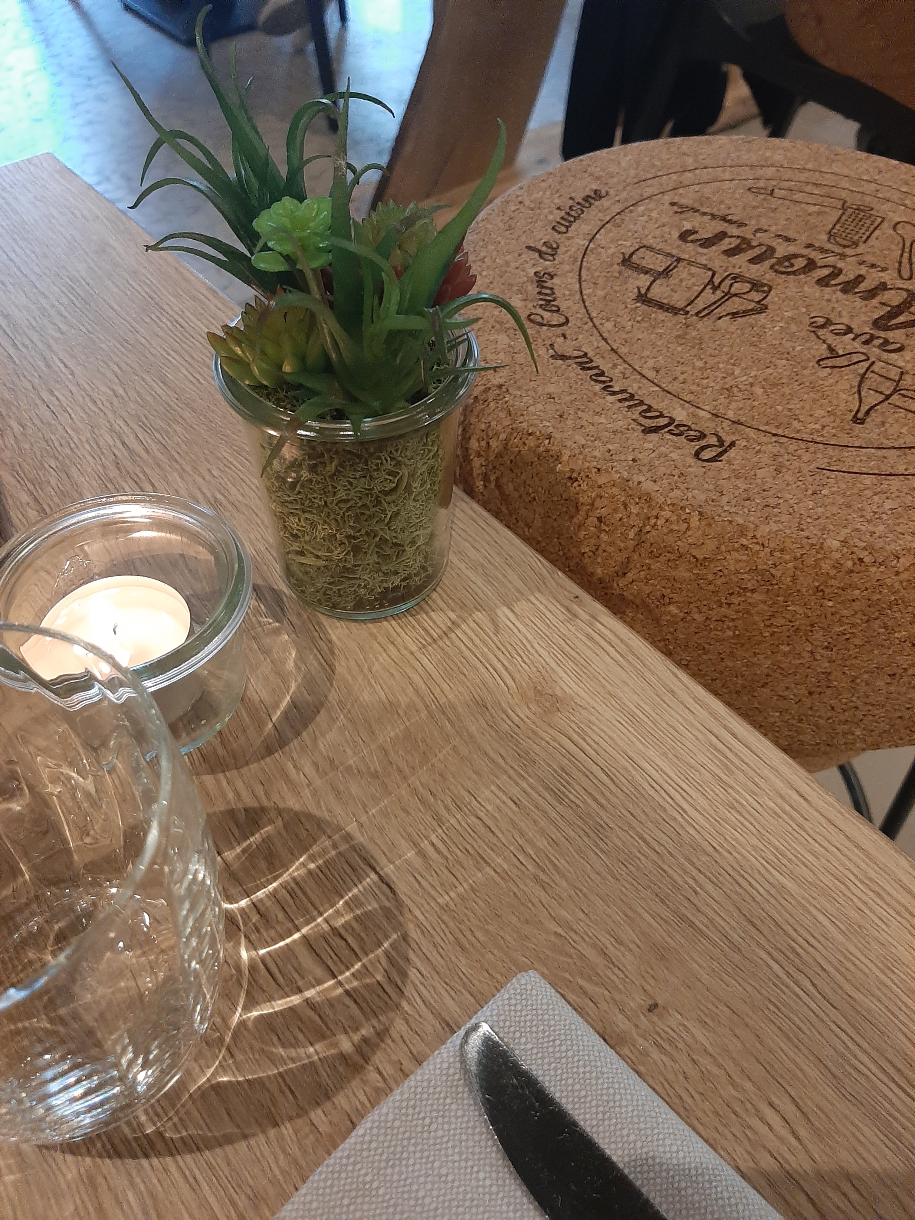 Super label écotable pour un établissement écoresponsable qui est à la fois un restaurant et aussi une adresse où prendre des cours de cuisine. Depuis la route, on ne remarque pas l'enseigne car elle est cachée derrière une autre. Il existait un autre restaurant précédemment mais la déco a été totalement revue. Elle y est maintenant fraîche et actuelle : bois et végétal y ont la part belle. La cuisine y est ouverte et transparente, derrière de grandes vitres dans l'esprit atelier d'artiste. On y voit officier la jeune Cheffe et son équipe dynamique. Accueil aimable et professionnel. Service attentif et soigné, par le patron lui-même et par de jeunes gens qui apprennent le métier avec sérieux. Petite carte proposant au maximum des produits locaux et de saison, y compris dans les boissons (carafes d'eau du robinet microfiltrée à volonté pour 3€, jus de fruits, limonade, Mosl cola, bière Quercus de la brasserie du Tichemont, etc). Mise en bouche offerte. En permanence une pêche du jour, de la viande, un plat végétarien. Beau choix de belles entrées travaillées. Desserts intéressants. Très belle carte de vins. Carte olfactive pour les thés et infusions : original ! Détenir le label écotable, c'est etre écoresponsable et s'engager à limiter le gaspillage alimentaire, à privilégier les circuits courts ainsi que les produits locaux et de saison, à réduire et trier les emballages et déchets, système de retour des bocaux en verre lorsque l'on a emporté le reste de son assiette... Autant de bonnes pratiques écologiques. A découvrir absolument selon moi.