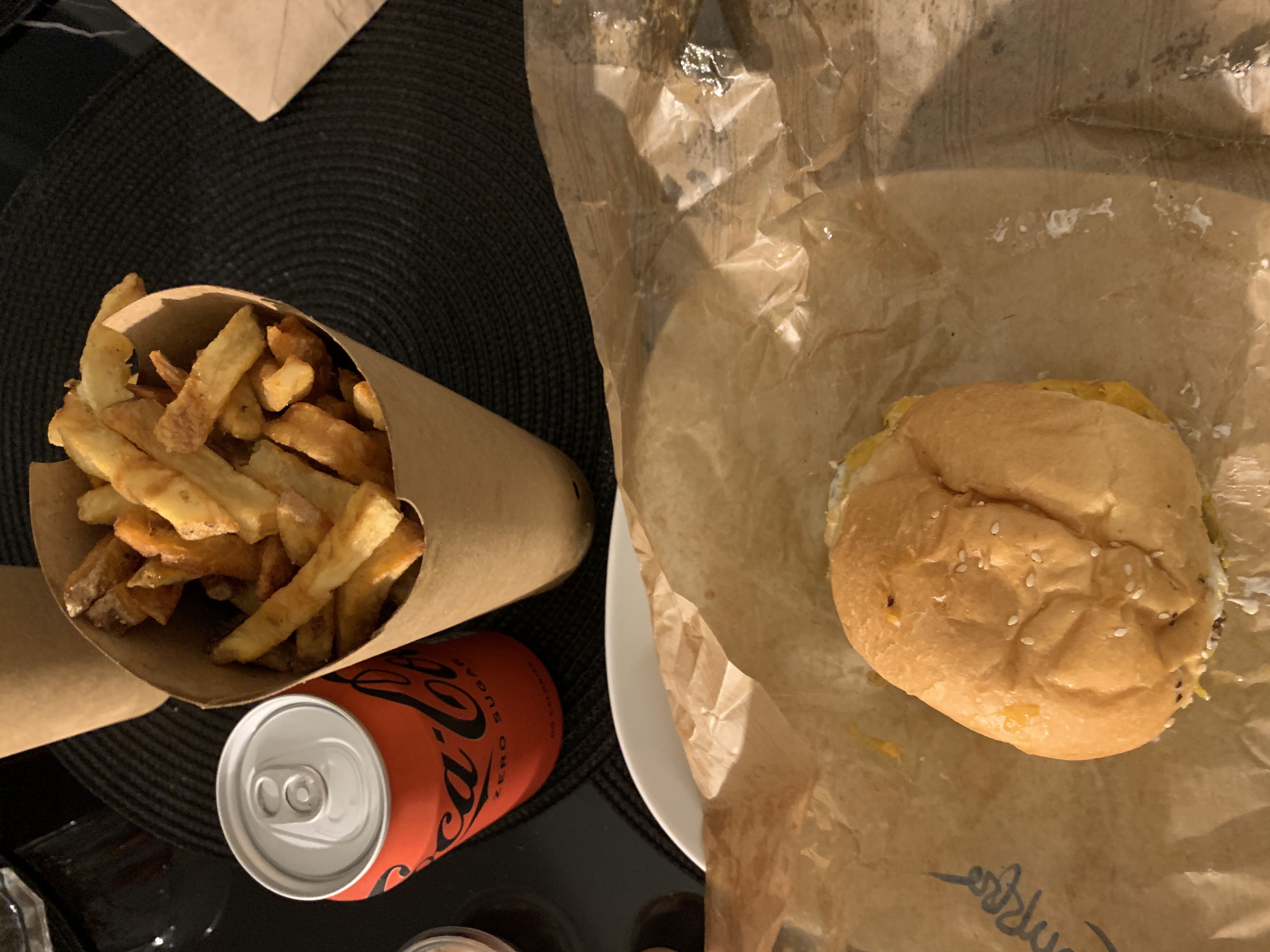 Burger correct mais pas très gros ni très garni et ingrédients basiques, par contre frites très grasse, très cuites, très fines et petites. Ça ressemble plus aux restes de frites qu’on ne mange pas dans sa portion :( Plutôt déçue pour cette première commande. Un point positif tout de même pour la viande qui est plutôt bonne et la livraison rapide mais je ne commanderai probablement pas de nouveau ;(