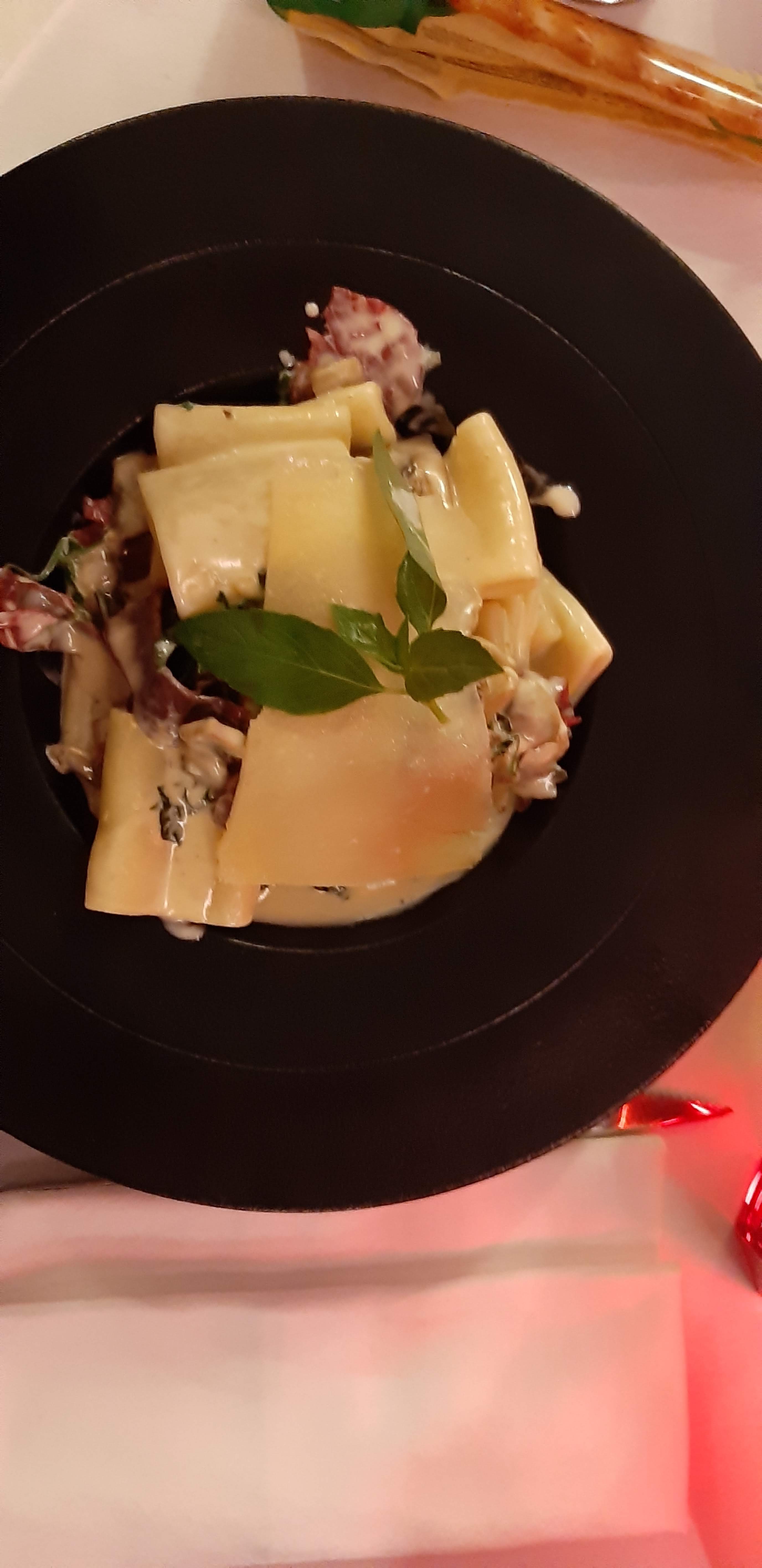 Lasagnes très douteuses. Aucun intérêt gustatif, trop salé et surtout bourratif. Pareil pour le tiramisu, beaucoup trop sucré mais bien exécuté.