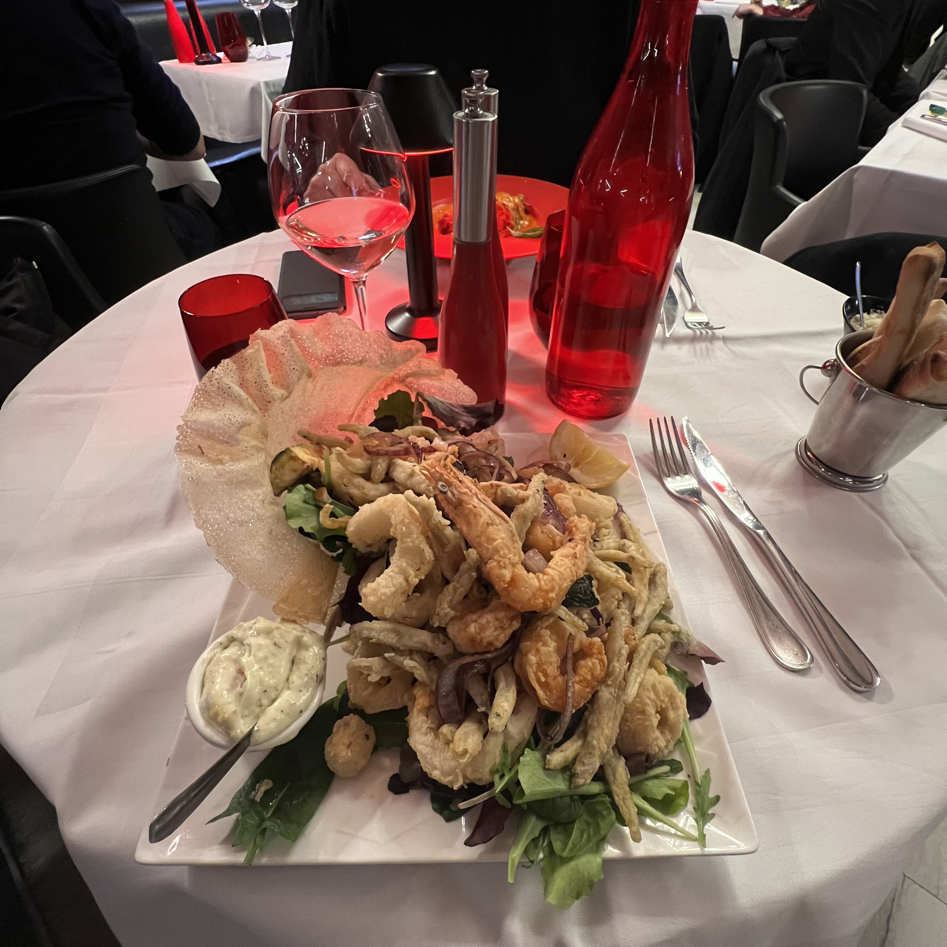 Tout est parfait, très bon service on y mange très bien . Mon plat préféré : FRITTO MISTO DI MARE Généreuse assiette de friture de calamars, éperlans, gambas, crevettes, oignons rouges et sa verrine de sauce tartare. Je recommande le restaurant. Fréquence 1 fois par mois.