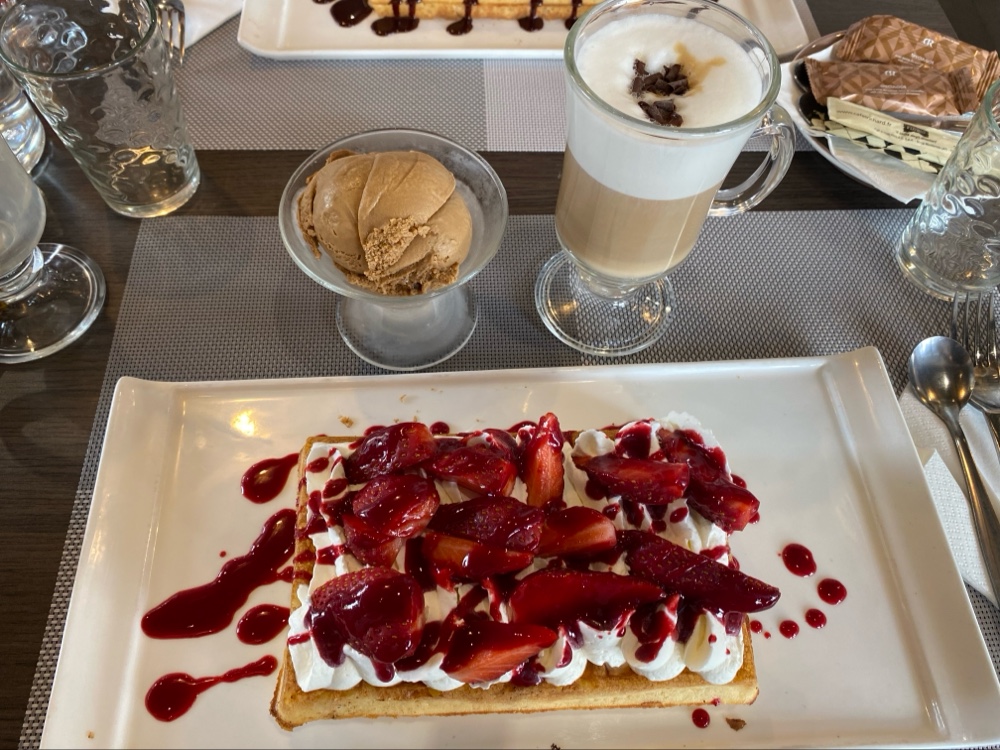 Un délice, quelle belle idée des gaufres à la place des galettes ou crêpes. Un vrai délice pour les gaufres quand aux glaces, incroyablement bonnes. Ça restera une belle surprise des vacances. Mille merci pour mes papilles