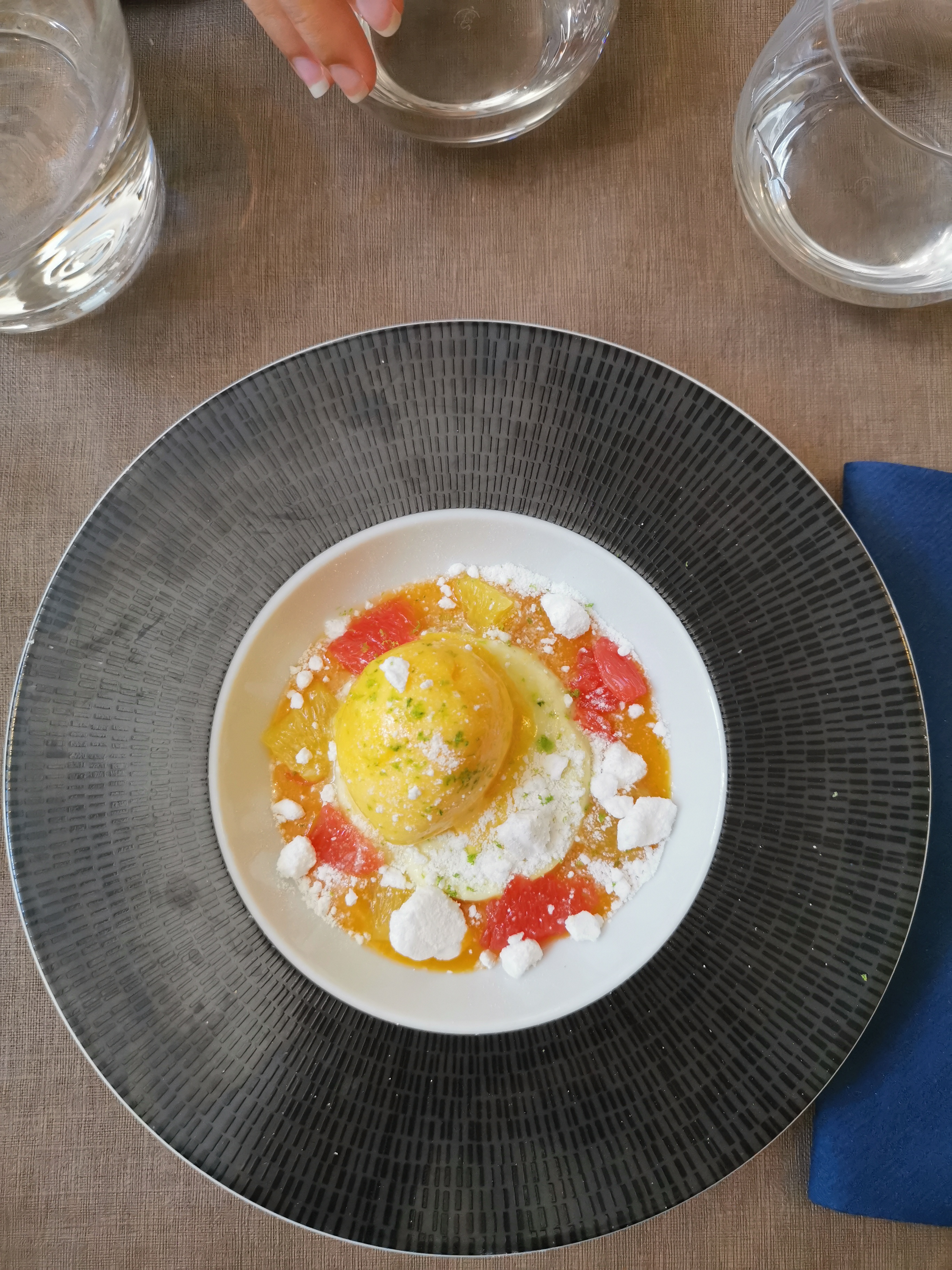 Excellent repas 5 étoiles. Nous avons eu le menu à 36 euros et chaque plat était délicieux. La salade de tomates, mozzarella et truffes d'été était incroyable. J'ai essayé la truffe d'été pour la première fois à Avenio. Le service était également 5 étoiles. Merci beaucoup pour ce repas ! Nous espérons pouvoir revenir.