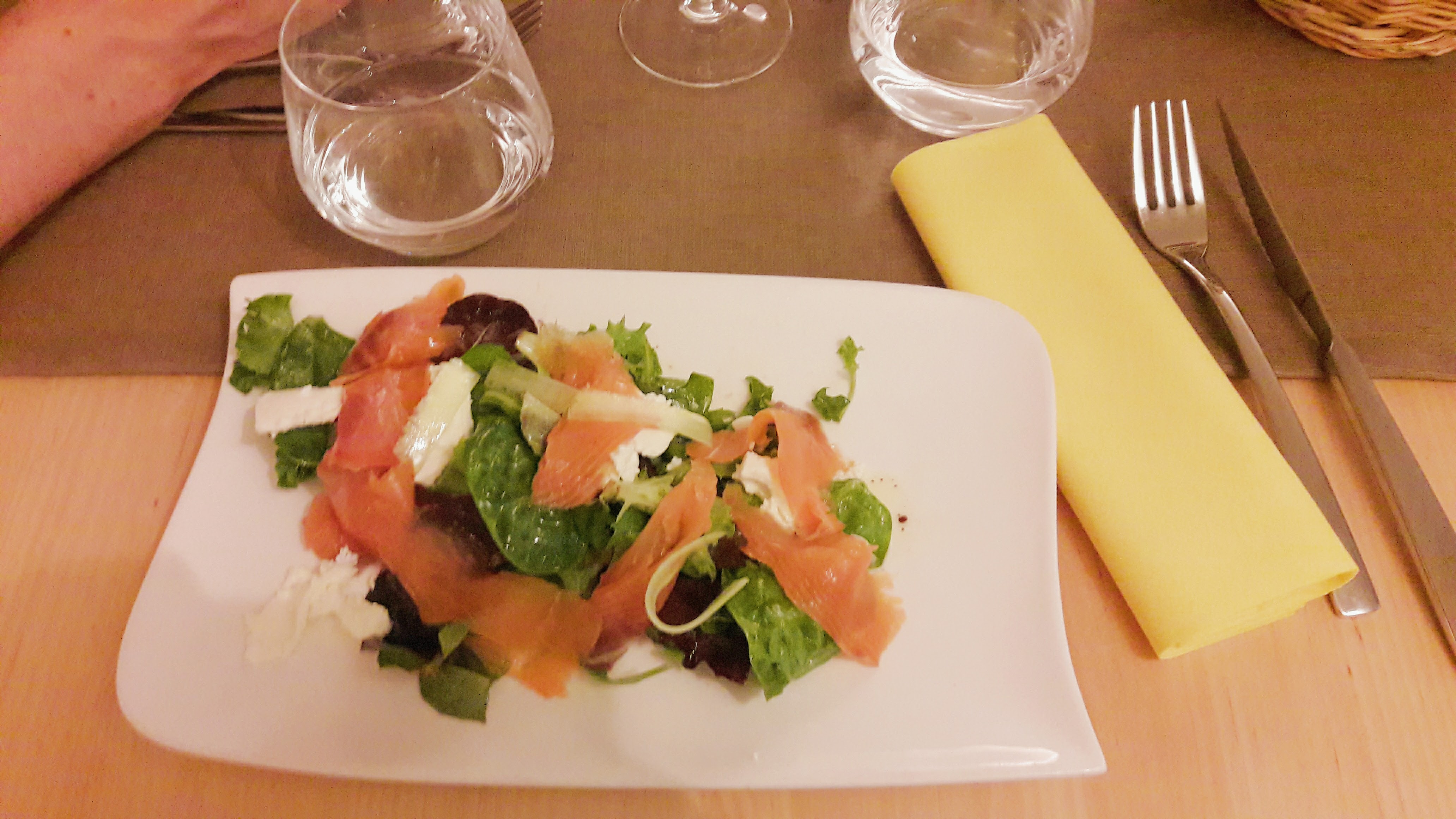 Déjeuner miraculeusement délicieux à un prix miraculeusement raisonnable. Beau service, impeccable, impeccable. Ne manquez pas le saumon et le risotto et j'ai adoré la salade de thon. J'aimerais pouvoir y manger tous les jours ! La femme du chef est une restauratrice douée, le personnel est adorable et tout le monde parle couramment l'anglais ! Note Michelin bien méritée à tous points de vue !!!!
