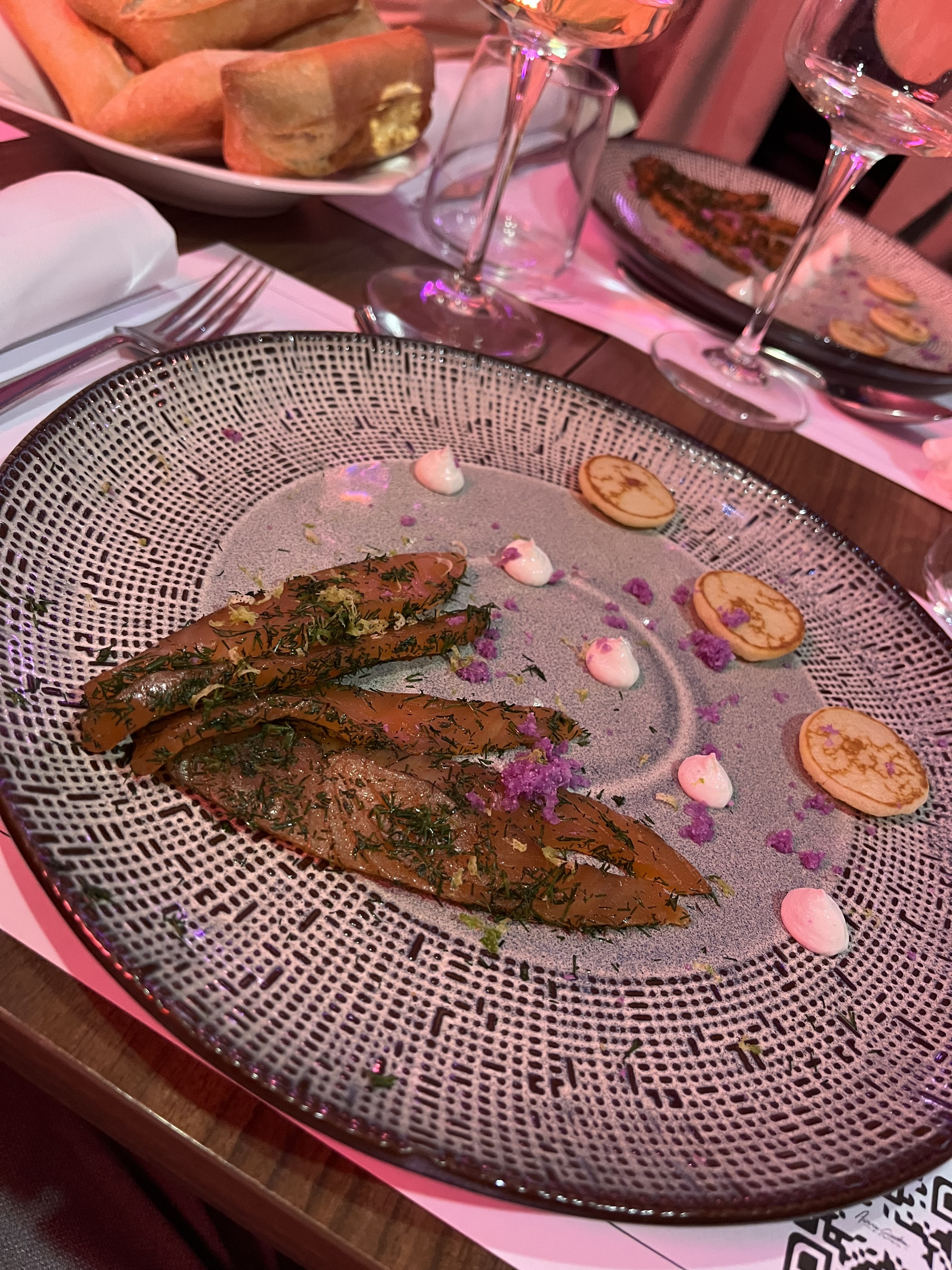 Le rose etonne en entrant dans ce restaurant... Mais d on s'y sent imlediatemenr bien. Acceuil tres sympa Un chef qui cuisine au top Une chanteuse avec une voix de dingue et un repertoire tres varié Bref une tres bell soirée..