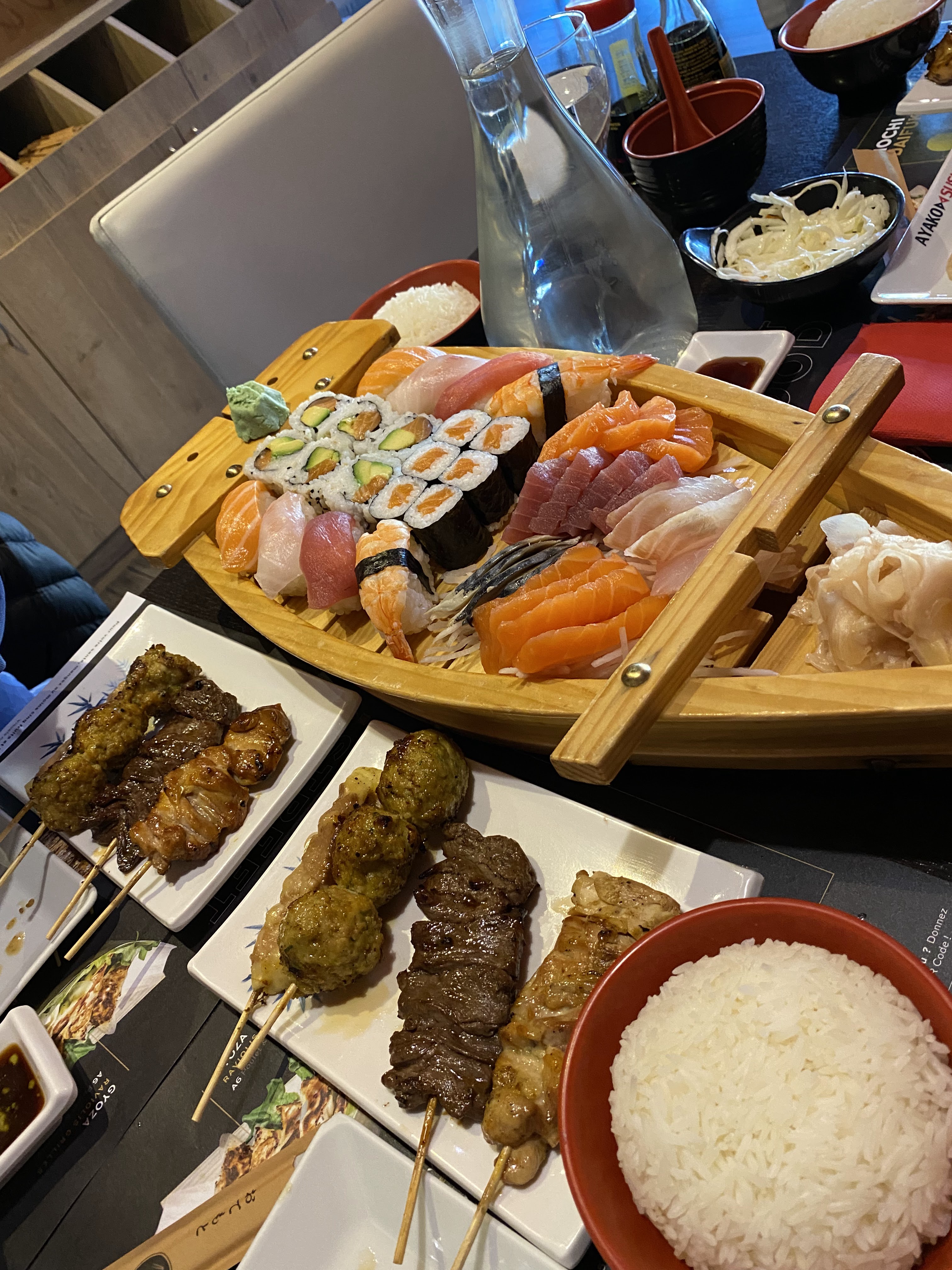 Alors là, c’est le meilleur restaurant japonais auxquels j’ai manger et je pèse mes mots. La soupe miso, la salade de choux sont tout bonnement délicieuses. Il y’a des sushis original mais aussi des plus simple qui sont très très bon je vous l’assure ! Et enfin… les brochettes !!! Elles sont faites maison et cela se voit ! Je vous recommande ce restaurant, vous pouvez y aller les yeux fermés.