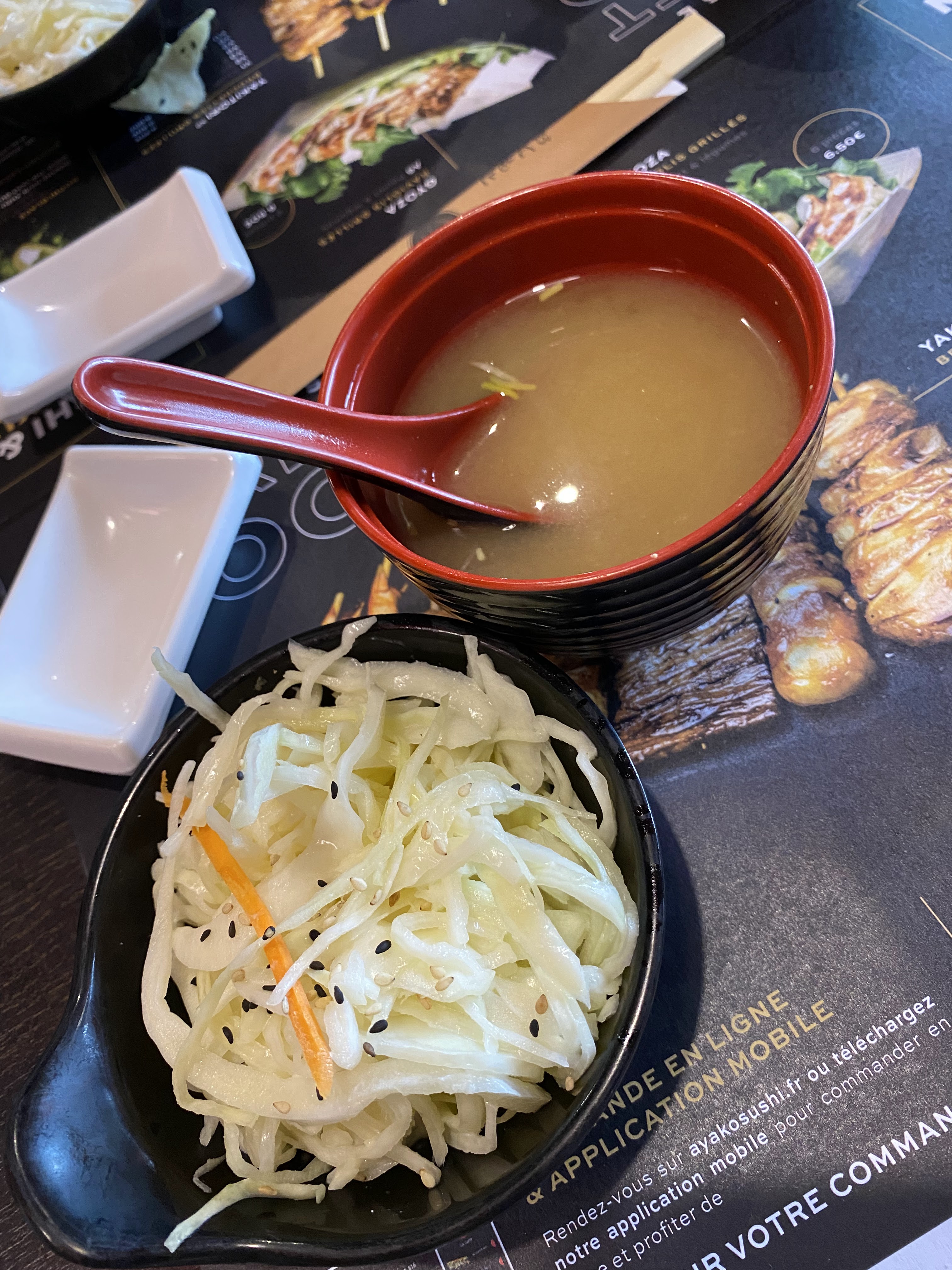 Première livraison via Uber, je n'ai pas été déçue. Tout est excellent ; les makis sont raffinés et pas écœurants, les brochettes de viande excellentes, et la soupe miso est suffisamment consistante pour ma part. Plus qu'à tester une fois sur place pour déjeuner !