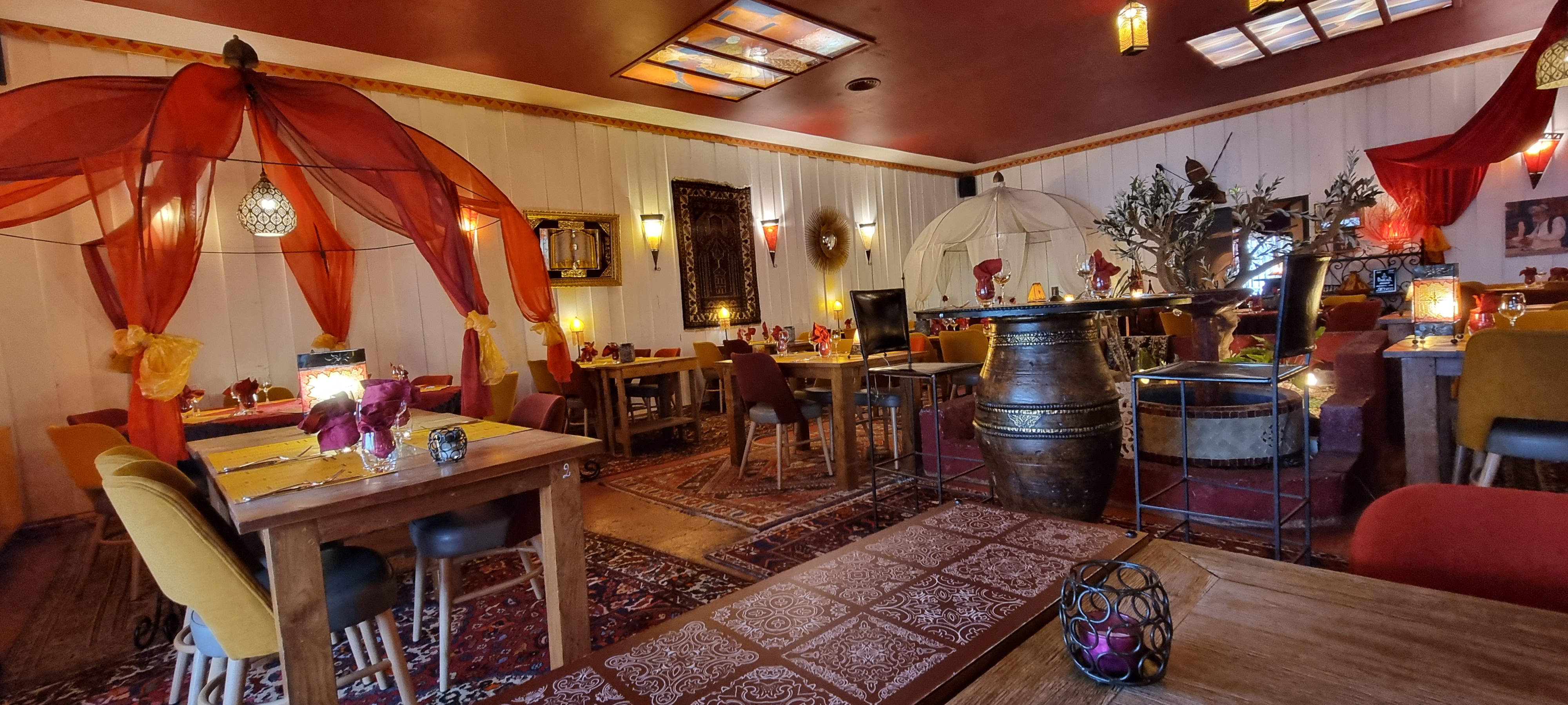 Excellents couscous et délicieux tajines. Ambiance très chaleureuse par son décor mille et une nuits et acceuil de l'ensemble du personnel toujours à votre disposition. Prévoyez des assiettes très généreuses. Par contre les desserts , à revoir.