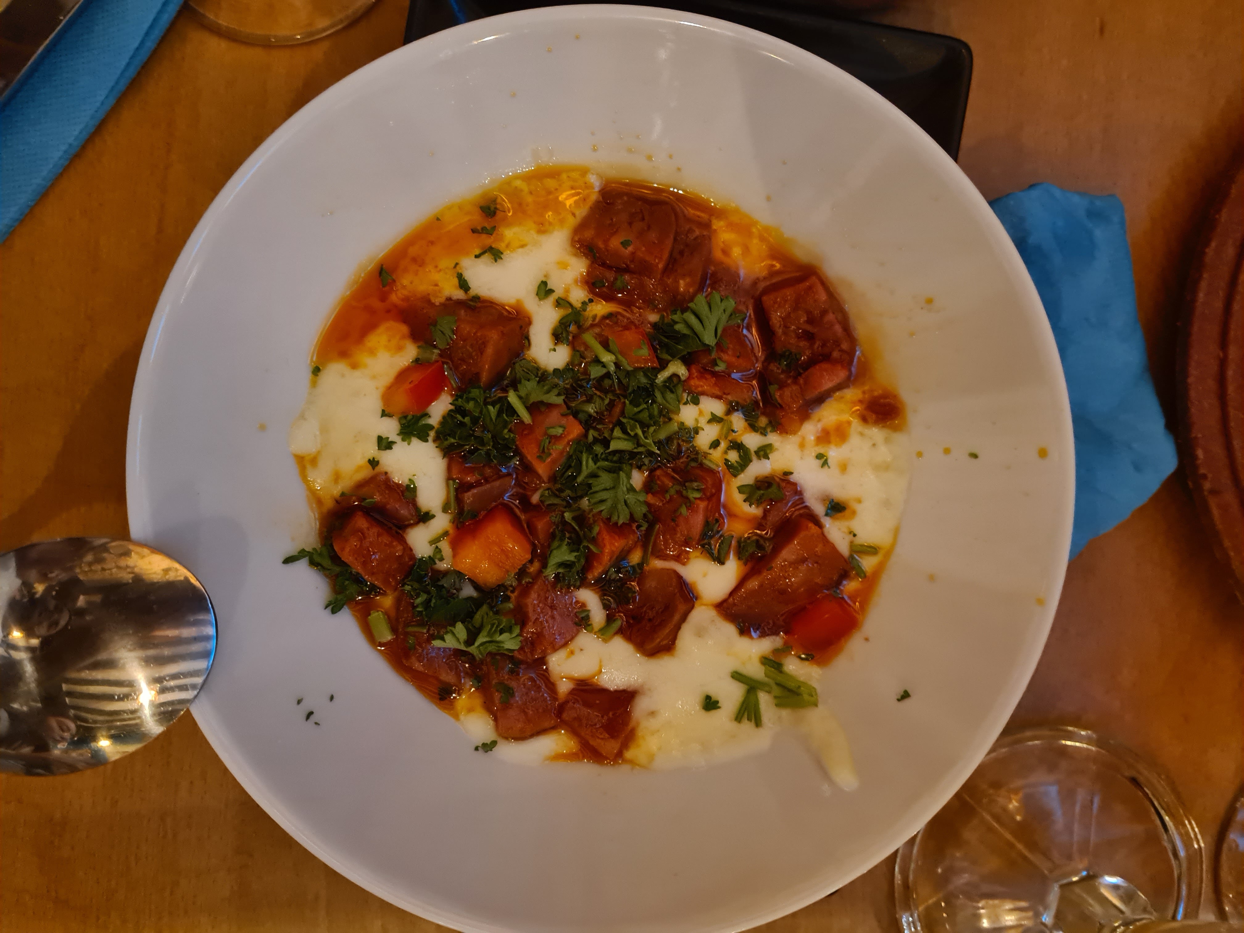 Petit restaurant qui ne paie pas de mine de l'extérieur, mais avec une décoration intérieure incroyable. Le patron navigue toujours de table en table avec un mot, une blague et mêlant humour et gentillesse. Les plats sont délicieux et très bien présenté. Ce fût une belle découverte