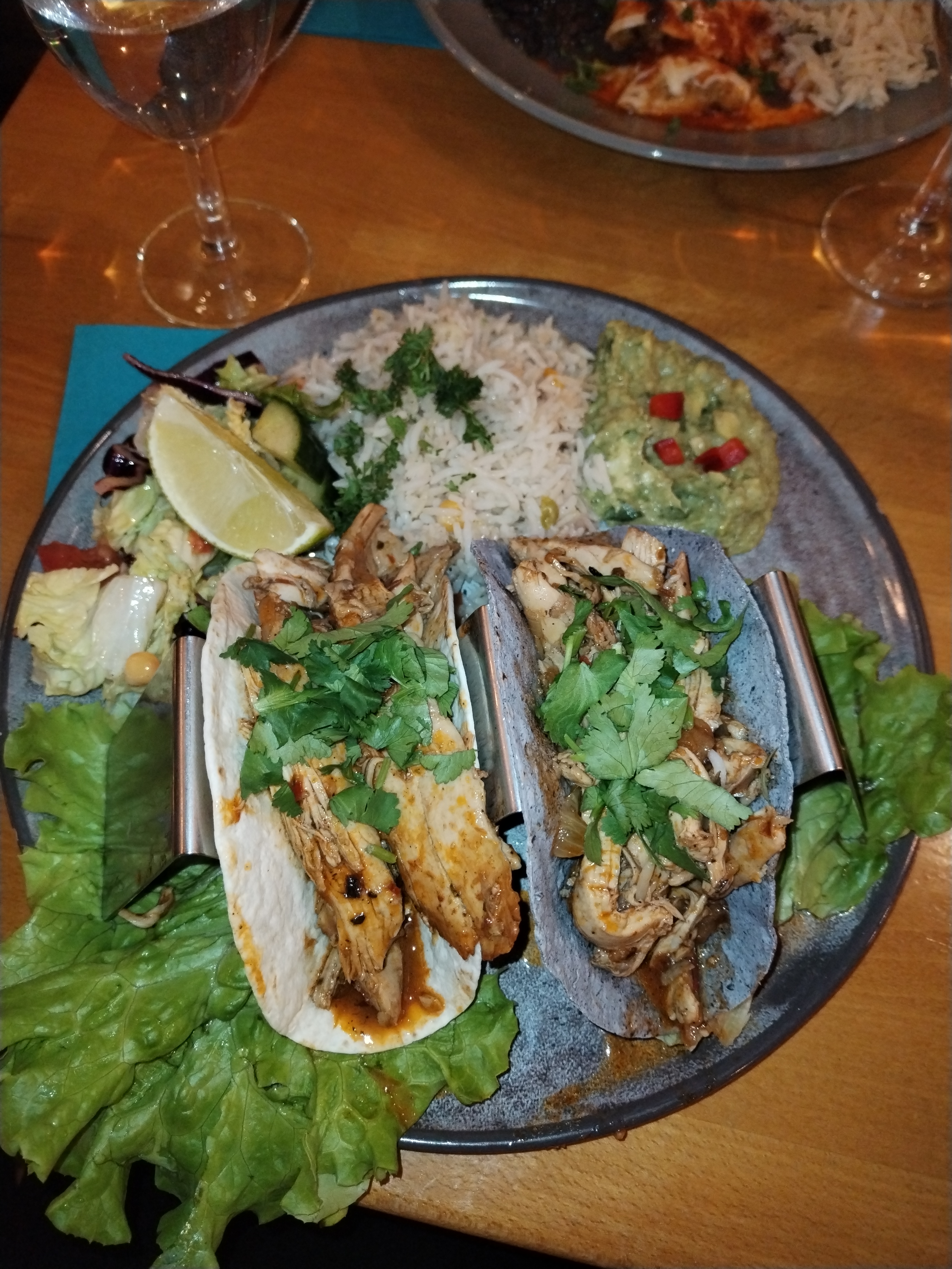 C'est une jolie adresse avec une déco très typée qui est d'emblée dépaysante. La carte est centrée sur les spécialités mexicaines et il y a du choix. On a opté pour des tacos, et fajitas Pas déçus sur la quantité dans l'assiette : c'est généreux. Côté qualité aussi on a apprécié. C'est bon. La sangria était bien à mon gout (très sucrée) un peu trop d'après mon amie...histoire de goût