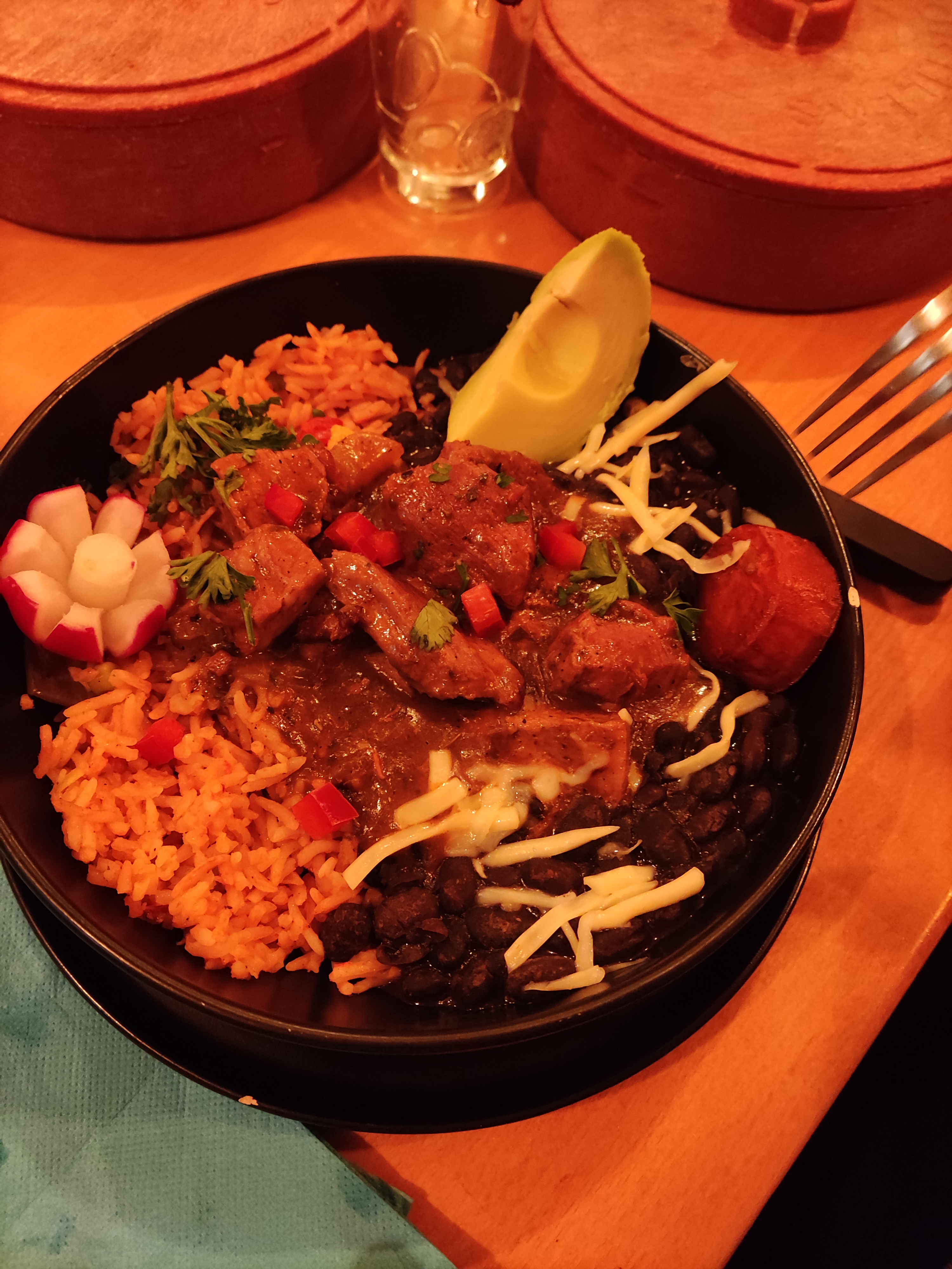 Excellent ! Nous avons pris un bowl pollo pibil et lomo borracho, très bien servis et accompagnés (frijoles, etc). On retrouve bien les saveurs des plats mexicains originaux 😍😍😍 Mention spéciale pour le pie de coco qui vaut le détour !