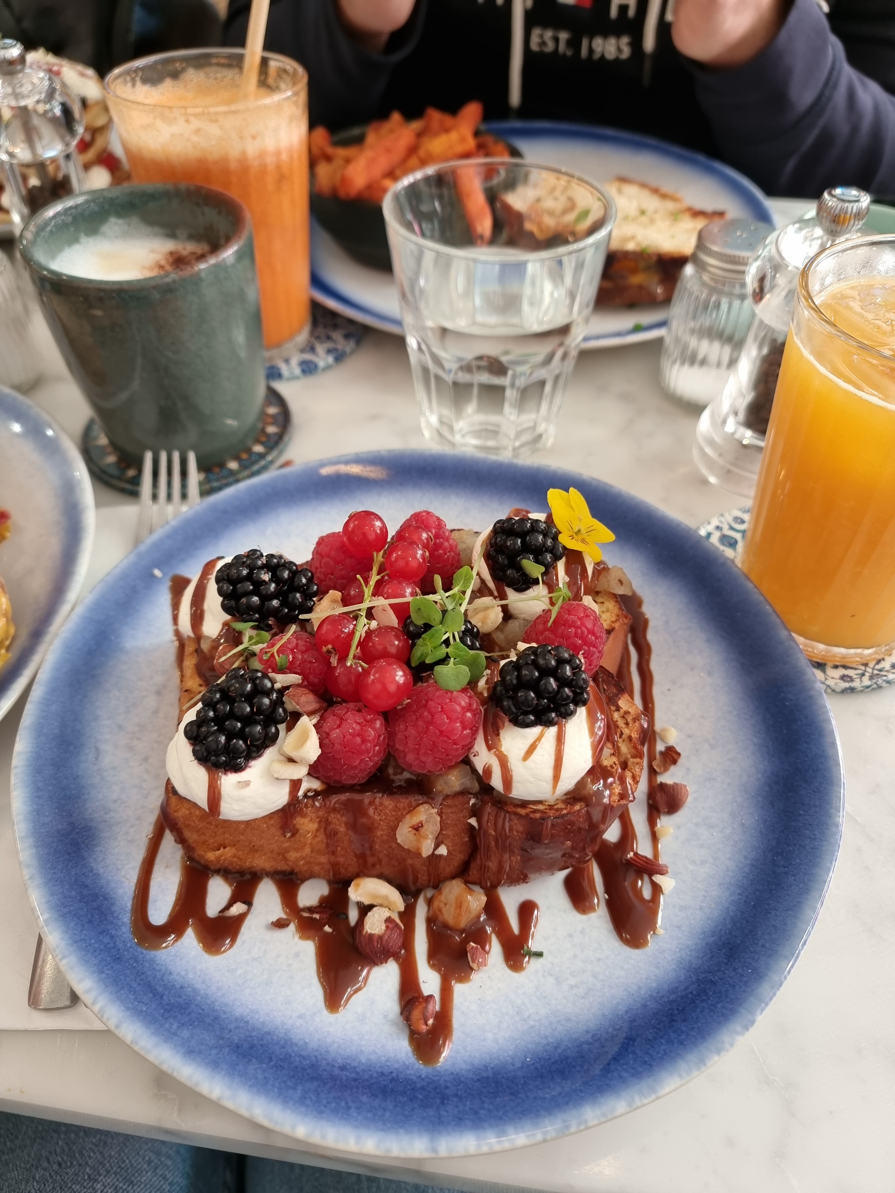Succulent de A à Z. Nous avons opté pour les pancakes caramel pistache noix de pécan mascarpone. A ma grande surprise ils étaient très légers, vraiment un régal ! On sent toutes les saveurs ! Nous avons également pris la tranche de pain avocat saumon oeuf poché c'était savoureux. Vraiment un 10/10 ce brunch. Aussi bien présentés que beaux. Personnel très souriant et agréable.