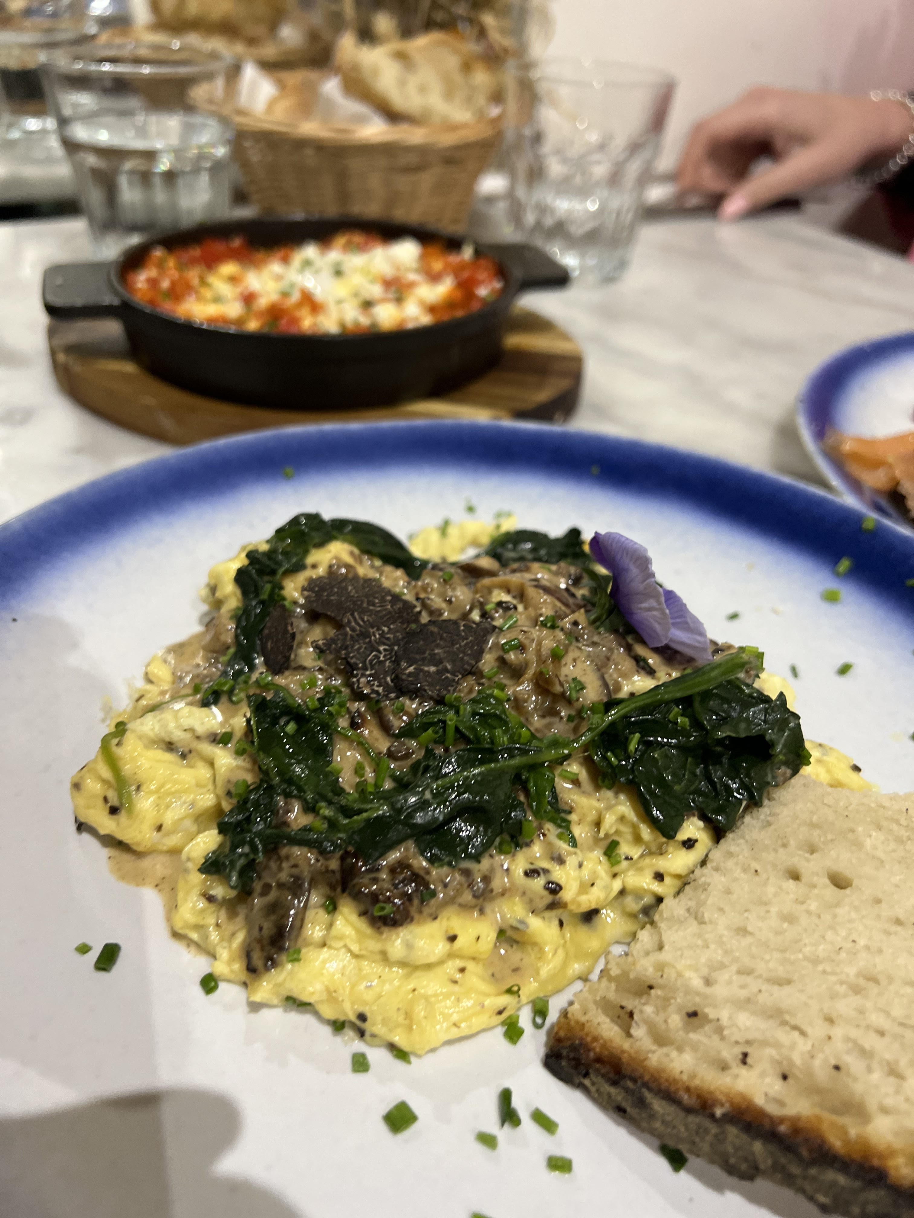 ◇Très bel endroit avec une décoration instagramable et une bonne ambiance. Le personnel est agréable et parle anglais/français ◇ La carte est variée et les prix sont raisonnables niveau qualité/prix ◇J'ai pris l'oeuf brouillé à la truffe noir et en boisson le rose & cardamome glacé. Le plat est un vrai délice, très bon équilibre entre l'œuf, la truffe et les champignons shiitake. Coup de coeur pour moi ♡