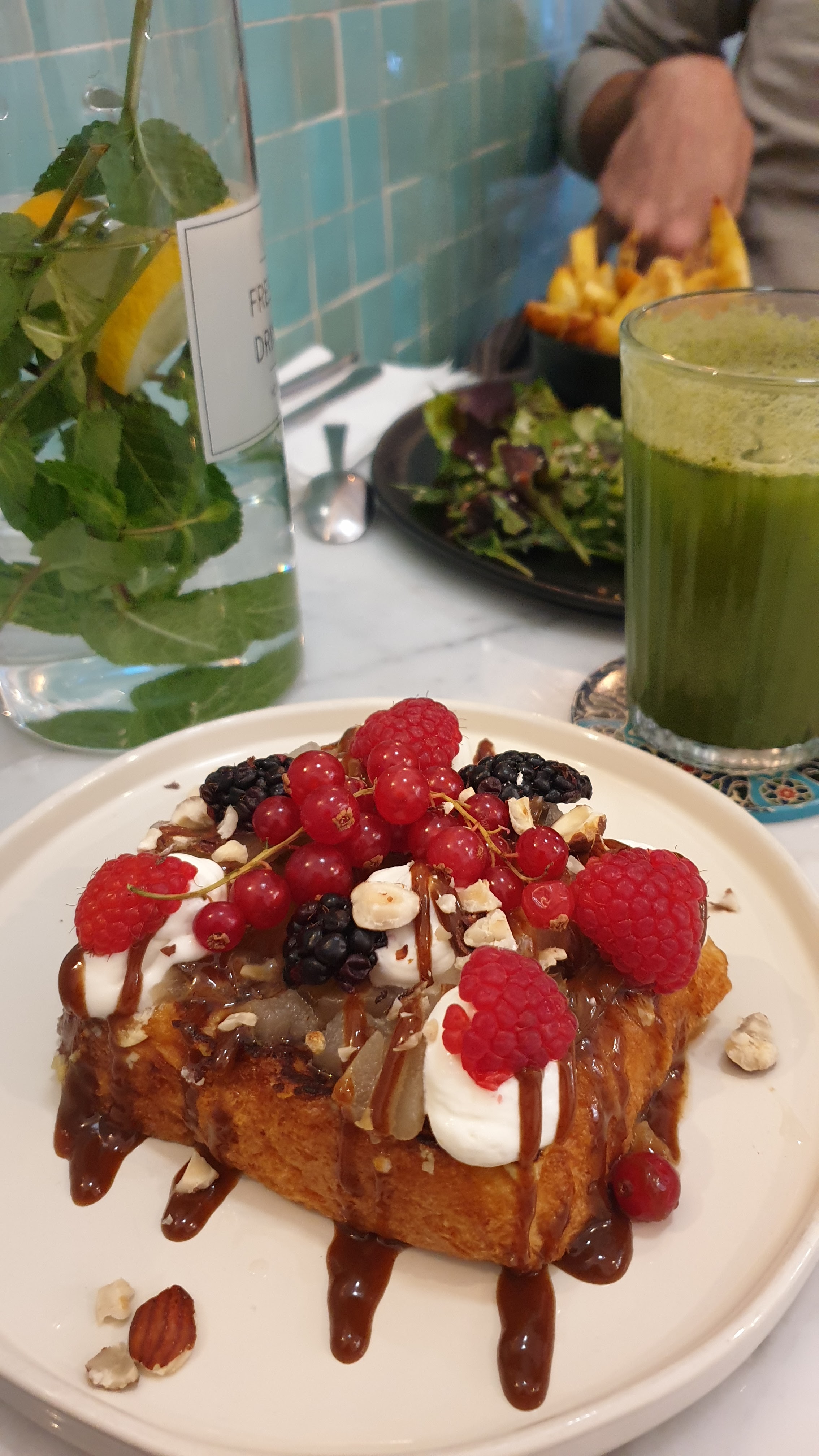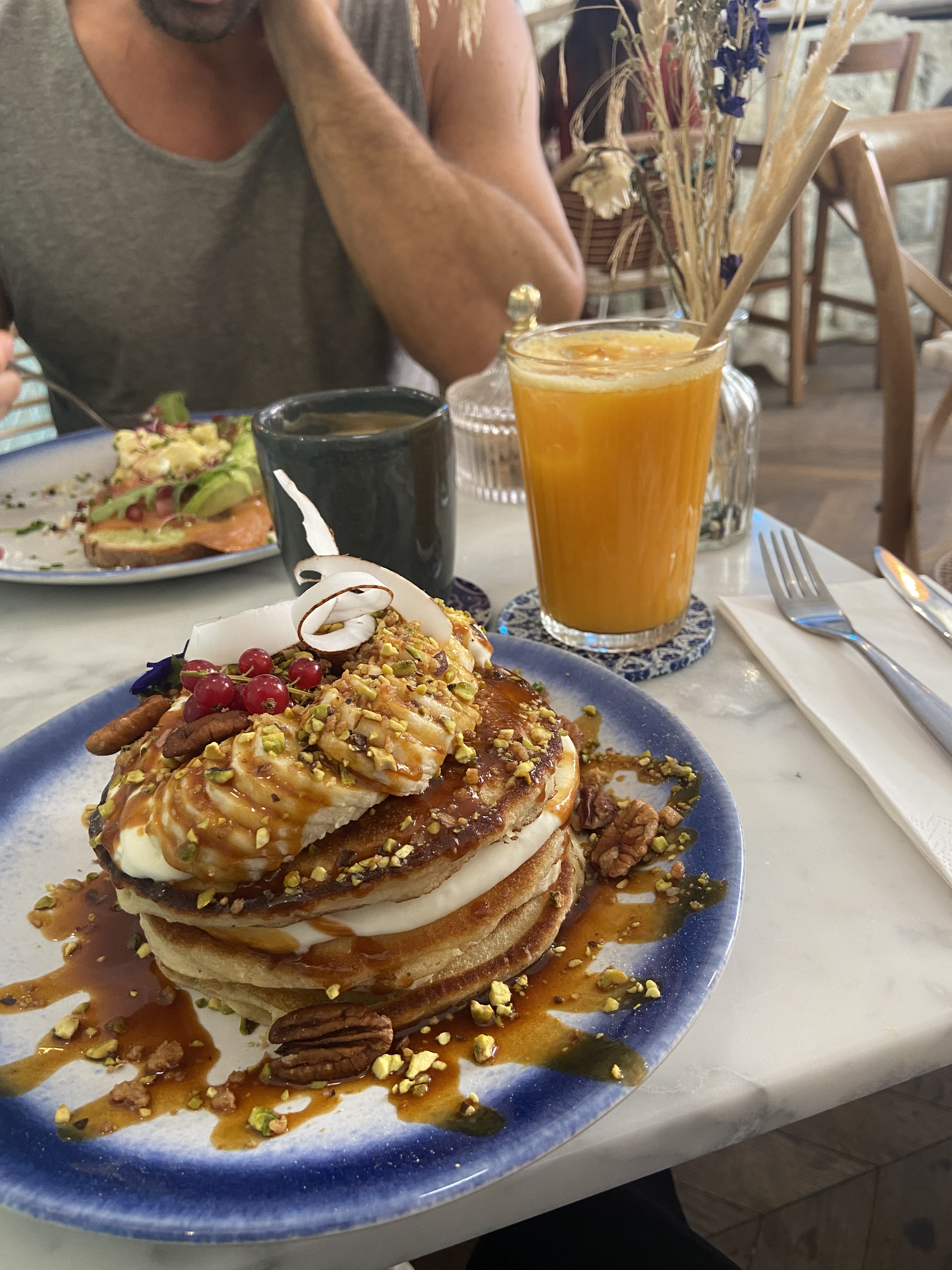 Parfait c'était excellent ! Nous avons testé l'avocado toast ainsi que les pancakes fruits rouges et la french toast ! Un delice !!! Le service de Hayat et Vanessa etait top je recommende à 100%
