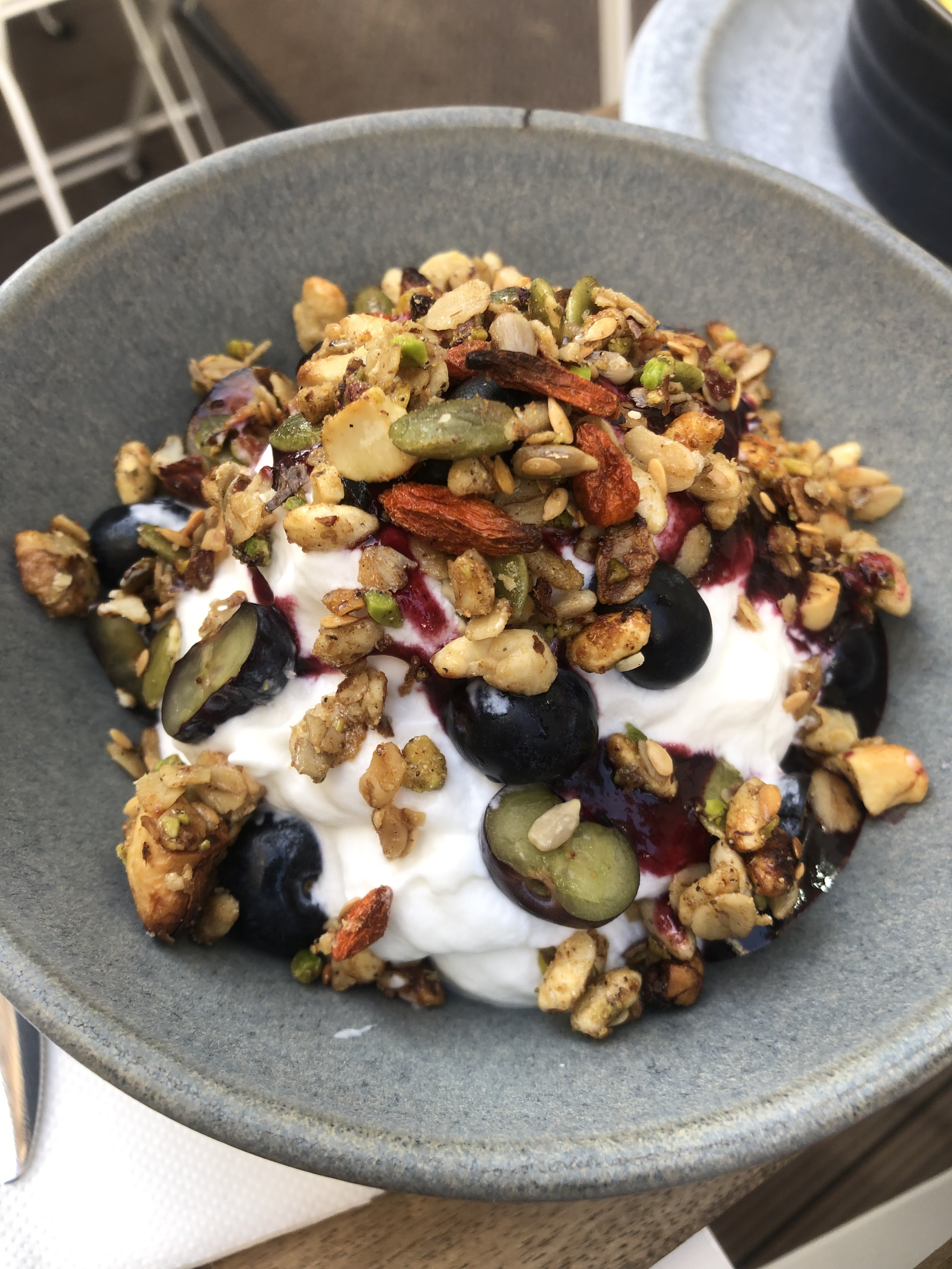 Quelle superbe découverte !! Tout donne envie et paraît appétissant, le choix est difficile ! Je n’ai gouté jusqu’à présent que le granola bowl et le cookie, qui étaient incroyables. Granola bowl vraiment original avec du yaourt léger, en mousse, des fruits de saison, du granola excellent. En plus de cela, le lieu est très agréable et le personnel est très sympathique et souriant. Nous avons passé un très bon moment, nous reviendrons sans doute très vite tester d’autres plats !