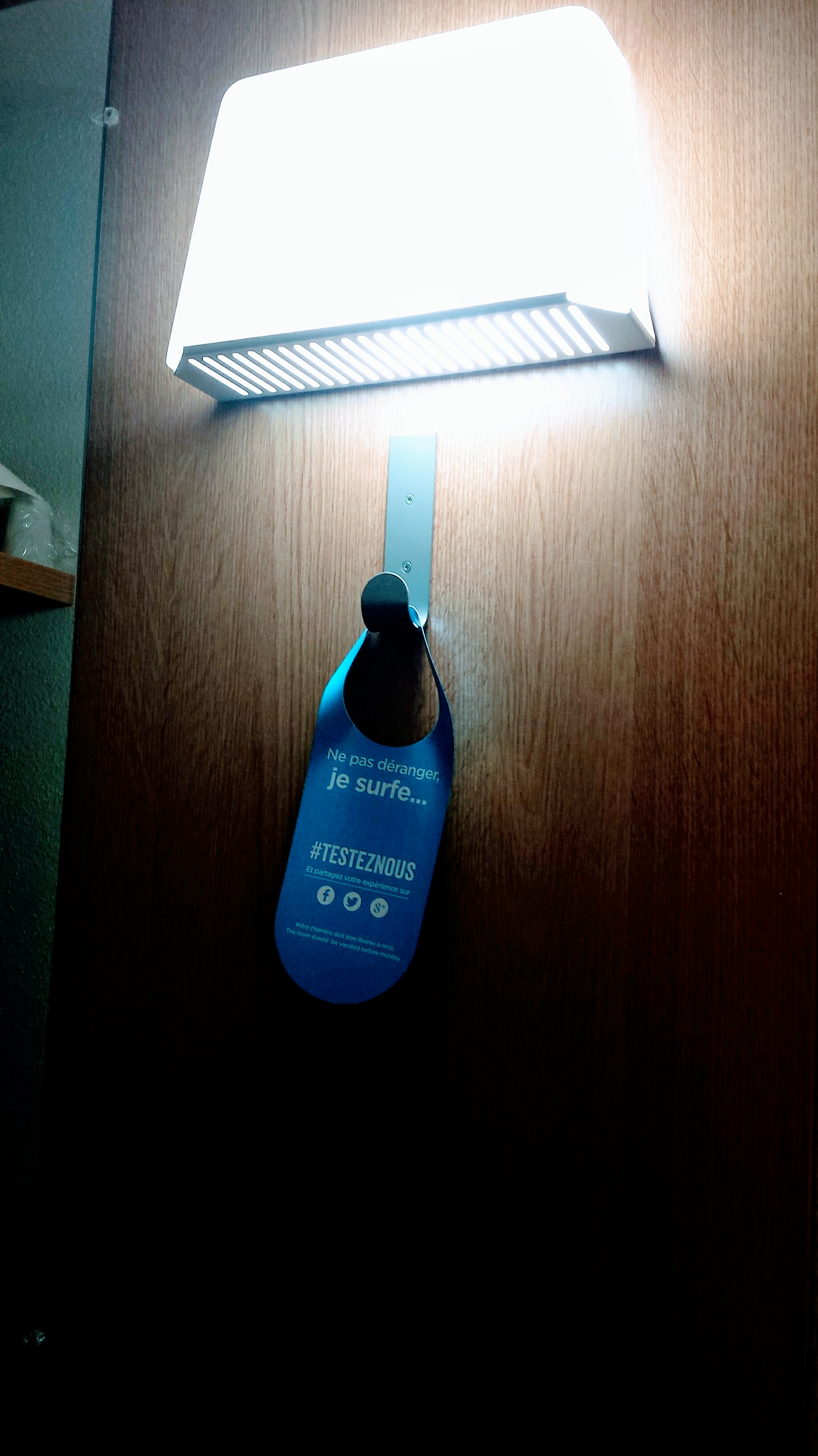 J'ai apprécié la réservation en ligne qui correspondait très bien à ma situation (urgence, peu de question à se poser car hôtel de chaine donc des standards connus, pas de nécessité de passer par la réception ce qui m'a beaucoup aidé compte tenu de mon indisponibilité jusque tard en soirée). La chambre était tout fait correcte et propre. 2 bémols cependant : le toilette trop près du lavabo (même une personne petite serait genée) et la tête du lit mal ajustée ce qui empêchait d'utiliser convenablement la lumière et ne laissait pas de table pour une petite table de nuit. A une prochaine
