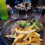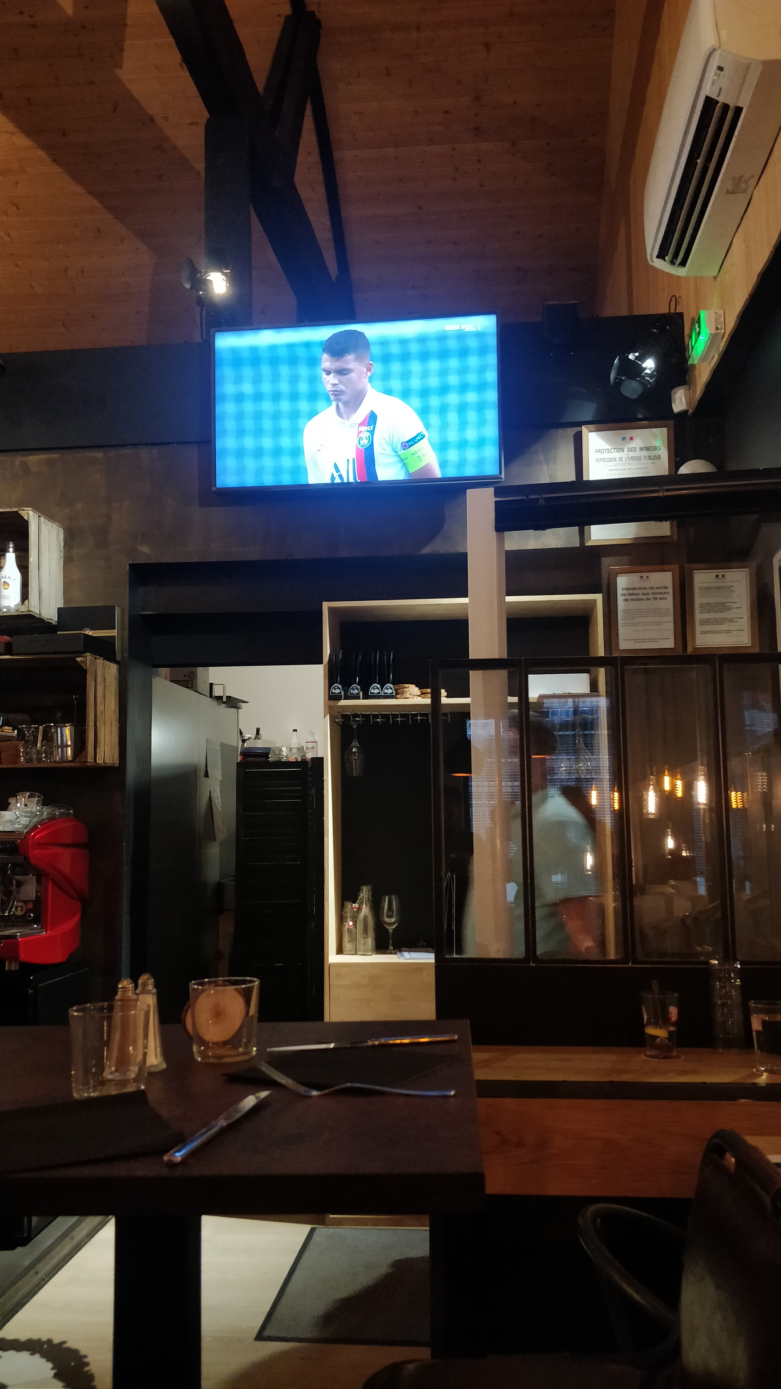 Restaurant Bistrot sympathique, bon accueil, la décoration est moderne, on s'y sent bien! Ce restaurant vaut le détour, ils ont de belles pièces de viande accompagnées de frites maison et de sauces maison au choix! Je vous le conseille pour les soirs de matchs, il y a deux écrans et l'ambiance est au rendez-vous ! Je mets 4 étoiles pour l'attente un peu longue, nous avons attendu 40 min avant d'avoir le dessert...