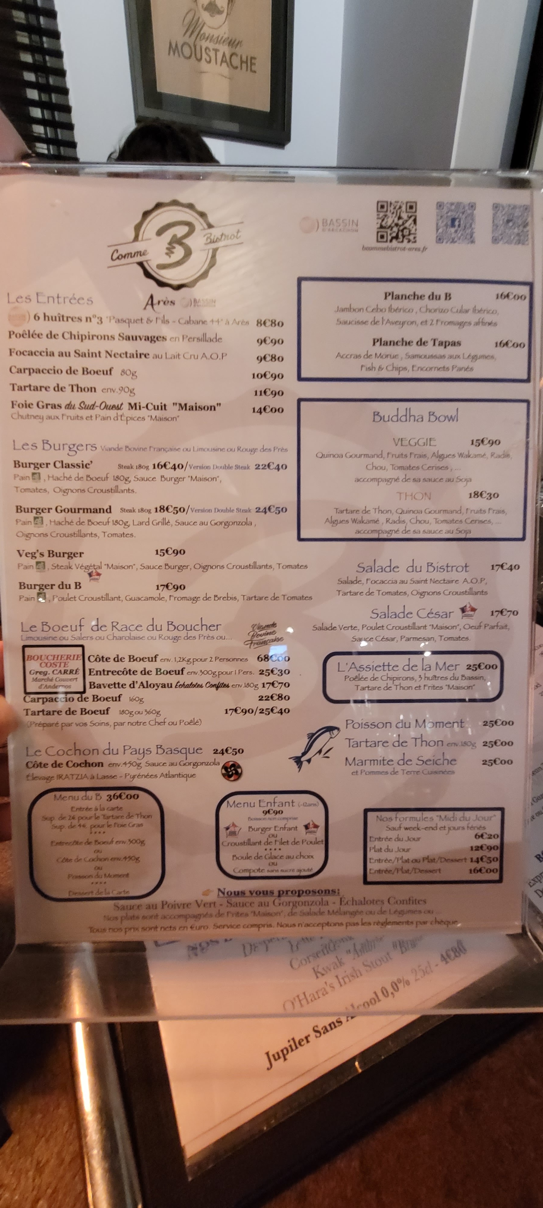 Excellent repas avec l’assiette de la mer et un burger du B tops tous les 2 et enfin le Craquelin entièrement maison aussi et délicieux. Toute l’équipe est aux petits soins et il règne une ambiance joyeuse et détendue dans ce restaurant ! Bref à retenir absolument !