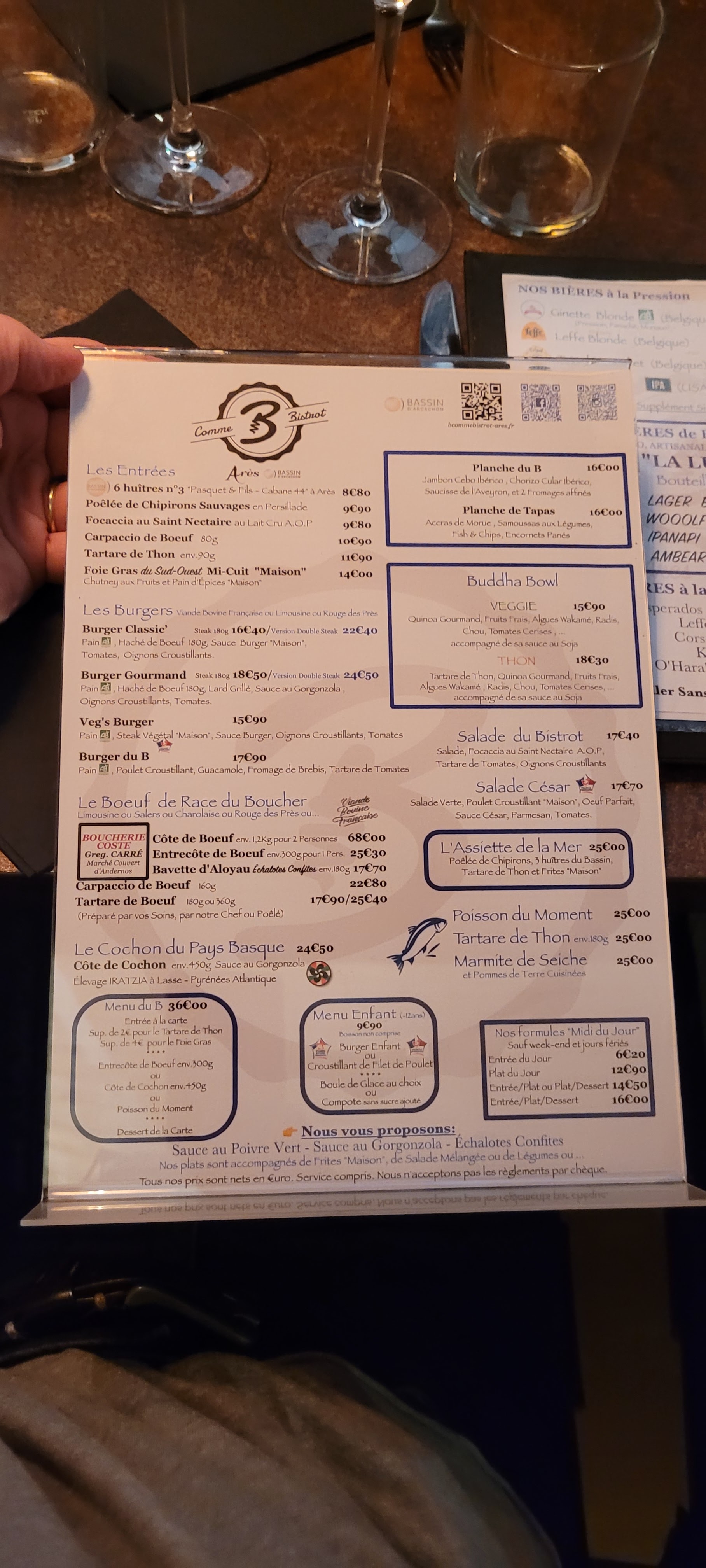 Pour la viande demandez la bleu pour l'avoir saignante. Addition un peu trop élevée par rapport au repas que nous avons eu. Le cadre est sympa et l'accueil est fait avec le sourire