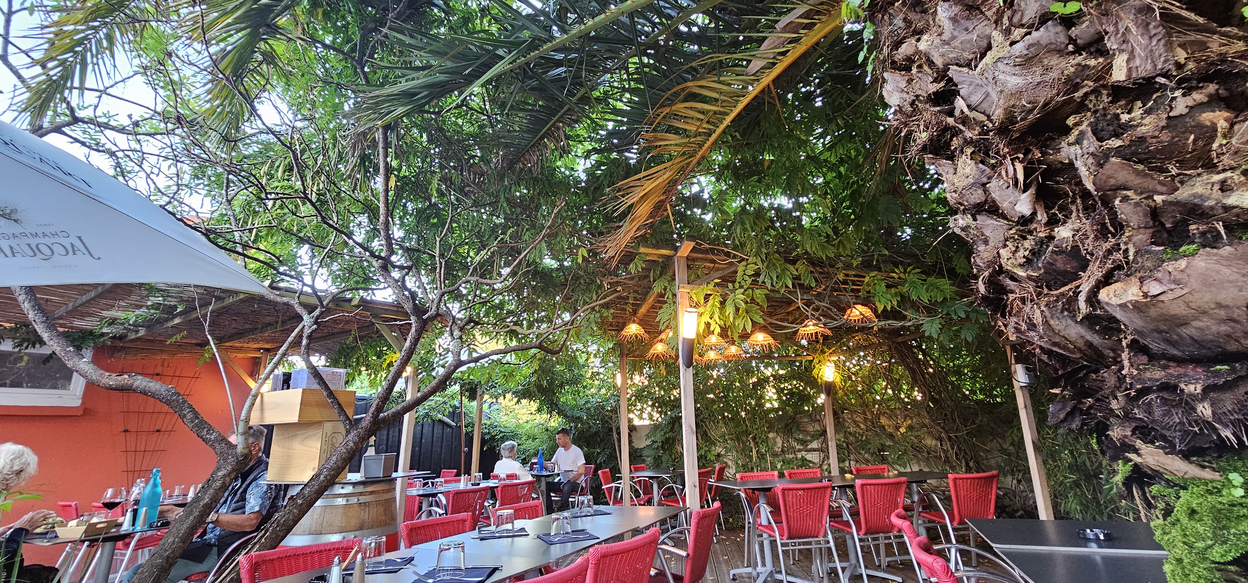 Restaurant avec terrasse extérieure, dans un oasis de verdure. Les plats sont bons. Tapas apéro sympa. Mais je trouve un peu cher... Accueil parfois un peu froid...