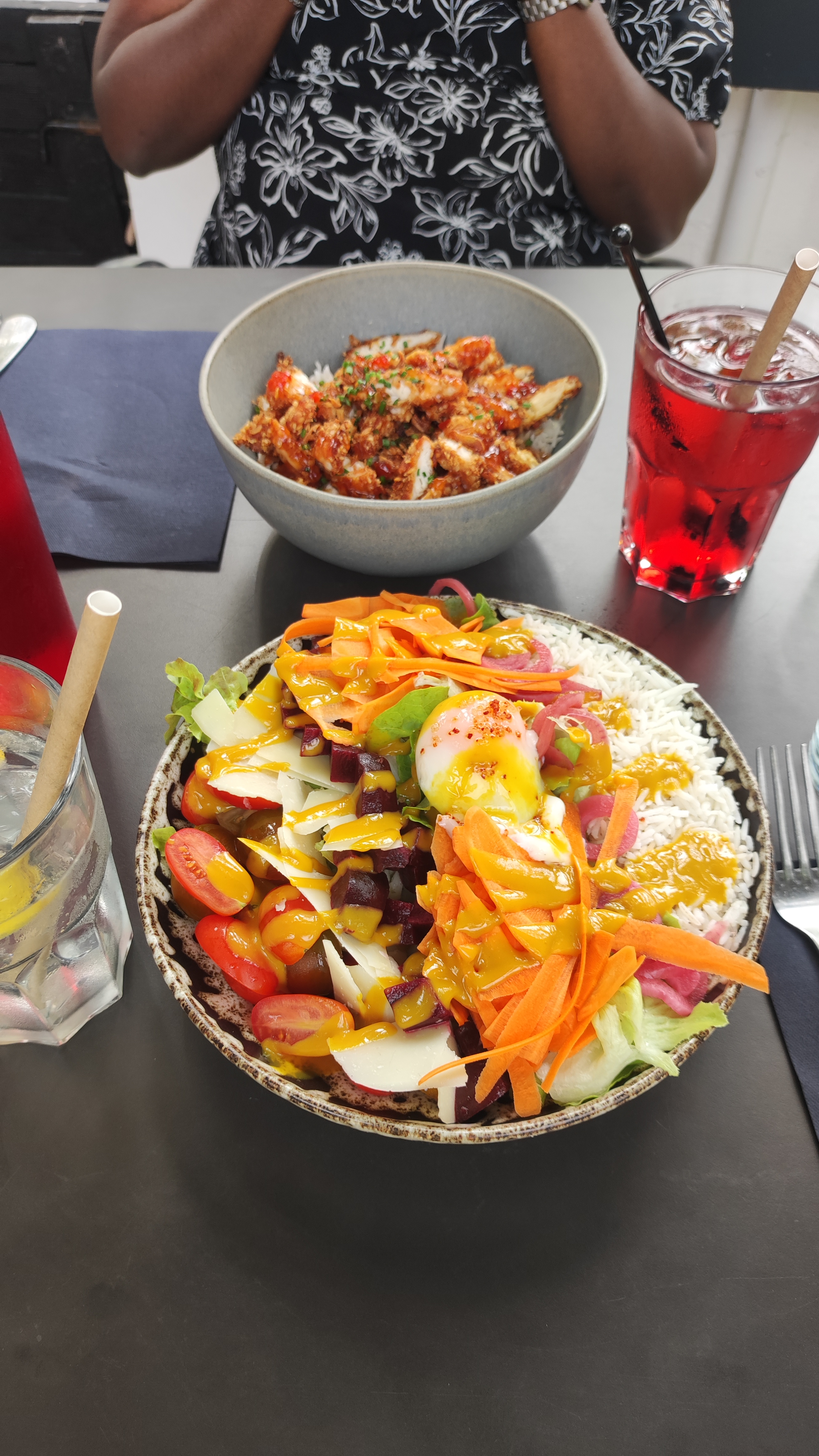 Accueil parfait,serveuse souriante et barman (ou gérant?) très gentil ! La terrasse est chaleureuse et lumière tamisée. La carte juste comme il faut ! Riz bowl excellent et mon mari amateur de rhum a pu se faire plaisir avec une jolie carte 😁(servi à table 😉) Nous sommes en vacances et évidemment nous reviendrons! Merci à l'équipe