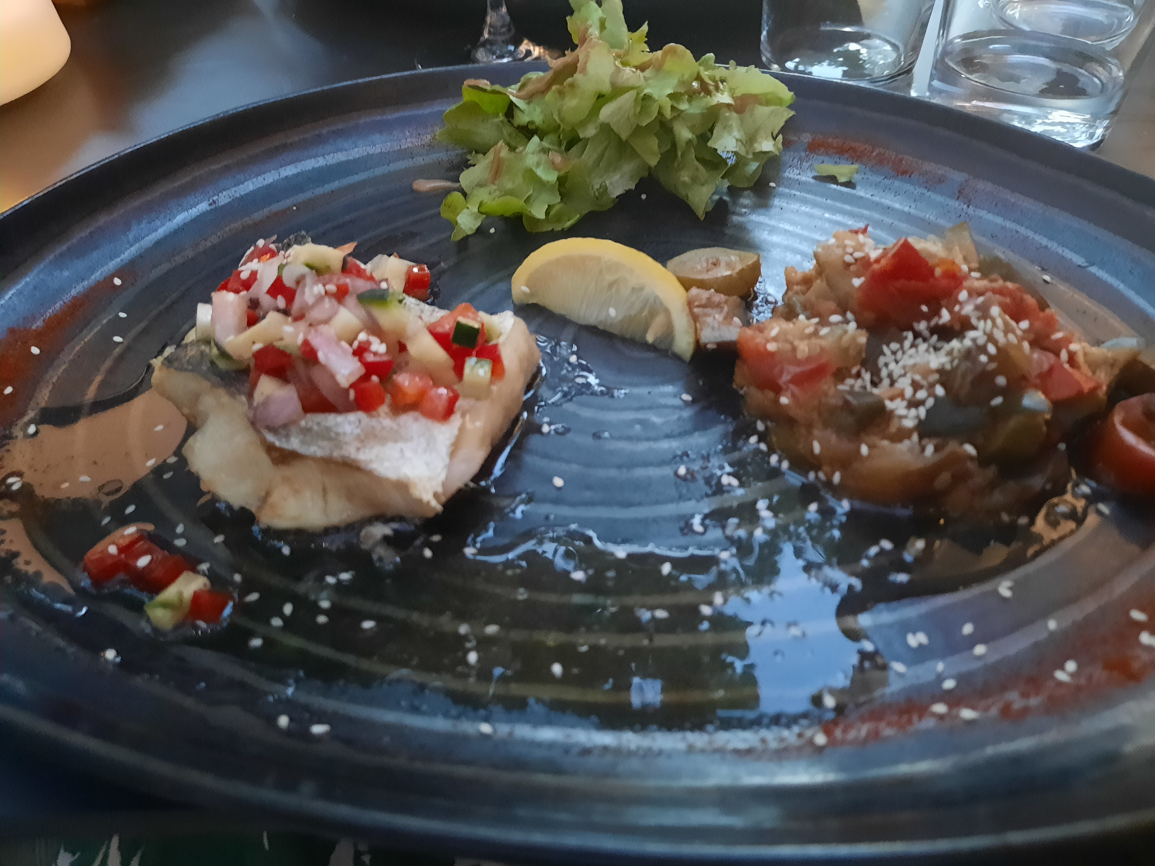 Un cadre ombragé, un service souriant et simple et une assiette délectable!! J’y ai mangé des tentacules de poulpe avec des légumes rôtis et purée de Butternut orange vraiment délicieuses. Une assiette cuisinée. Je recommande la pana Cotta infusée à la verveine. Pas hors de prix: BONNE ADRESSE! 😋