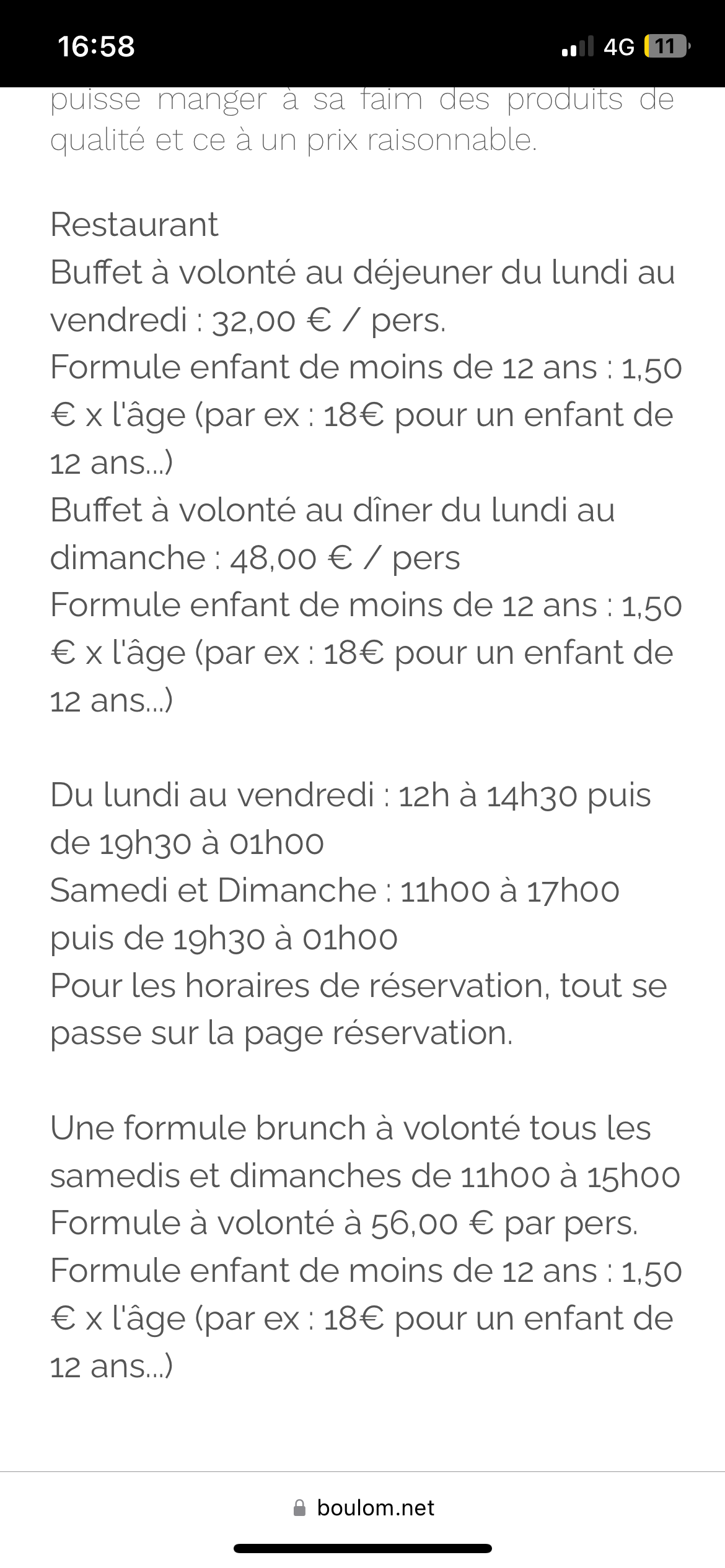 J'ai connu Boulom à volonté et sans timing à moins de 40 euros ! Produits de très bonnes qualité et varié mais aujourdhui plus de respect du client, il faut faire la queue même avec une réservation, on a 1h30 pour manger dans un vacarme absolu et le prix est devenu indécent !