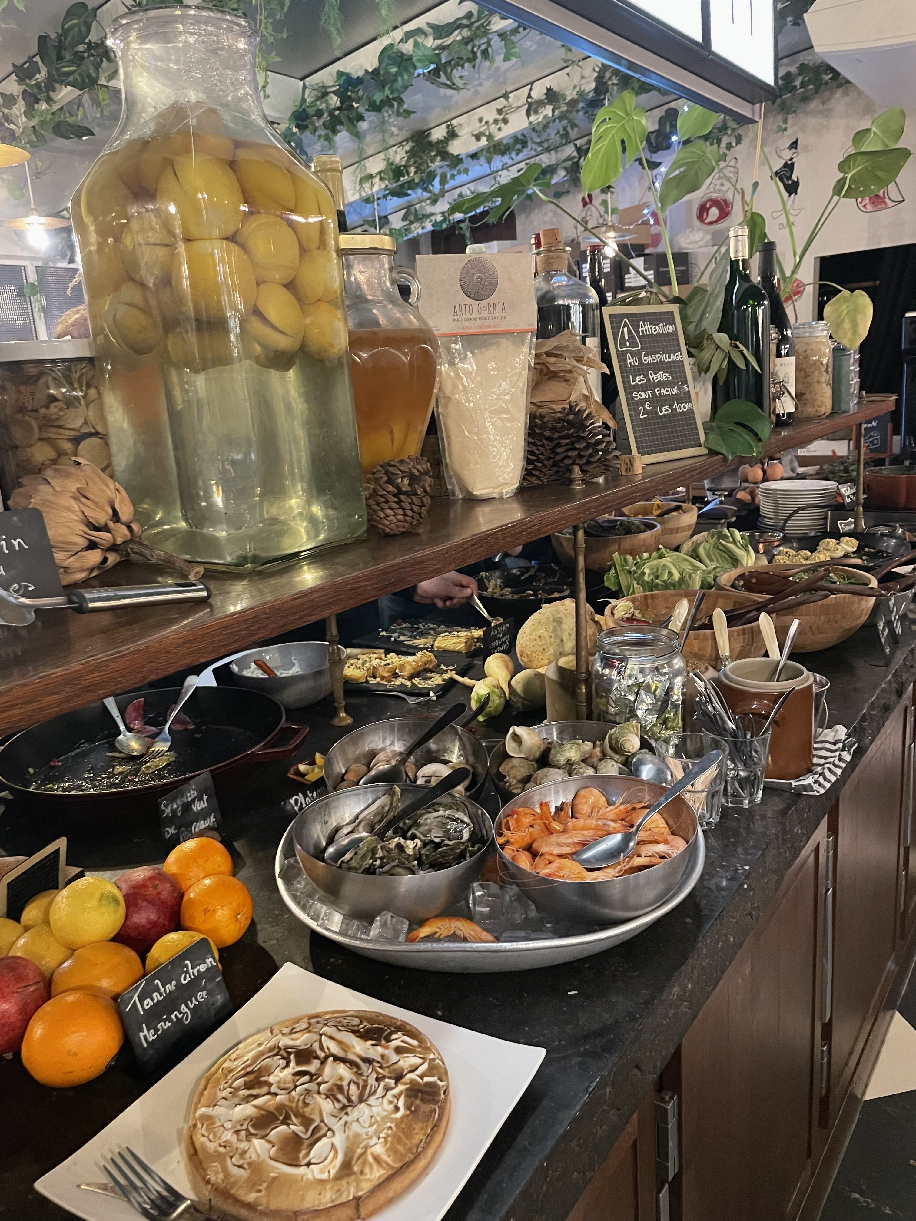 Une expérience qui vaut le détour ! Un an et demi que je passe régulièrement devant et que j’espère tester leur brunch dont on parle tant dans le quartier... L’accueil est très soigné et le buffet vous fera saliver par ses couleurs et sa diversité. Dans l’ensemble c’était assez inégal, de très belles réussites comme le tartare coupé au couteau ou le saumon gravlax. Dans les plats chauds la viande proposée était bonne mais assez filandreuse et peu fondante comme on pouvait l’espérer. Un très bon moment au final mais au tarif de 43€ le brunch (hors boissons alcoolisées) on s’attend à encore un petit peu mieux.