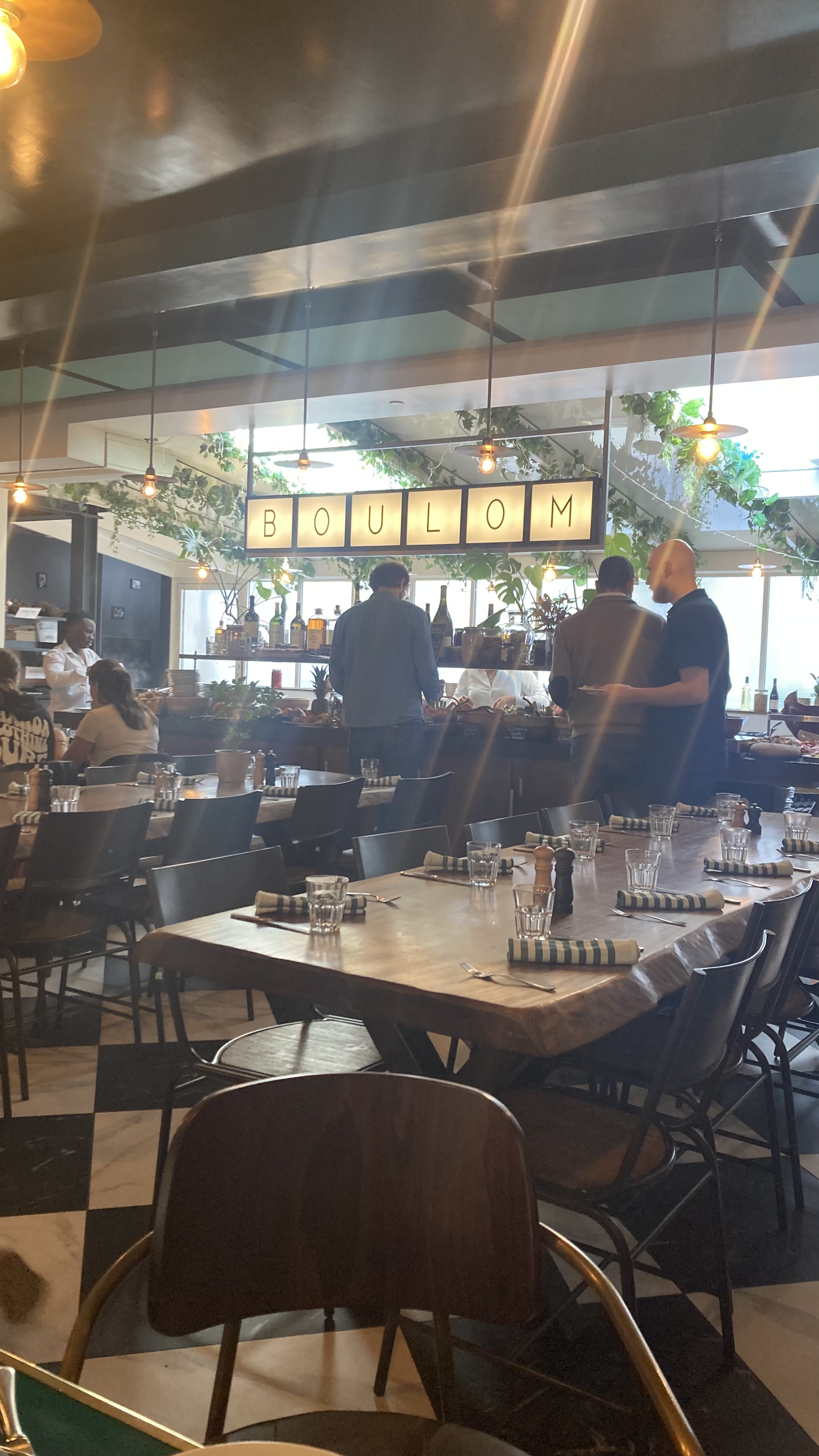 Bonne expérience pour cette première fois chez Boulom, les plats sont savoureux et bien assaisonnés, le choix est là et la qualité aussi. Le lieu est bien décoré, sous une verrière ce qui rend le brunch très agréable. NB : le lieu peut être assez bruyant, je ne le recommande donc pas pour se poser manger et travailler. Je ne mets pas 5 étoiles car je trouve quand même que le prix est assez élevé : 49€ par personne pour le brunch. Néanmoins je recommande !