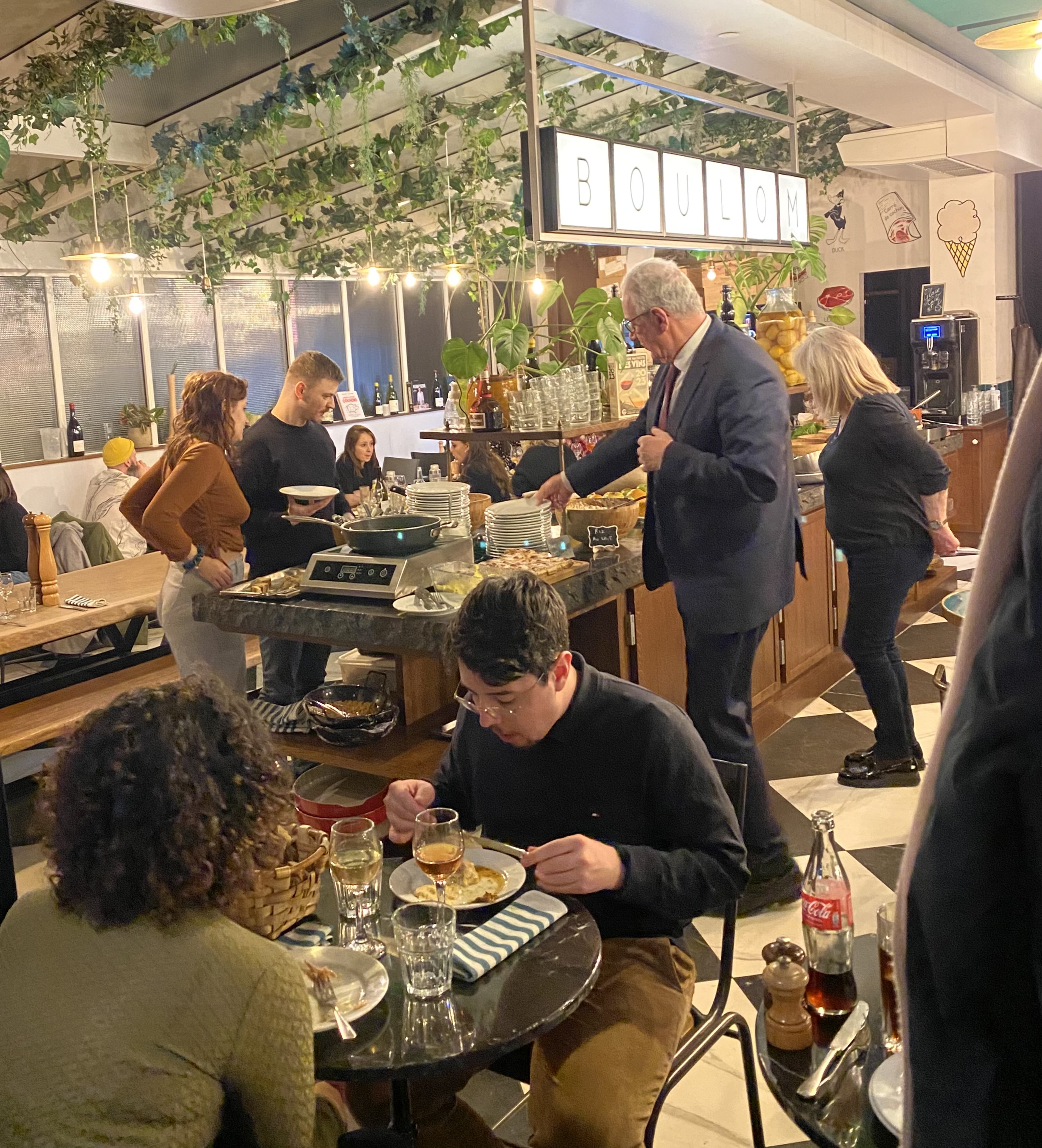 J'ai réservé au Boulom pour 34 personnes et mes convives et moi-même avons été très satisfaits de l'expérience : superbe service du personnel qui a su être très arrangeant au cours de mes modifications de réservation, buffet délicieux et ambiance chaleureuse. Je vous le recommande si vous avez des événements à fêter en étant nombreux :)