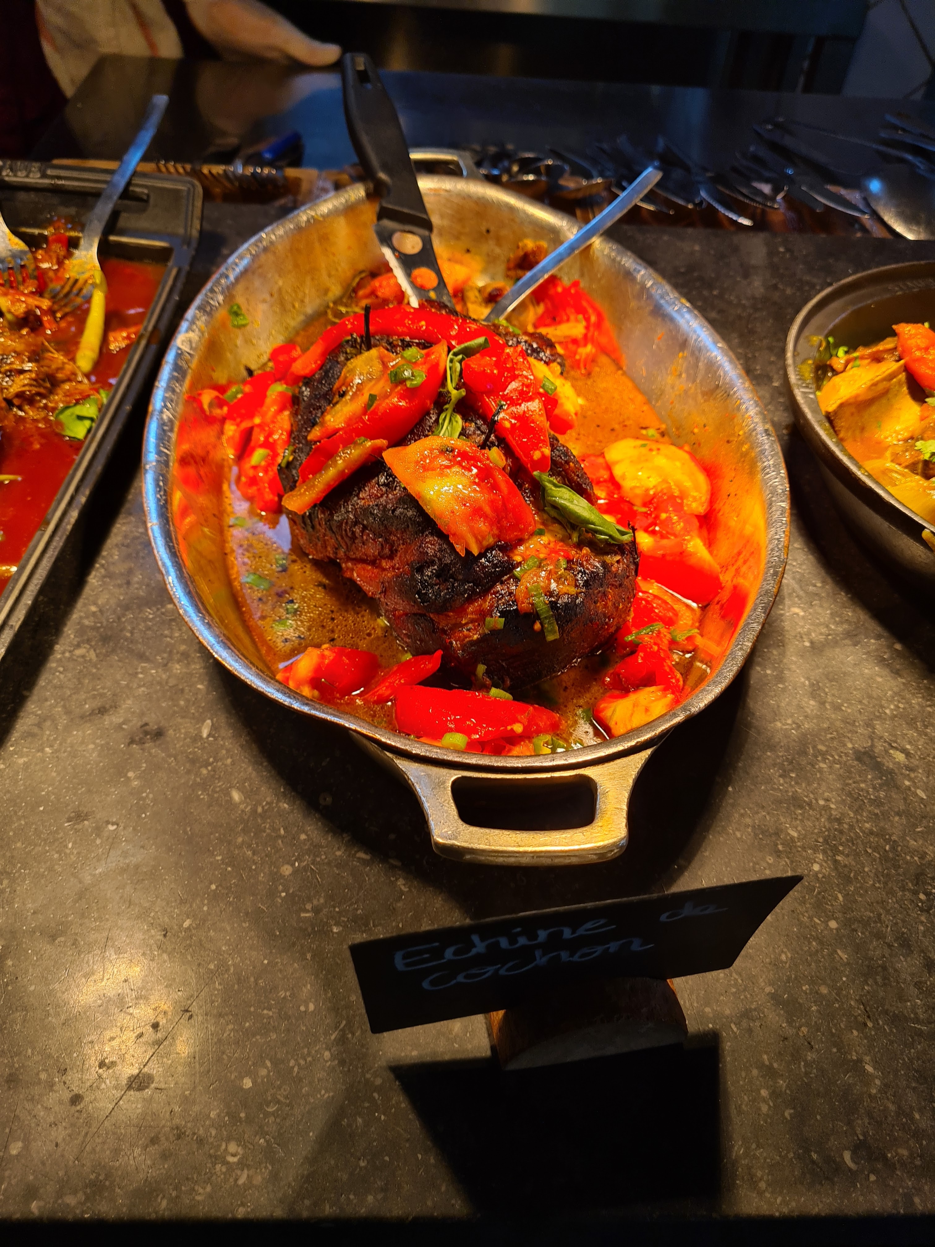 Choquée. Le lieu est très convivial et le personnel charmant. Le rapport qualité / quantité / prix est excellent. Pour 45€ par personne, vous avez un choix énorme d’entrées, plats et desserts. Tout, je dis bien absolument tout, est cuisiné à merveille et originalité. Même les plats qu’on pense connaître ont une saveur nouvelle. On voyage à chaque bouchée. En général, dans un buffet, le restaurant lésine sur la qualité mais ici le parti pris est tout l’inverse. Tout est fait maison et les ingrédients sont de qualité. Vous avez la sensation de faire un bistronome ou semi gastro sous forme de buffet pour seulement 45€. Parfait pour un anniversaire en petit comité ou bien pour faire découvrir la cuisine française à des touristes.