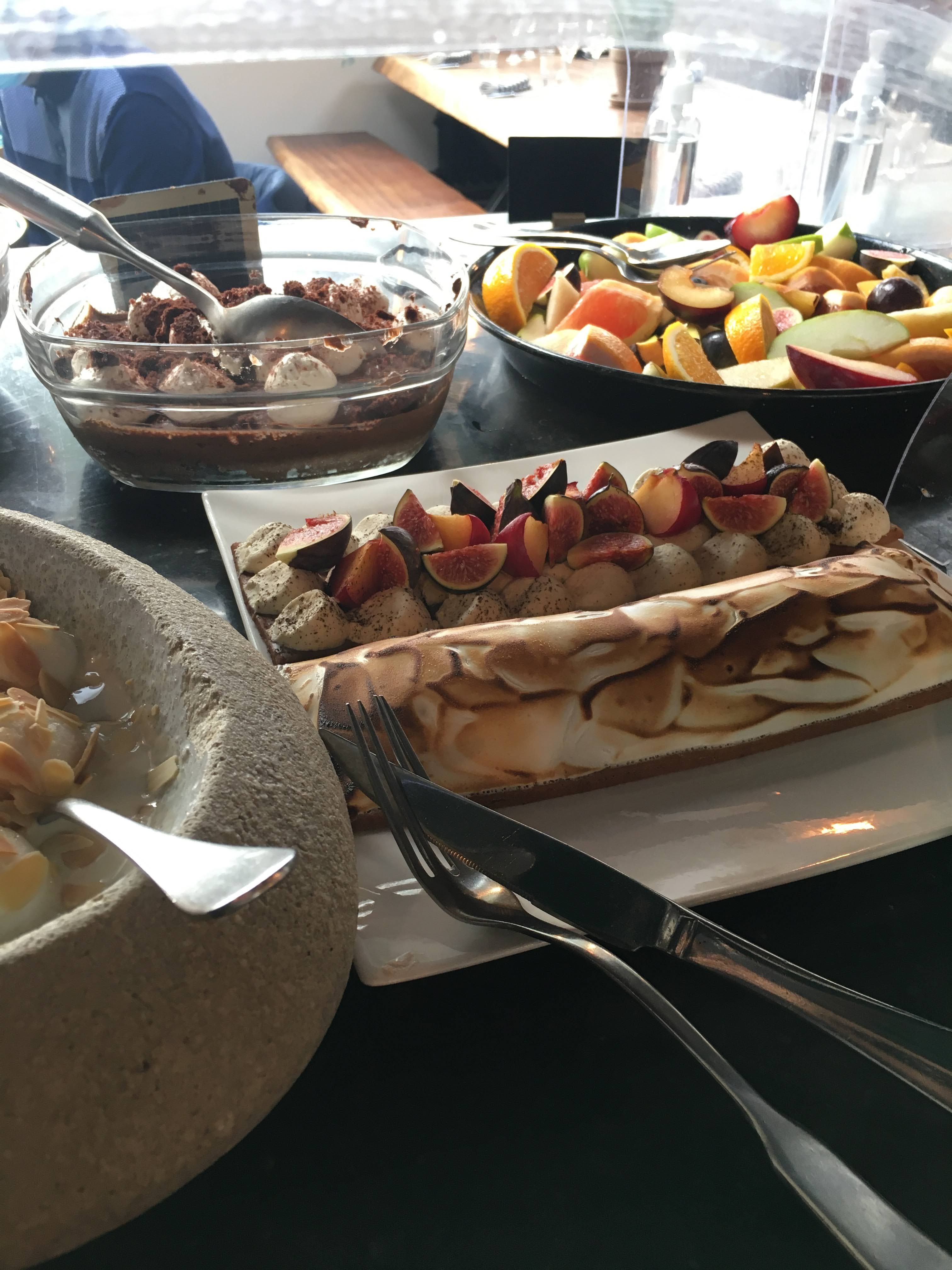 Longtemps que je souhaitais tester cette adresse ! La formule brunch est sympa mais globalement déçue… pas eu de coup de cœur gustatif hormis pour les plats chauds (épaule de porc et la dorade). Service bien mais peut être amélioré : un serveur qui ne sait pas où sont les toilettes, un autre qui marmonne dans sa barbe quand on demande un verre de jus… Pleins de moucherons sont de la partis, pas très agréable. Sympa, à faire une fois quand même pour la découverte
