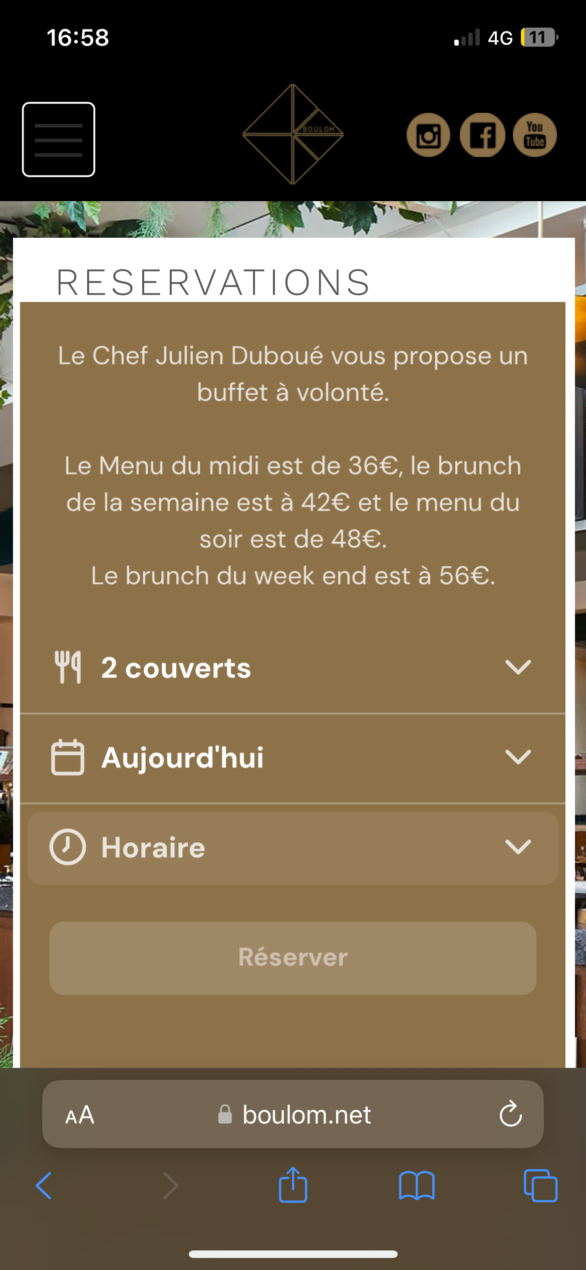J’ai connu Boulom dès son ouverture . Le personnel de l’époque ( pas si lointaine ) était vif , joyeux , attachant , liant . Aujourd’hui , l’accueil est sans relationnel , vite sur son téléphone dès qu’on a franchi l’étape de la réservation et pas un regard quand on part . Côté bidet : honnêtement , les chefs sont toujours aussi bon : mais beaucoup moins de choix , et moins de mise en valeur des produits du terroir . Pour 56euros /personne : on n’en a pas assez. + On nous installe pour nous demander 3 ‘fois de manière limite si on ne serait pas installés seuls sous entendu on n’est pas à la bonne place .. mais bon c’est pas grave tant pis ‘ restez maintenant ou vous êtes .., Pour les personnes allergiques , à part le chef , personne n’est capable de vous indiquer quoique ce soit hormis le chef ( hyper pro et disponible malgré les rushs) , pas de possibilités de regarder la carte sur place indiquant les allergènes d es els compositions . Ce serait bien également d’éviter de mettre par exemple des amandes en déco autour des fromages ne serait ce que pour les allergies et de faire attention et vérifier toutes les mouches pas appétissantes autour du fromage qui coule. Bref . Julien Duboué devrait veiller à mieux sélectionner son personnel de service qui ne met pas en valeur ki son travail ni ses clients. Encore une fois , où sont passés ceux dansant plus expérimentés et plus investis surtout ! Déception culinaire et humaine . Dommage.