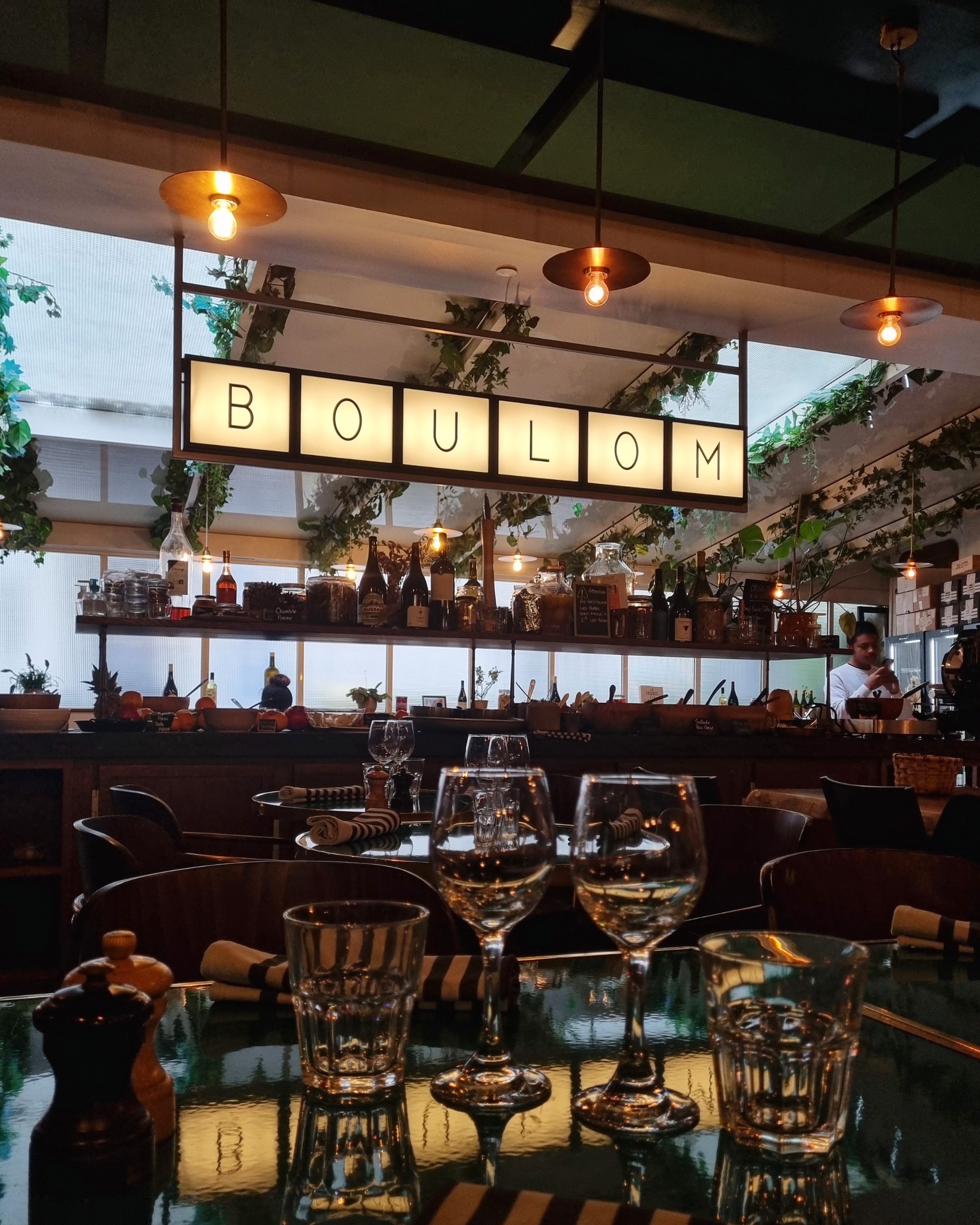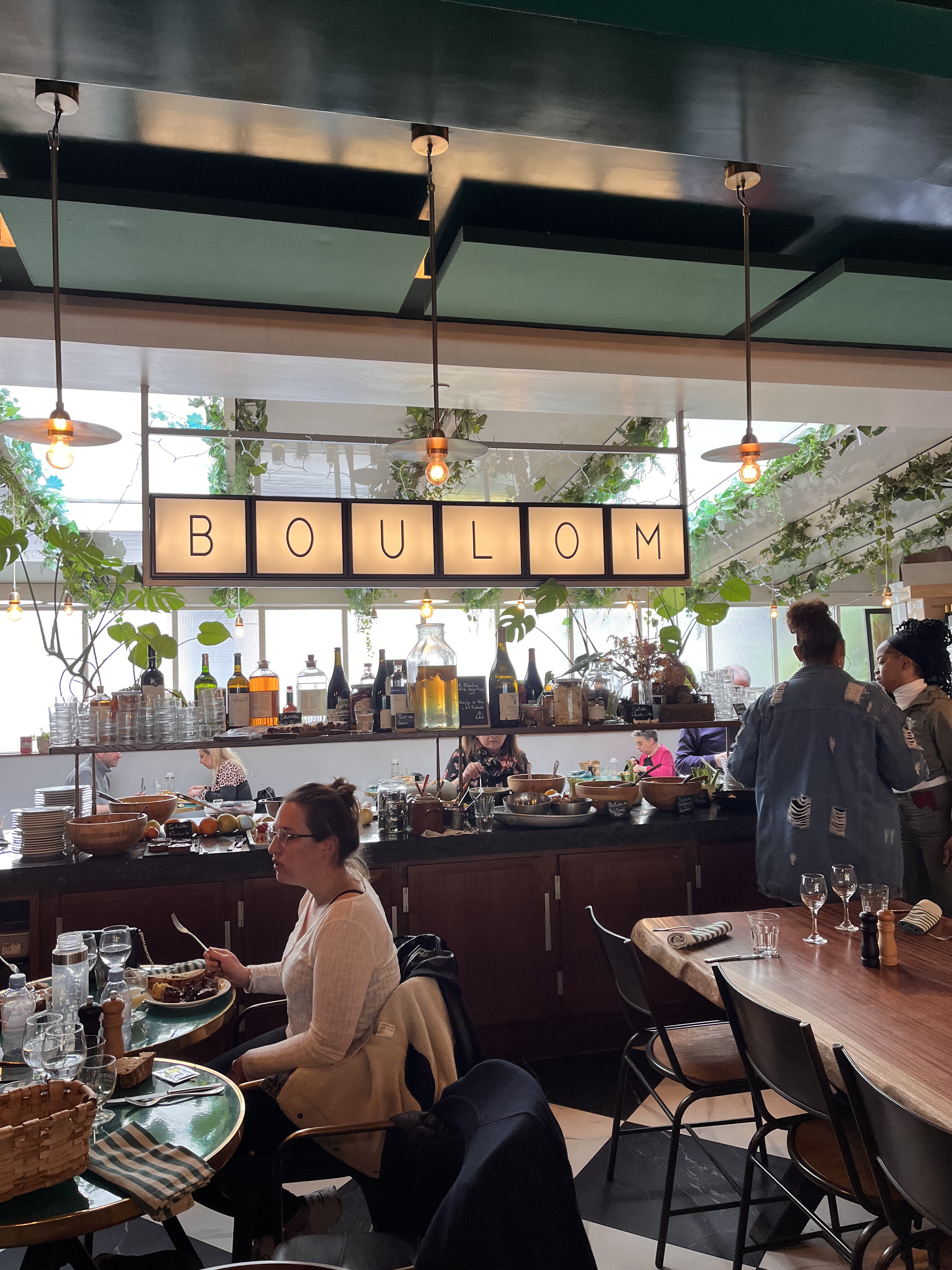 Déçus de notre expérience à Boulom. Nous sommes venues un dimanche, 56 euros par personne. Concernant le cadre : aucun effort sur la décoration, le plafond s’émiette, sol pas très propre (alors que le café est rempli à même le sol dans les machines), trop serré aux autres tables, il faudrait faire moins de couverts pour être plus à l’aise mais 💶. L’agencement des lieux est certainement à revoir. L’organisation est clairement pas au point, pas de carte de vin apporté, il faut la demander, attente pour commander une bouteille alors qu’il faut se dépêcher car au bout d’1h45 tapante on vient te demander de libérer la table. Concernant la nourriture : les plats sont bons et de bonne qualité, je n’ai rien à redire sur ce sujet. Déçue par les boissons: jus d’orange pas pressées, café filtre, smoothie sans goût .. au vu de la nourriture et boissons le prix du brunch est complètement excessif. Je pense qu’il est plus judicieux de venir en semaine pour bénéficier du prix semaine afin de s’y retrouver.