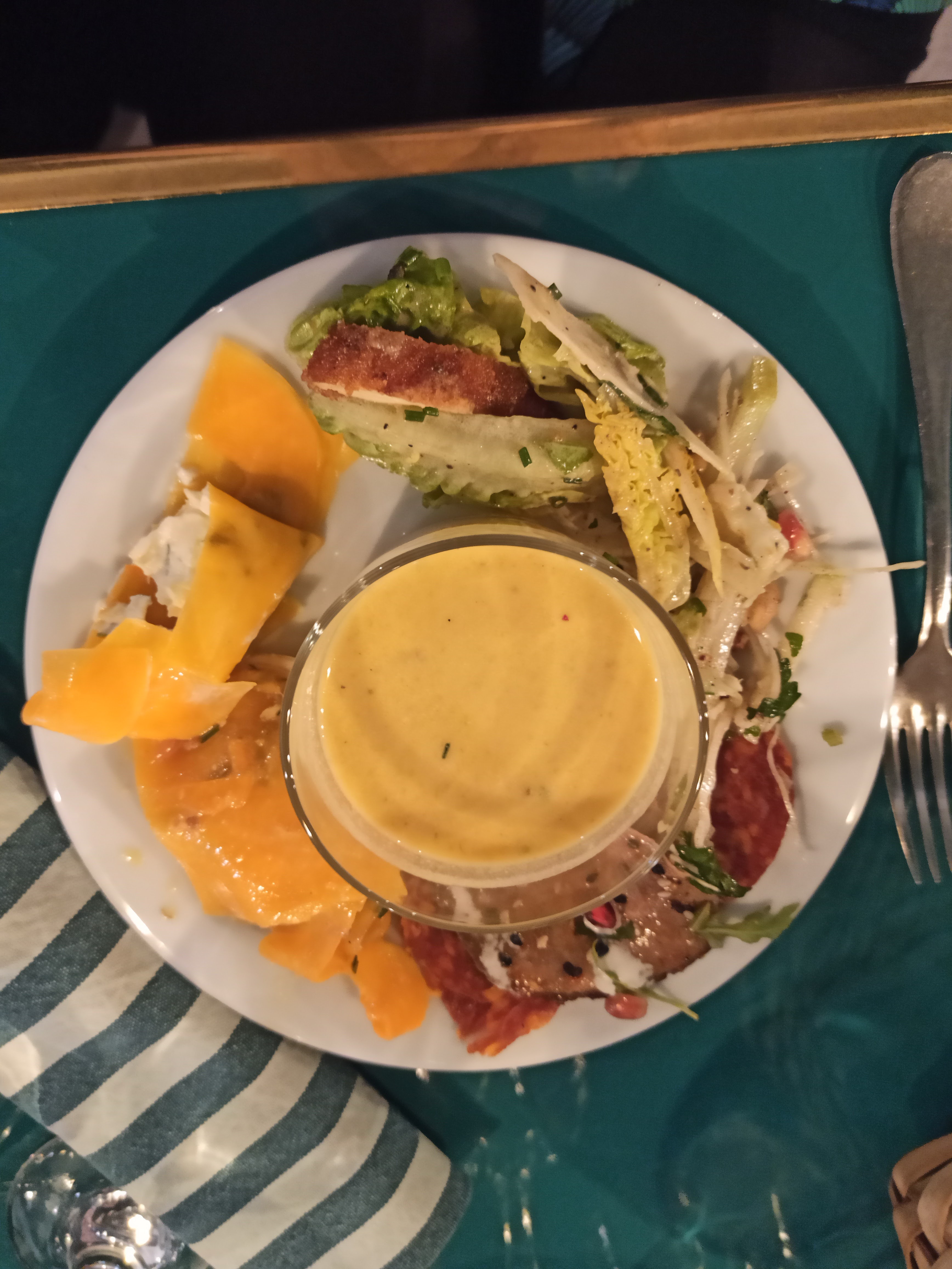 Un endroit secret dans Paris qui mérite votre visite. Le buffet est copieux. 32€ le midi. Il faut réserver