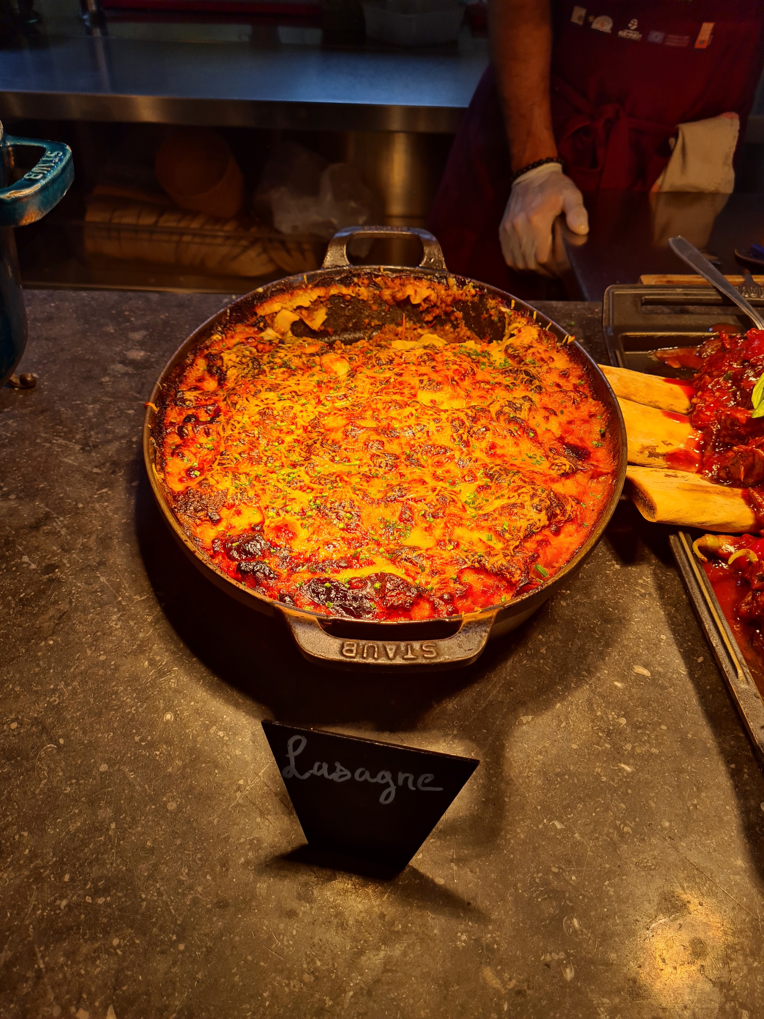Expérience très appréciable et très originale. Grand choix de plats de l'entrée au dessert pour les gourmands et ou les gourmets. Pains divinement bons. Le concept est tout à fait adapté aux bons mangeurs. Pour ma part, j'ai peu mangé... appétit réduit suite à une opération gastrique ! Vu le prix j'aurais voulu faire honneur aux buffets. Médicalement impossible.