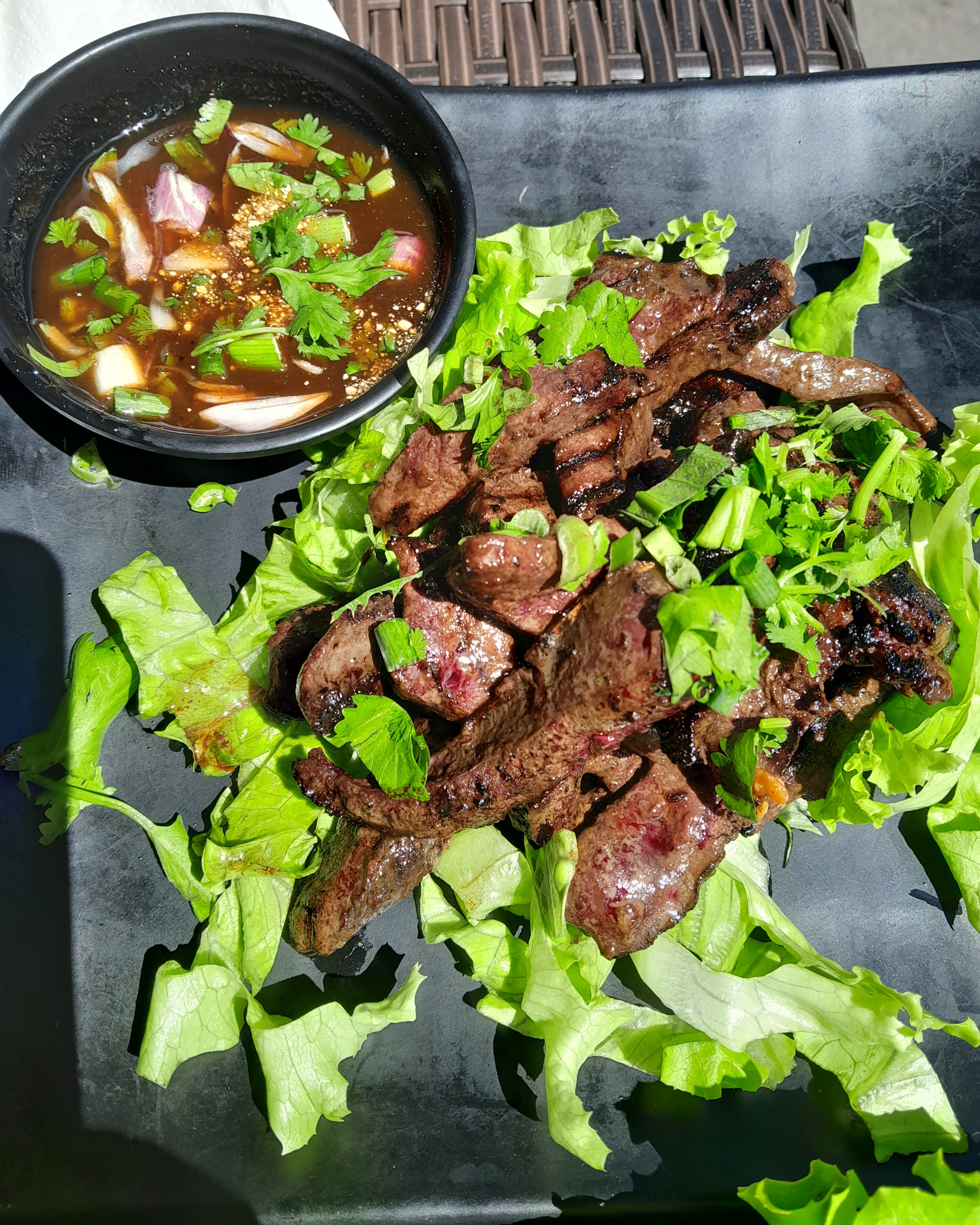 Cuisine authentique . Le laab de bœuf cru en entrée est très bien servi (autant qu'un tartare) et avec plein d'herbes Thaï 😋