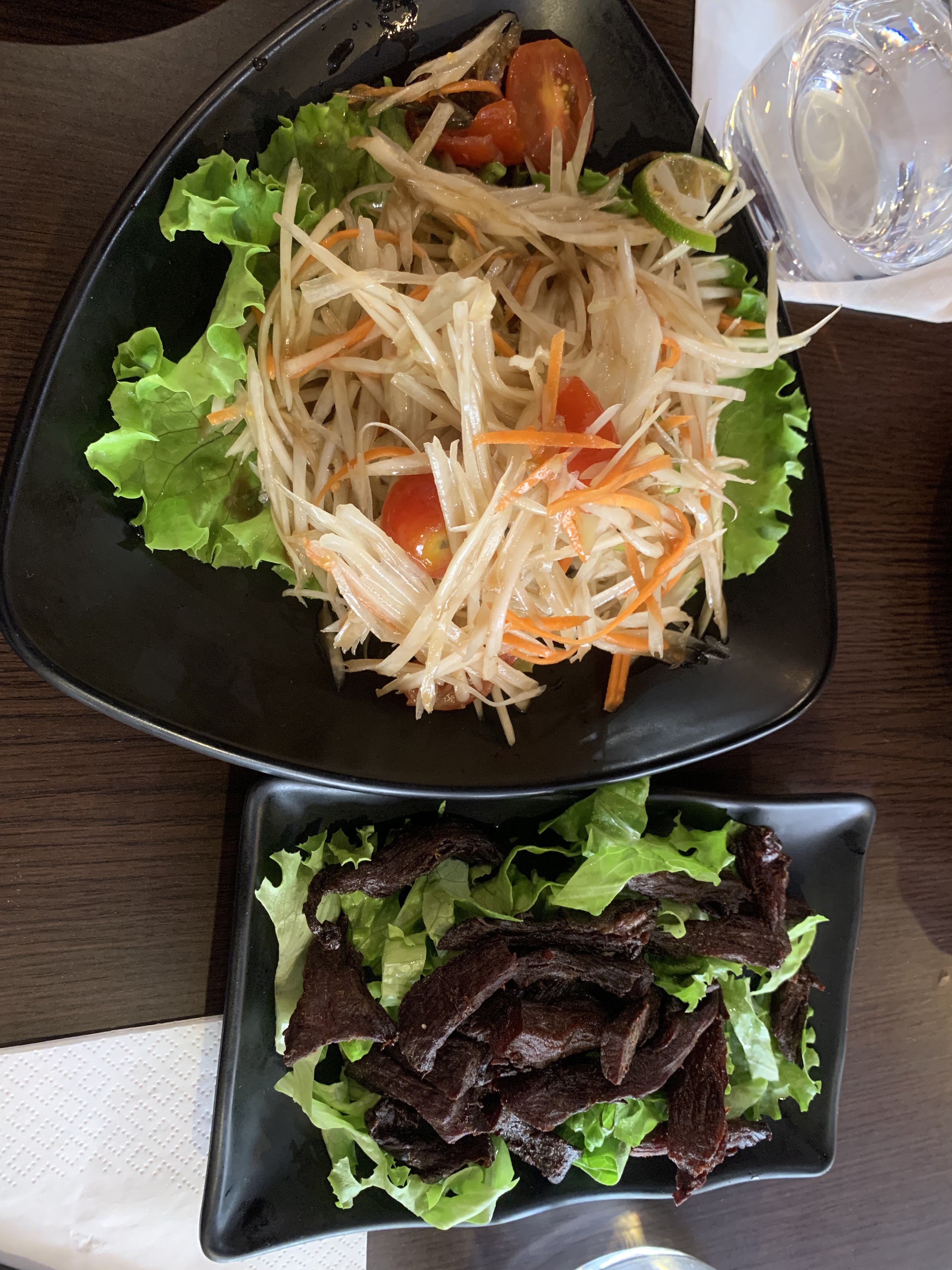 Un authentique déjeuner thaïlandais sans devoir prendre l’avion. Nous avons finalement retrouvé une salade de papaye avec du crabe fermenté comme nous avions mangé lors de nos voyage en Thaïlande. Soupe Tom yum, saucisse de Chang Mai, Laab canard, bœuf à la sauce tamarin, pad thaï et sans oublier les desserts au riz gluant et au tapioca tout à été absolument parfait du début à la fin. Le propriétaire est super sympa et professionnel. Service attentif, plats maison préparés sur le moment, un vrai bijou thaïlandais au cœur de Paris.