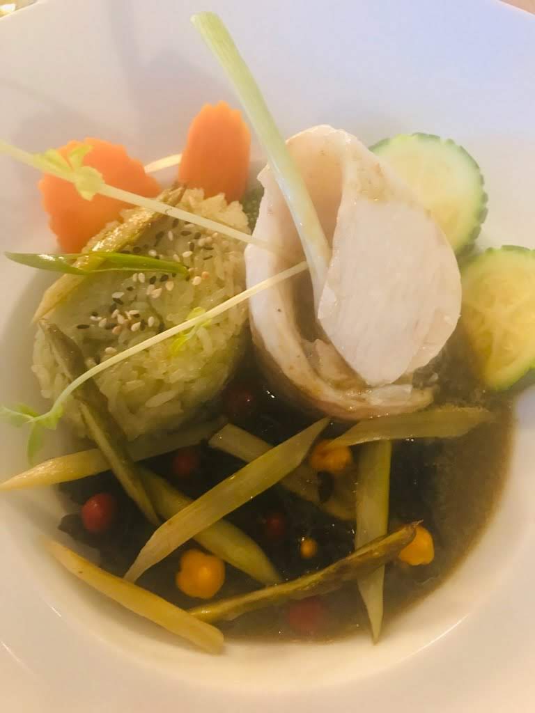 Cuisine fusion : fraîche et originale, le Chef crée son propre combo de cuisines thaïlandaise et française. Je vous recommande vivement le dessert Tako (crème de coco et marron)