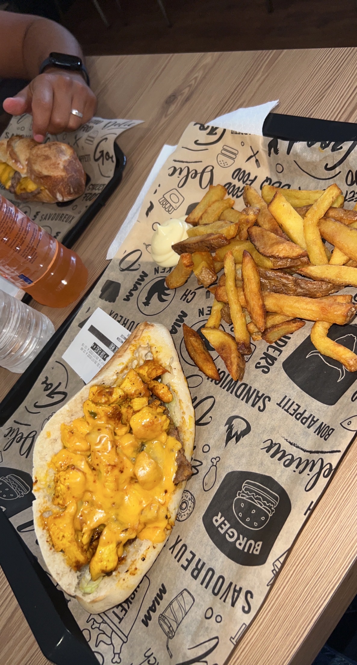 Tout simplement succulent. J'ai commandé un burger spicy chicken avec supplément oignons confits et ce fut une explosion de saveurs jusqu'à la dernière bouchée. Je m'en suis d'ailleurs léché les doigts pour ne pas en perdre une miette (et aussi parce que c'est une sunna)... Le poulet pané maison était très bon, la sauce spicy façon harissa maison délicieuse, les oignons confits délicieux également. Les frites maison aussi très bonnes. C'est certes qlq euros de plus que la concurrence mais ça en vaut le coup. 👍 Je recommande fort.