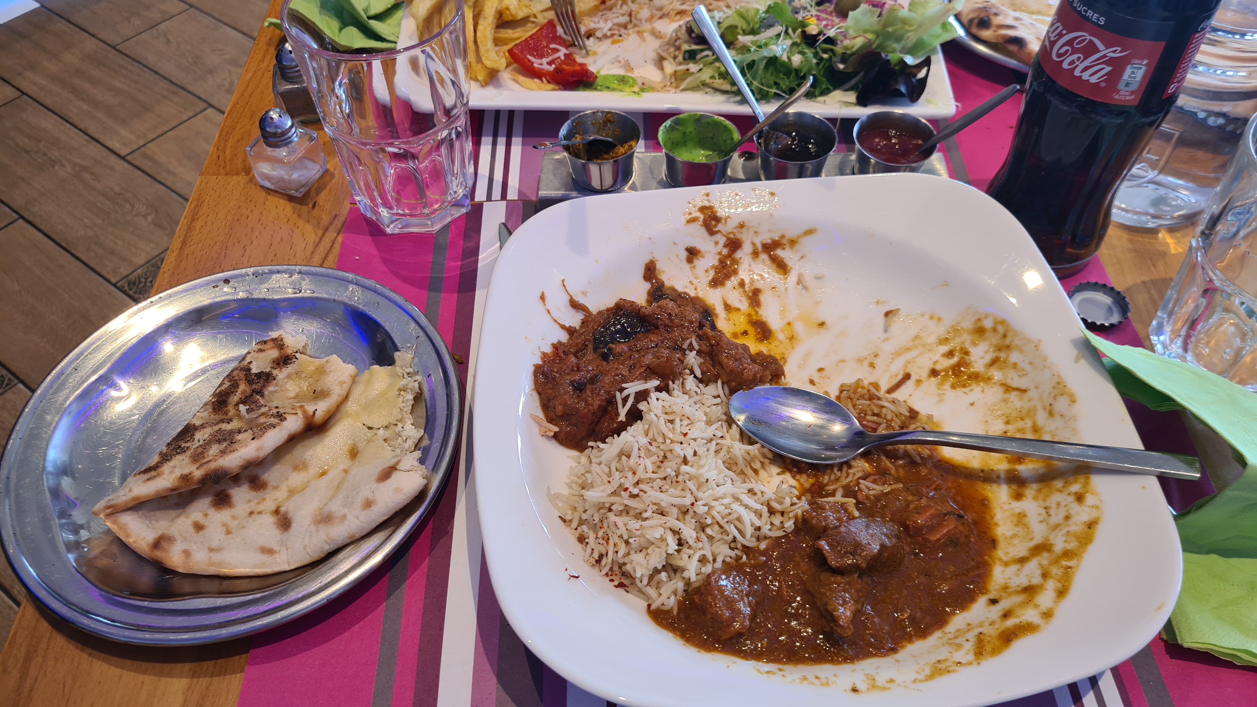 Attiré par la décoration intérieure, il était temps de tester l’offre de cet établissement. Et la surprise fut agréable. L’accueil du personnel est très amiable. Tout le monde est avenant et souriant. Les explications sont claires. La carte est variée pour répondre aux envies de tout à chacun. Cela va du biryiani aux grands classiques de la cuisine indienne. Les aliments sont préparés à partir de produits frais et bio (pour la farine). Et le résultat est à la hauteur : des plats copieux, goûteux et bien équilibrés. On en a pour son argent. Les tarifs sont très raisonnables au vu des plats proposés. Bref, une adresse a recommander sur la région. Bravo a l’équipe.