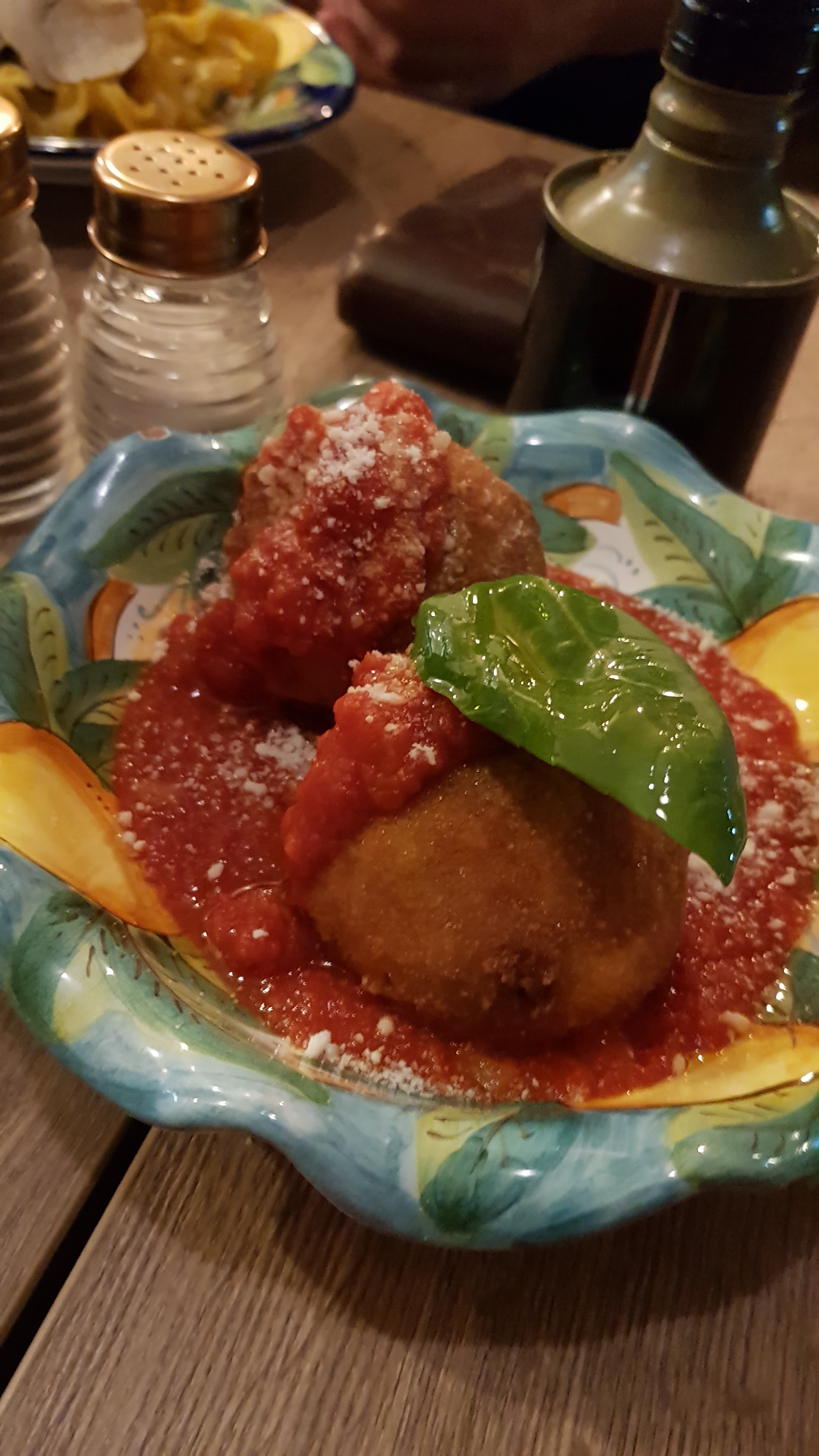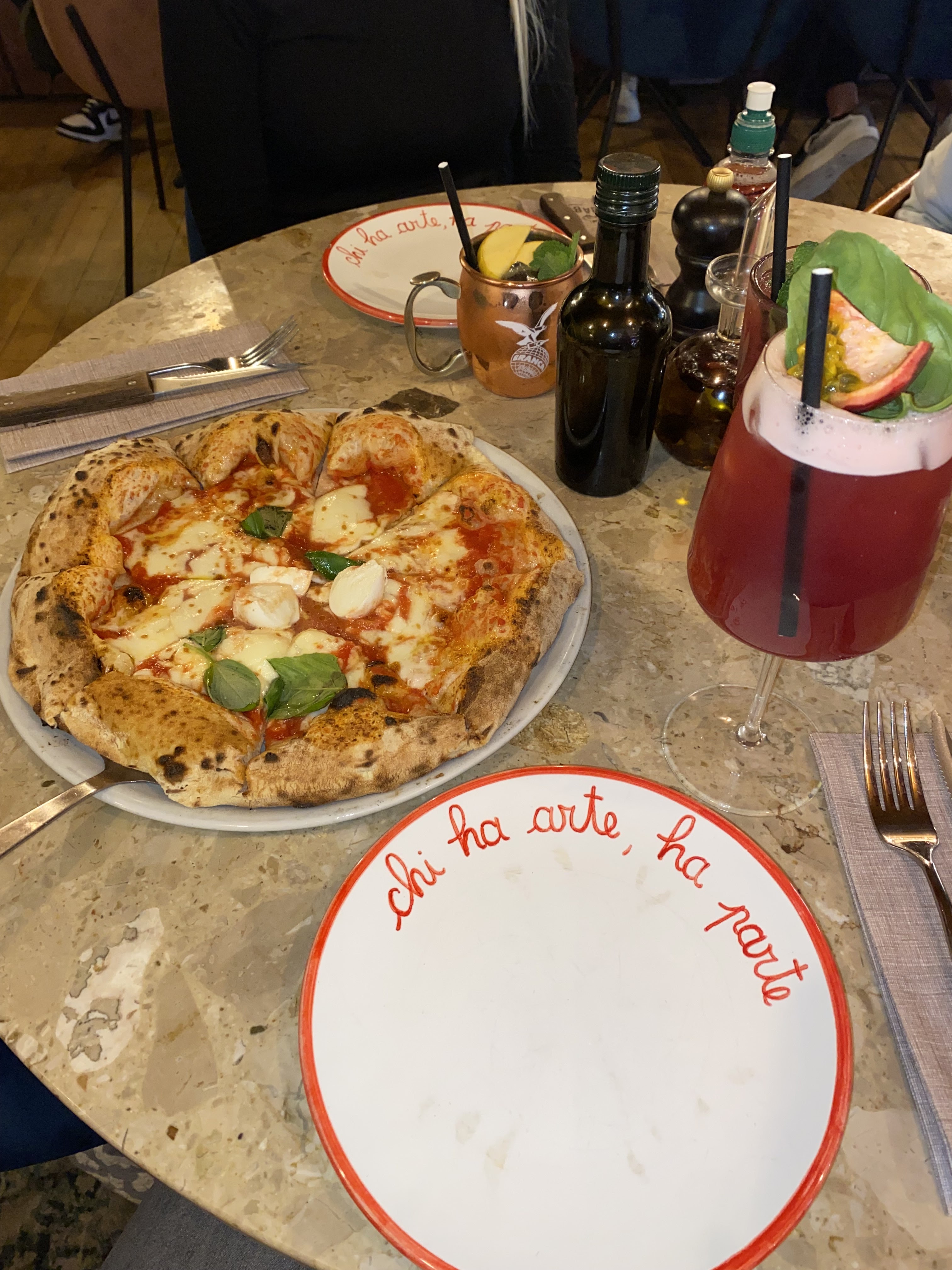 Gros restaurant, c'est l'usine à l'intérieur, bruyant et m'as-tu vu. Service moyen, on avait réservé et on nous a oublié... pire, on fait passer les amis avant nous. On a attendu 1/2 heure pour prendre les commandes... on est peut-être mal tombé ce soir là niveau service/accueil?😕 Les plats. Dans l'ensemble ils sont juste bon mais cher pour ce que c'est. Les aracinis chaudes sur une sauce tomate froide sorti du frigo, c'est sensé être servi comme ça? Les pizzas n'ont rien d'exceptionnelles et même pas cuitent au feu de bois, à 20€.. A ces prix on s'attend à des plats un peu plus raffinés et mieux présentés, pas juste assemblés grossièrement comme dans une chaîne de restaurants. Dommage...