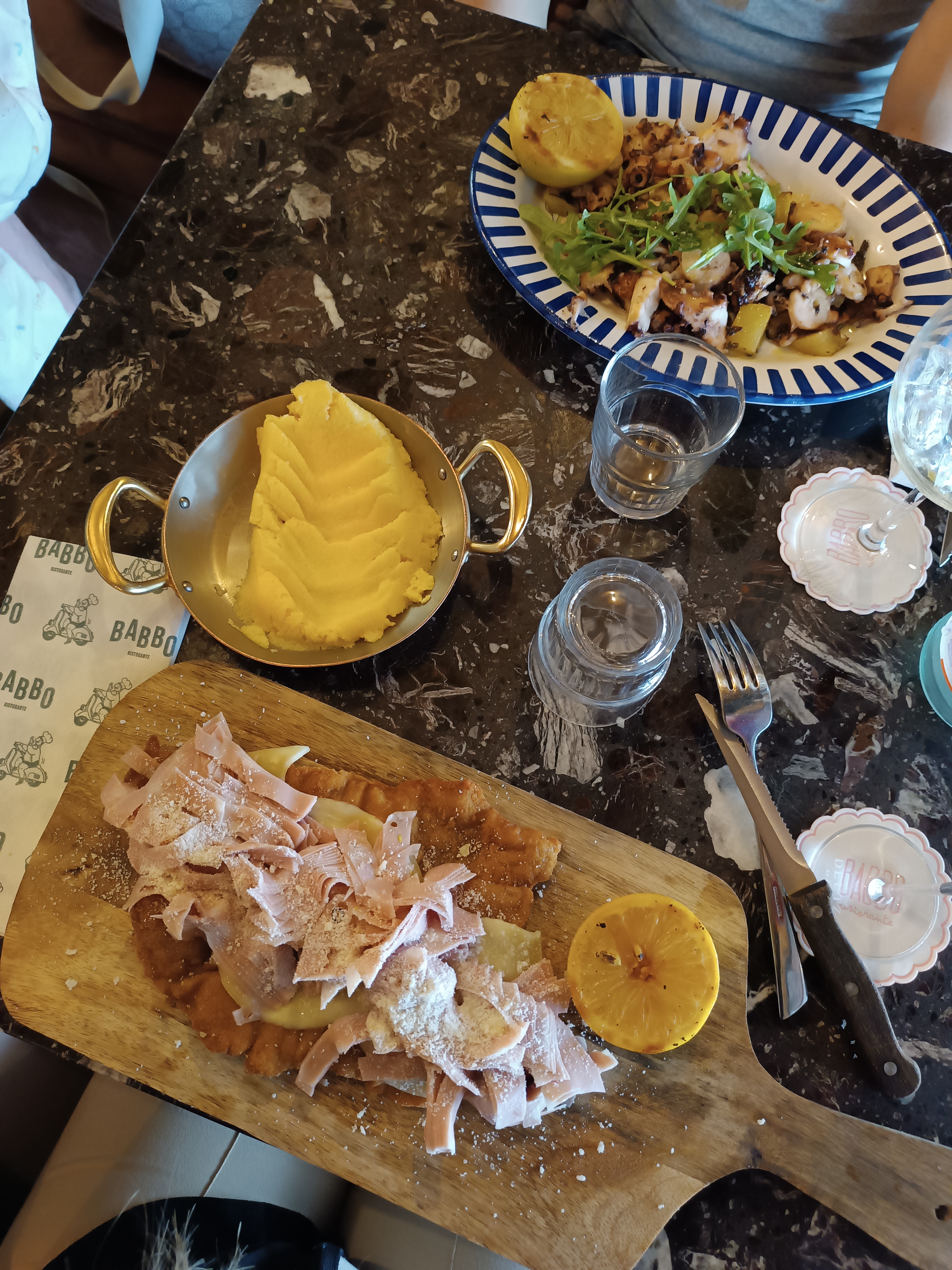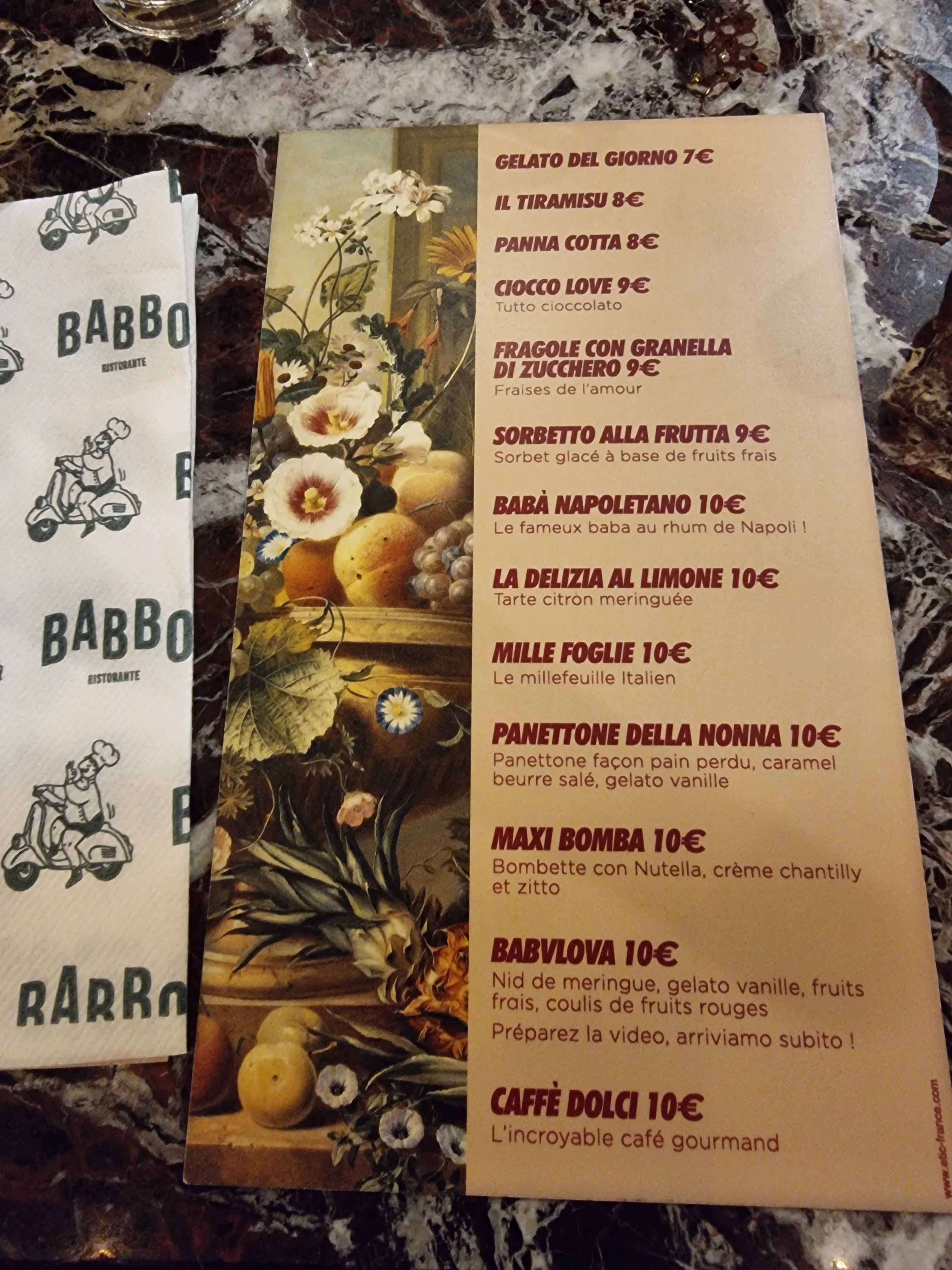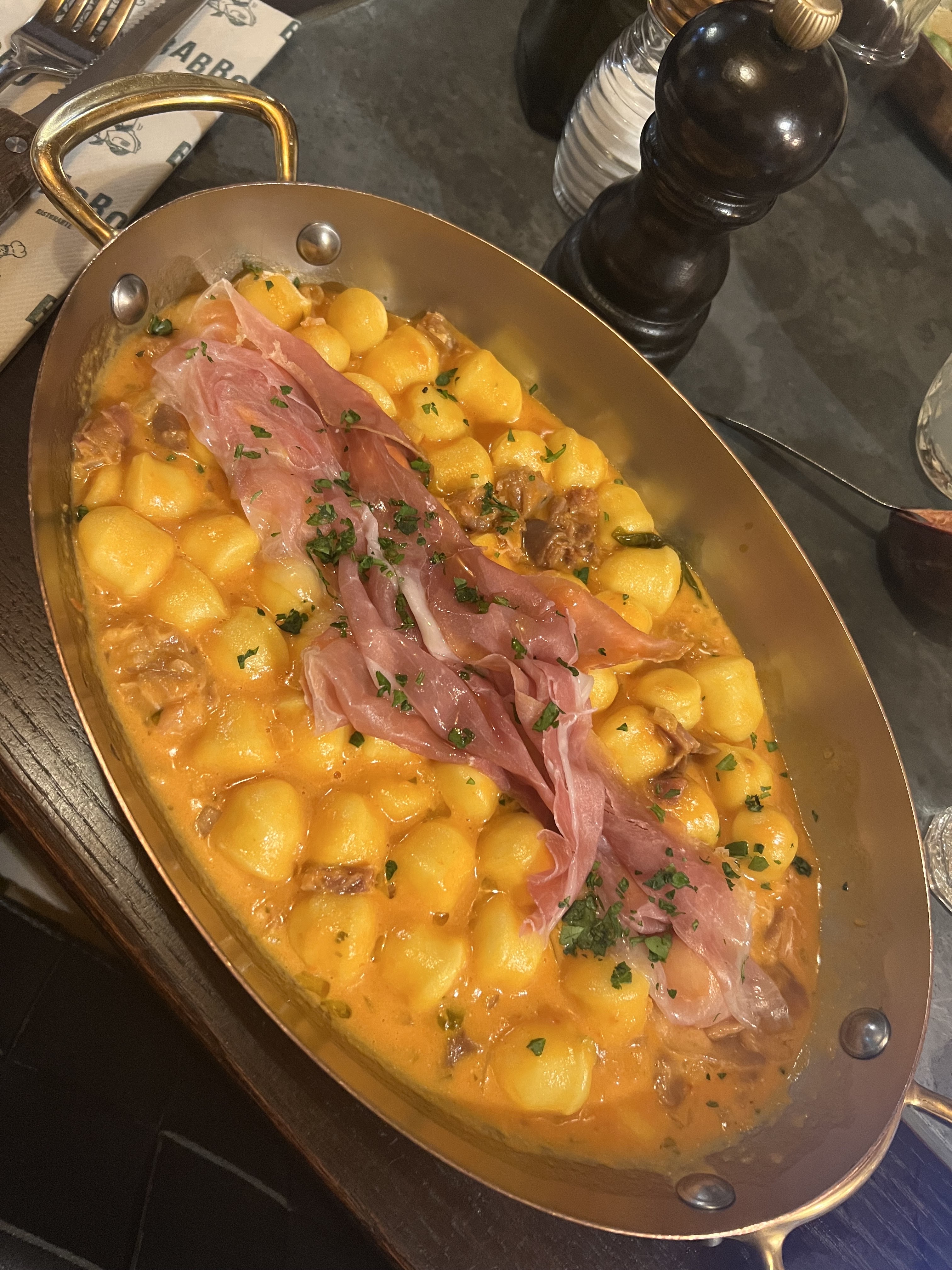 J'ai découvert Babbo, grace à des amis. En rentrant dans le restaurant j'y suis tombée sous le charme. Accueilli avec le sourire par tout le personnels, musique parfaite, cela nous emmène en italie de suite. De l'apéro au dessert délicieux, le voyage est parfait. Je le recommande vraiment. Je reviendrais.