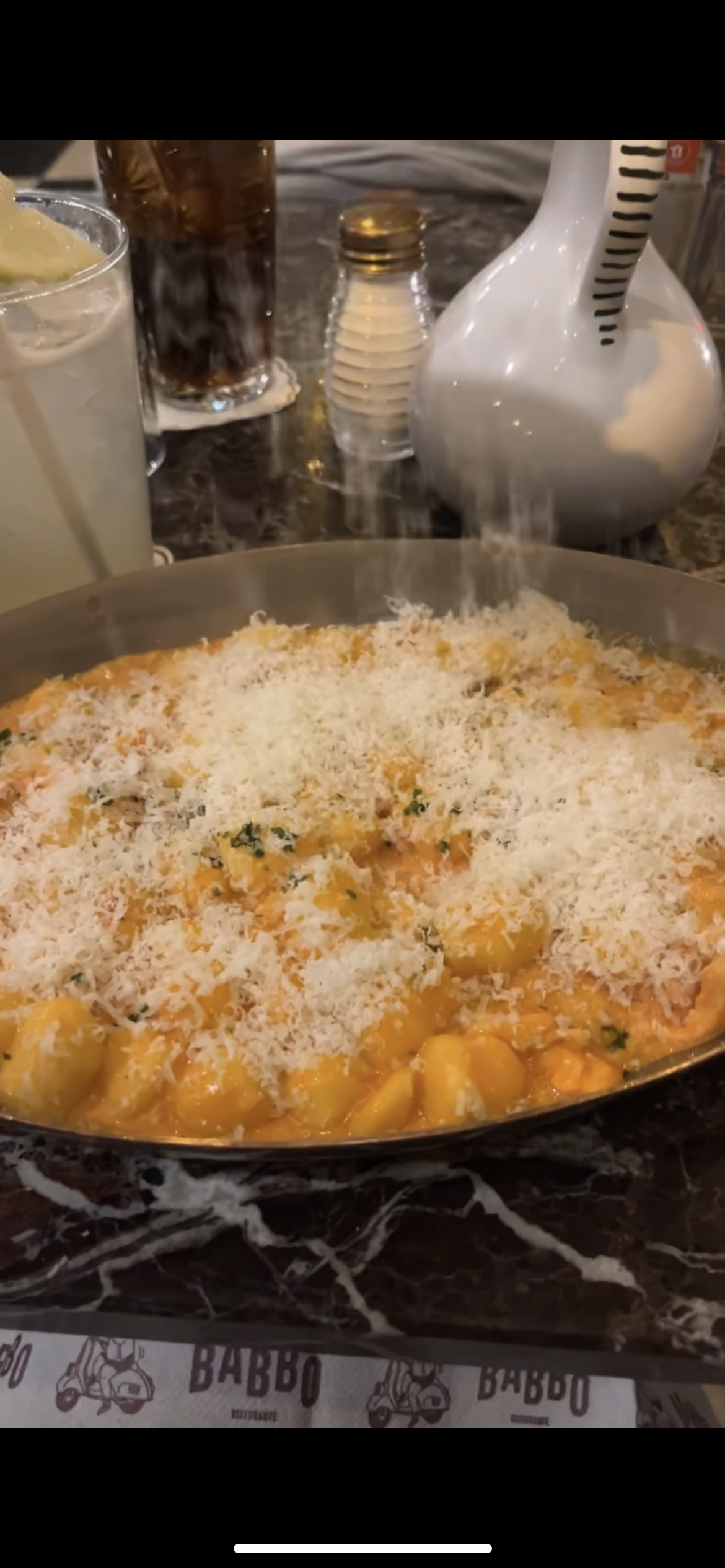 Exceptionnel! Mon restaurant italien préféré de tous alors que j’habite sur Paris et qu’à Paris il y’a aussi de bons italiens Et pourtant babbo reste le numero1 Tout est parfait du cocktail au dessert L’ambiance est superbe Trop agréable ces italiens Merci je recommande vivement