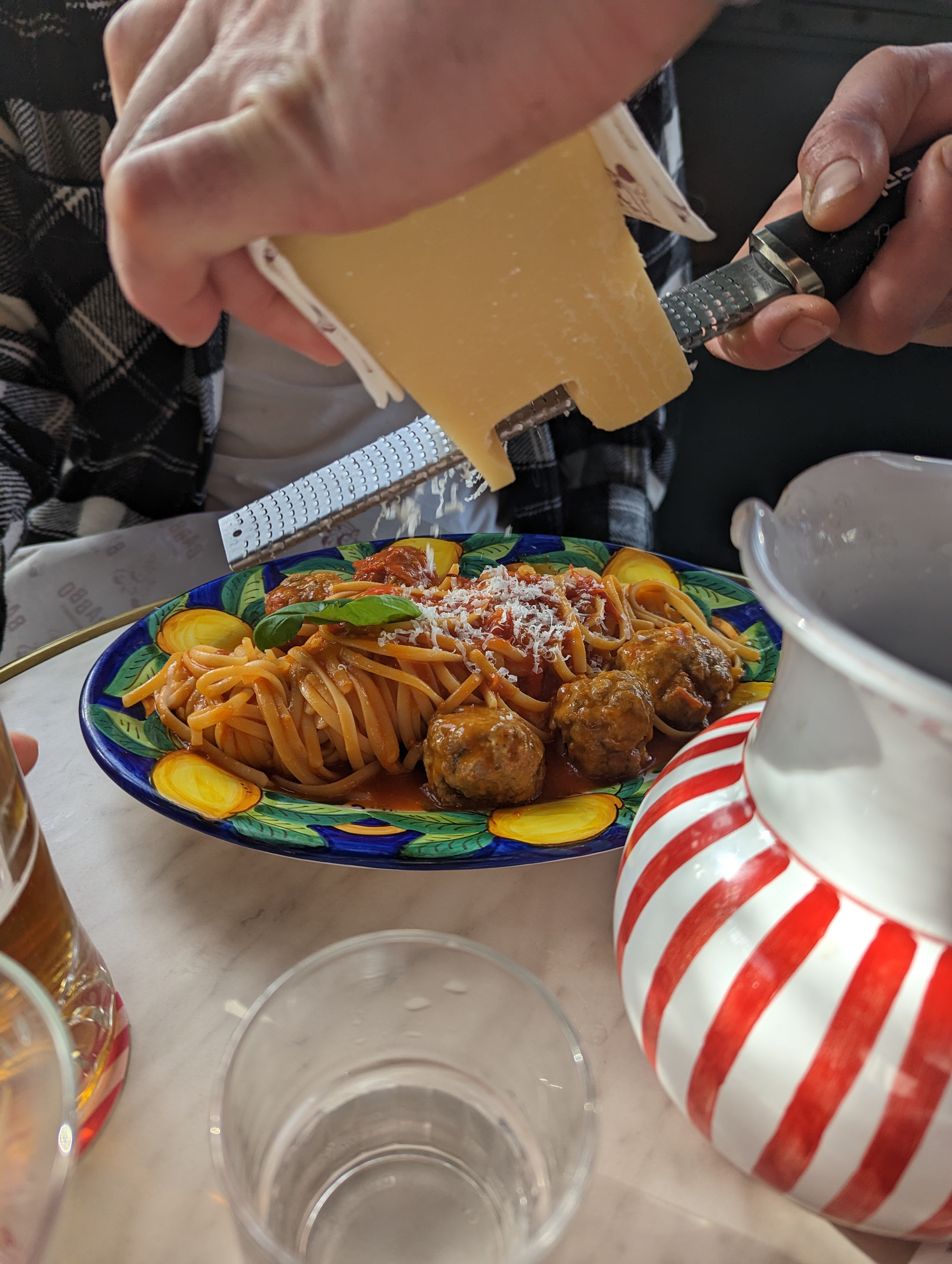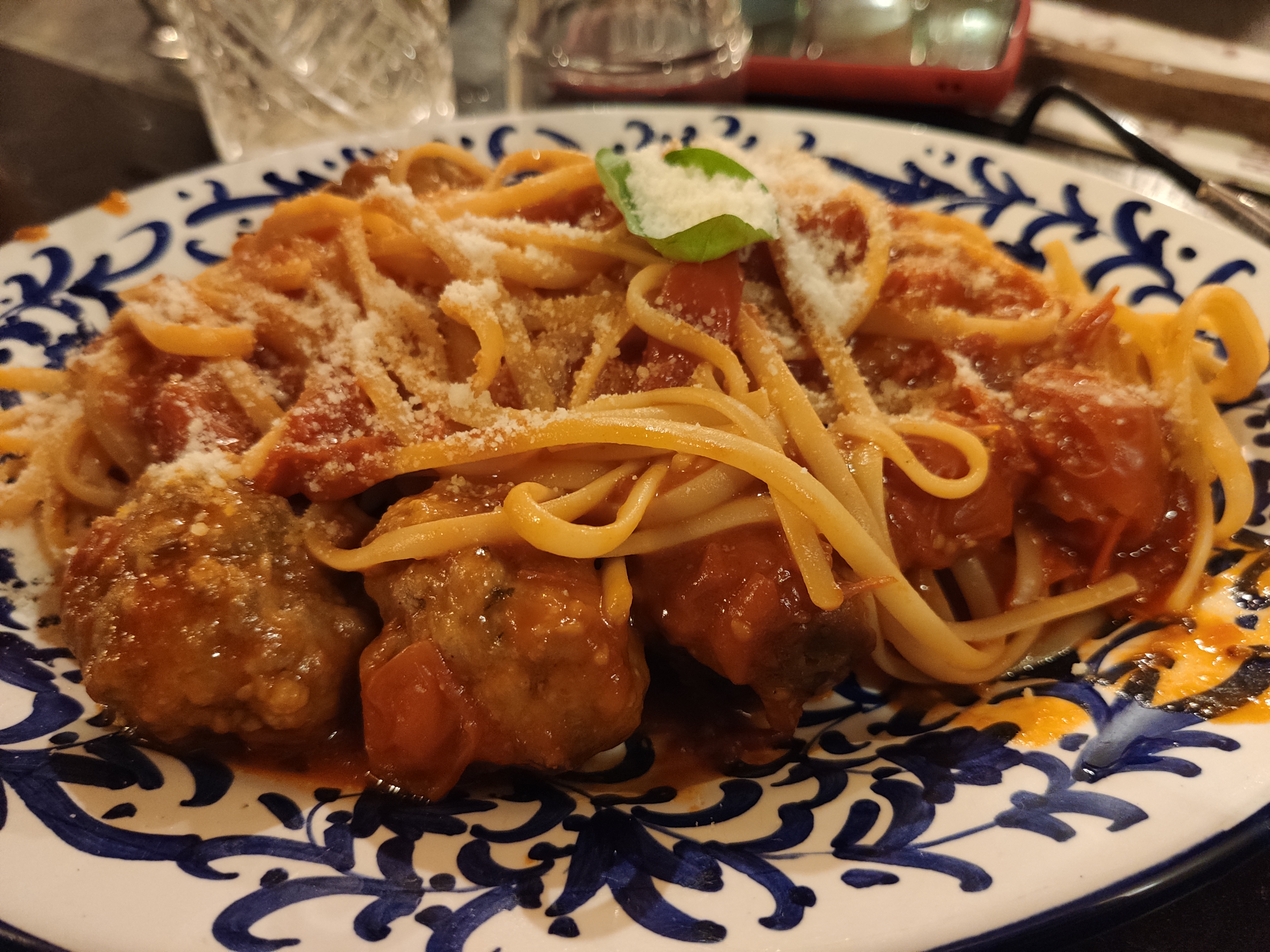Je suis peu être un peu sévère sur le nombre d'étoiles, mais cela est dû au fait que la majorité de nos 7 plats étaient juste tièdes voir froid pour certains. Personnellement, j'avais choisi les pâtes au boulettes de viande. Polpette, c'était bon dans l'ensemble mais absolument rien d'exceptionnel pour les 24 euros de ce plat de pâtes. Cependant, le service était extraordinaire, toute l'équipe très gentille et très joviable, très bonne ambiance. Viva Italia, adoroooo ! La décoration est magnifique aussi. Mais .... Faire la file d'attente à 23heures pour payer .... Nous aurions préfèré payer à table . Donc je mets 3 étoiles pour ces raisons là. Je vous remercie