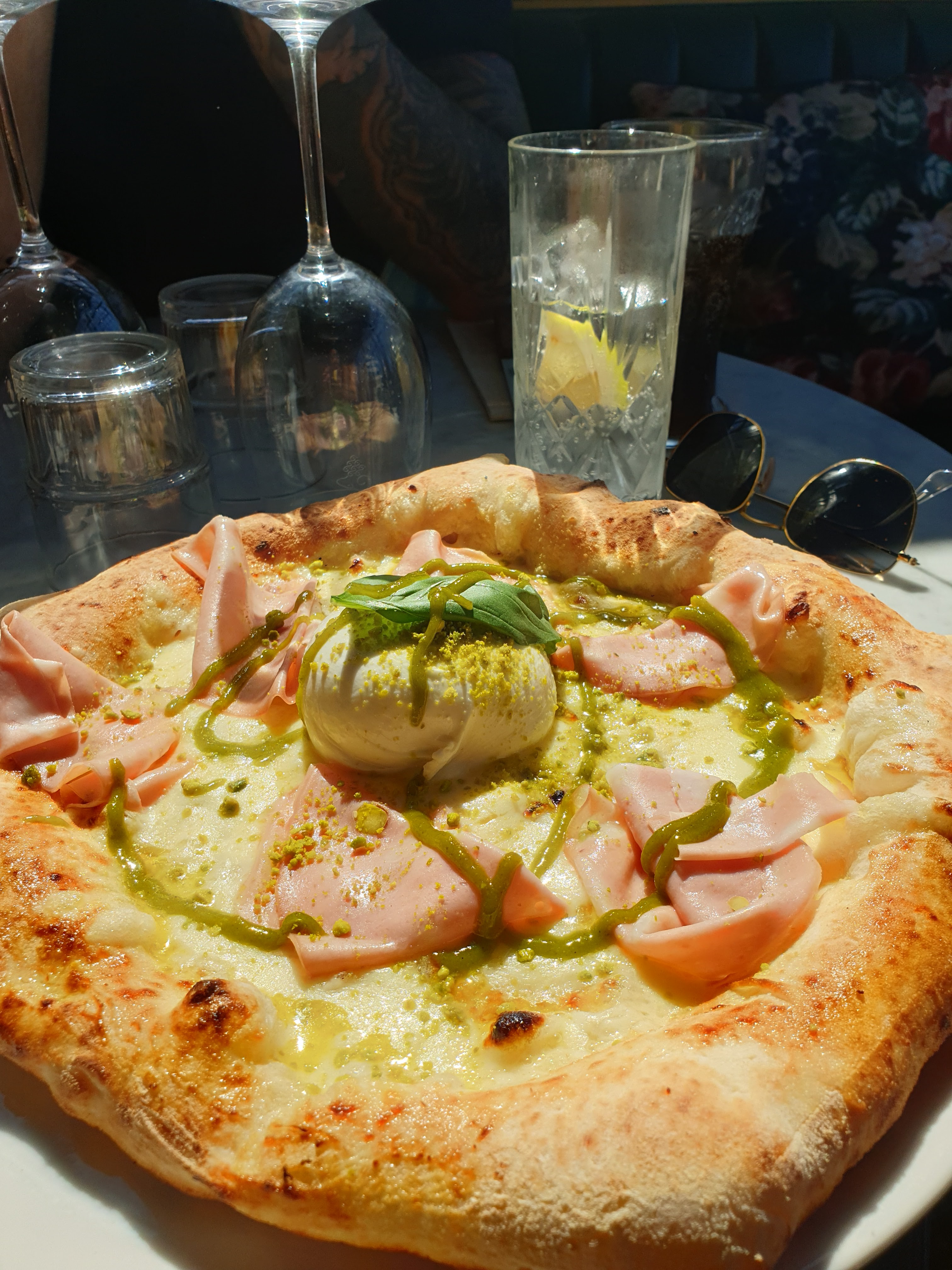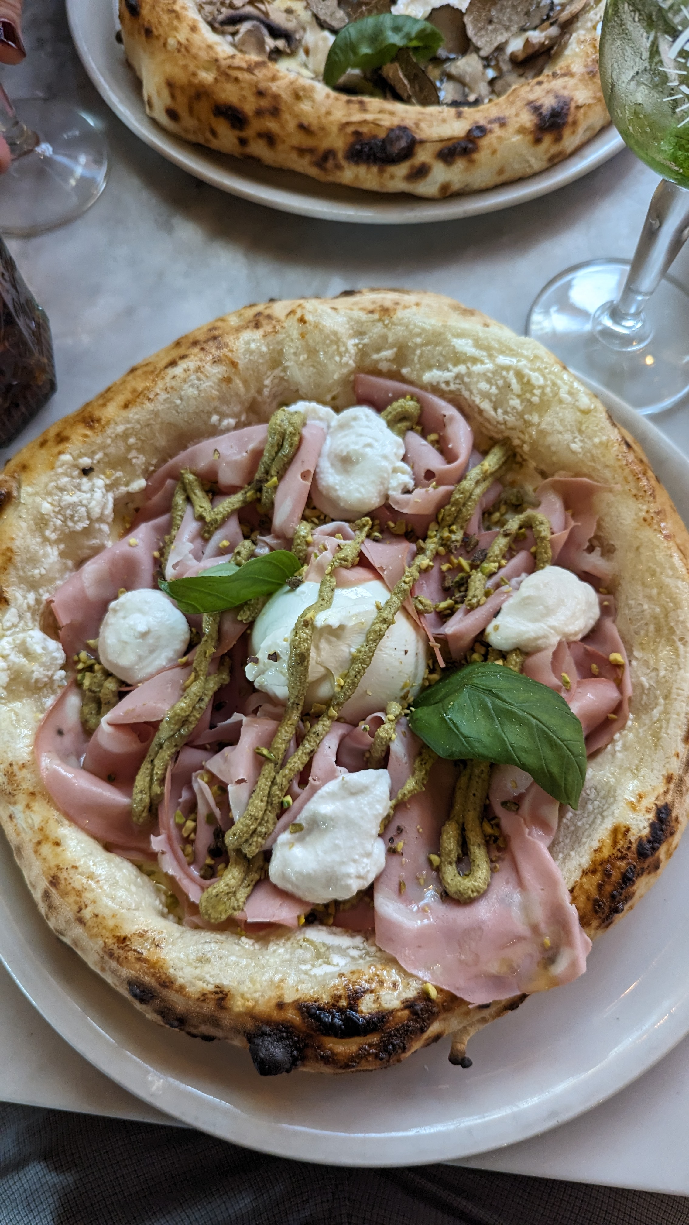 Accueil très décevant : responsable du restaurant que tchatche avec ses amis en me laissant attendre 10min devant la porte, avec tous les serveurs qui tournaient autour de moi pour faire leur boulot sans me prêter attention => donc niveau considération ça fait faible Pour les plats, la pizza et les entrées m’ont paru fades et très lourds, avec des produits très mal dosés, et le goût de la pistache pour la pizza non ressenti selon moi (j’ai cru avoir le covid avec le goût fade en bouche). Pour le dessert, je l’attends toujours. Pour conclure, les prix sont tout de même assez chers pour la qualité que c’est, j’ai vu bien mieux.