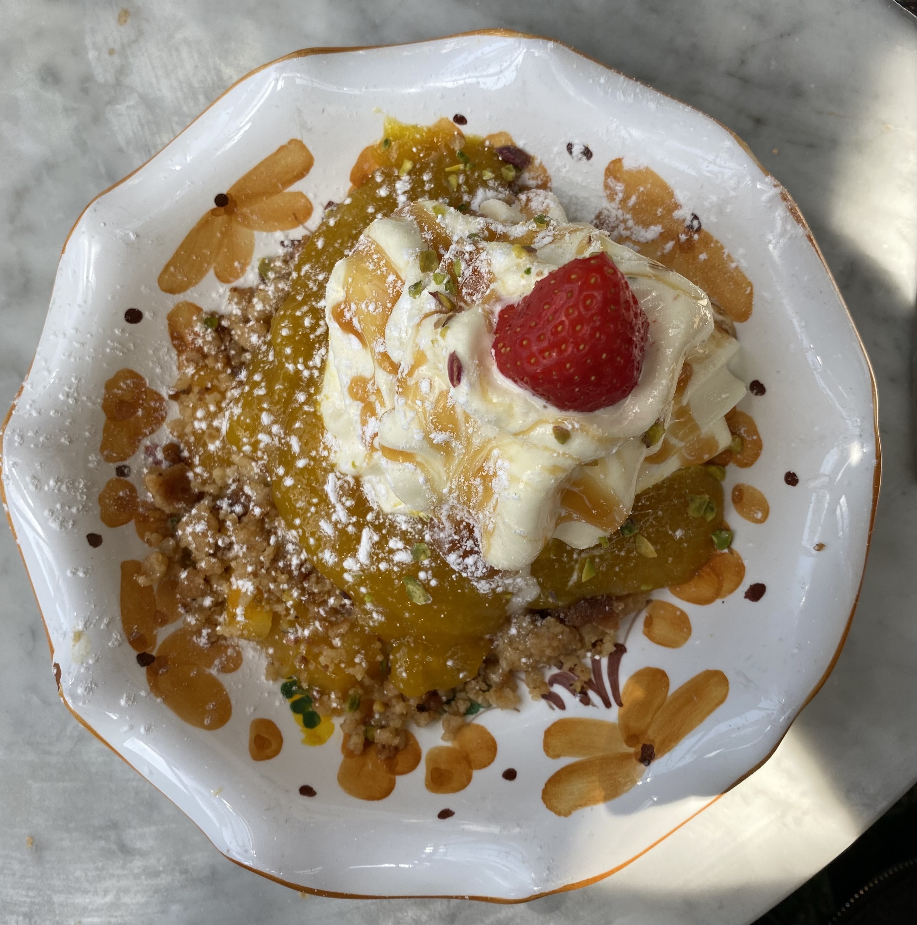 Personnel tres sympathique accueillant souriant chaleureux tres charmant Tres bonne pavlova savoureuse, gourmande, a partager tres facilement je trouve. le thé a la framboise manque le gout de la framboise et un peu de sucre de canne je trouve. Tres bel endroit on se croirait en Italie. Merci pour l'accueil et la gentillesse d'un serveuse grand barbu cheveux noir souriant au max.