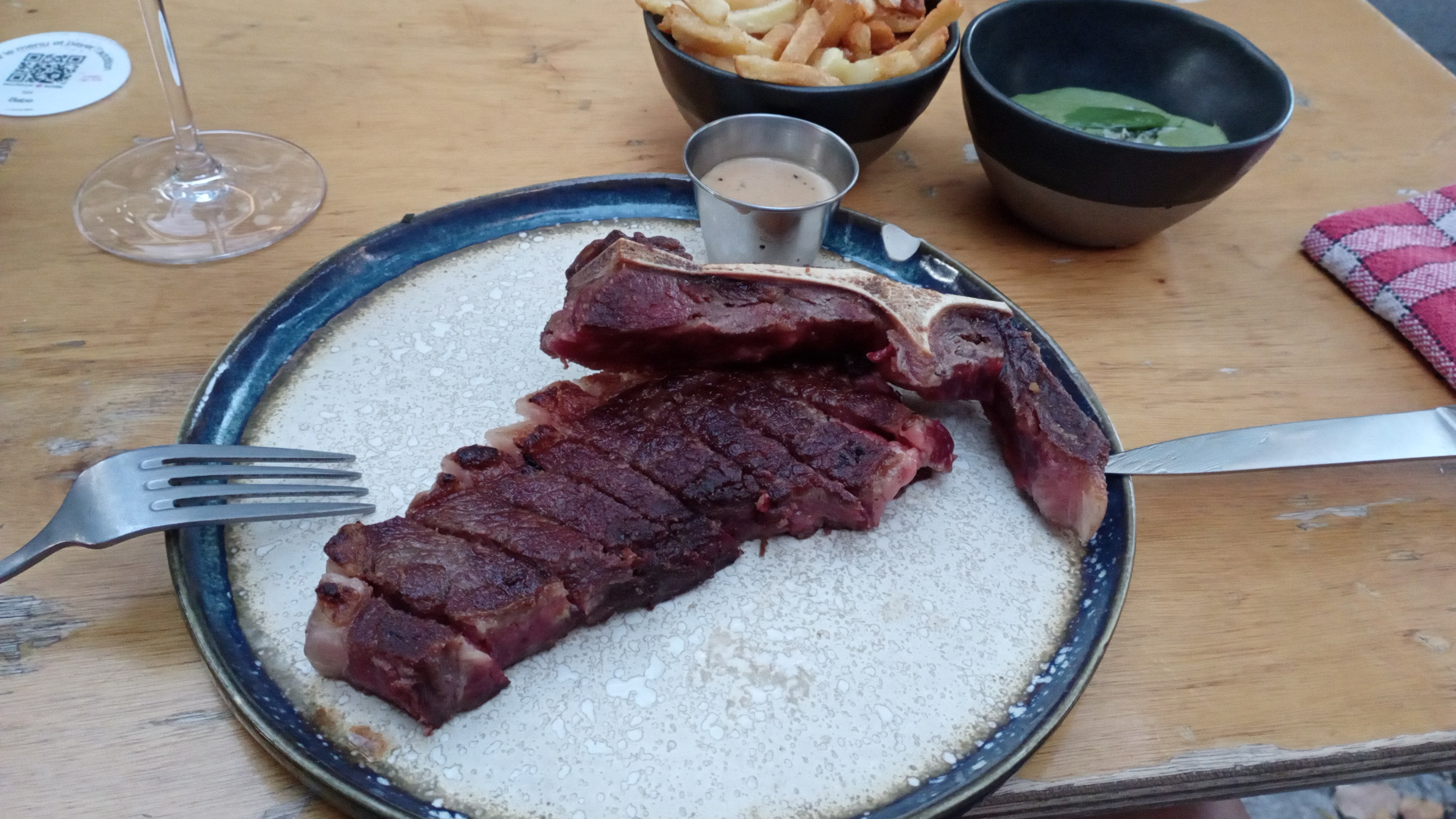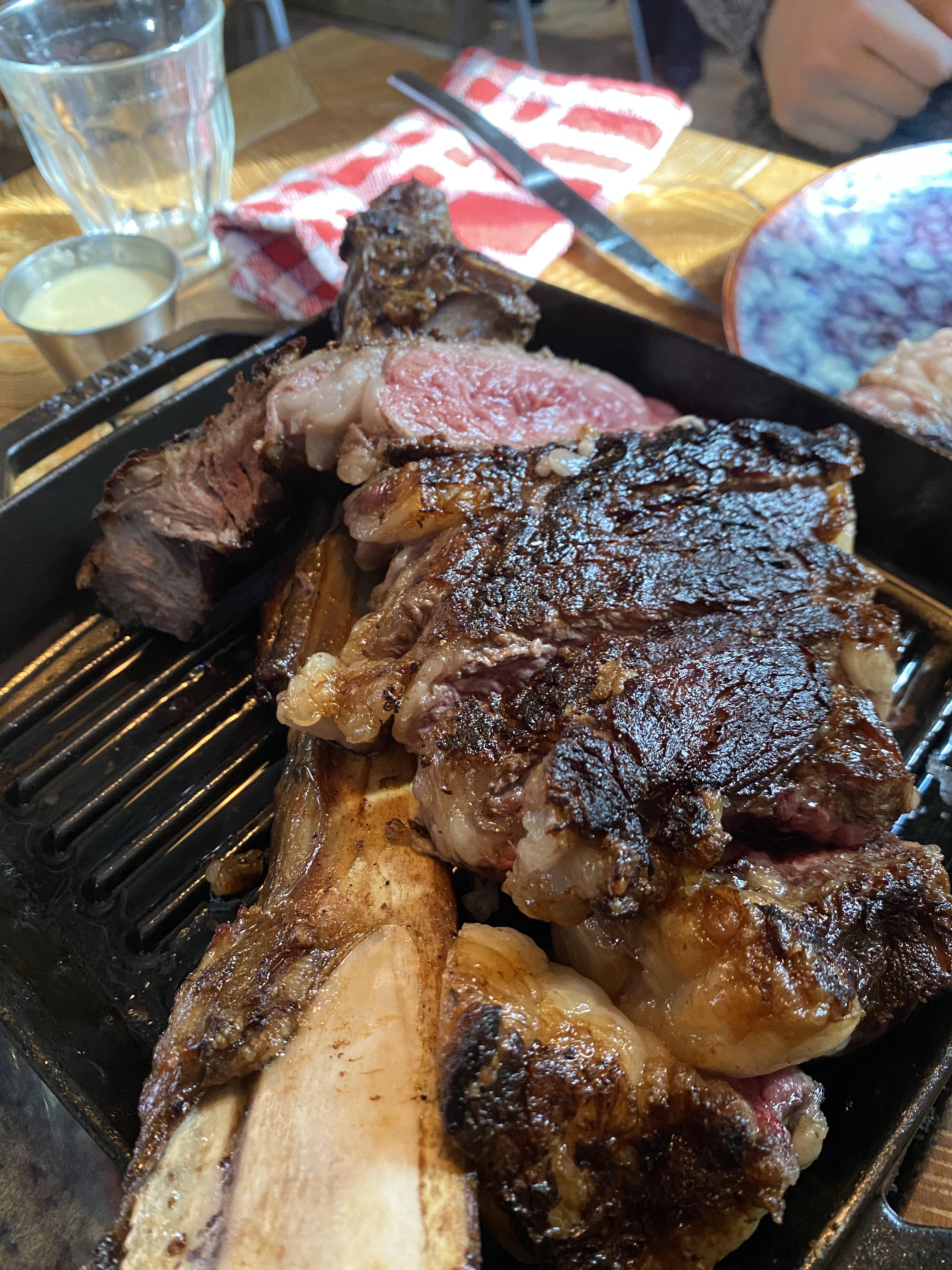 Bonne adresse pour les carnivores. Le L bone était excellent. Les serveurs sont adorables avec les chiens