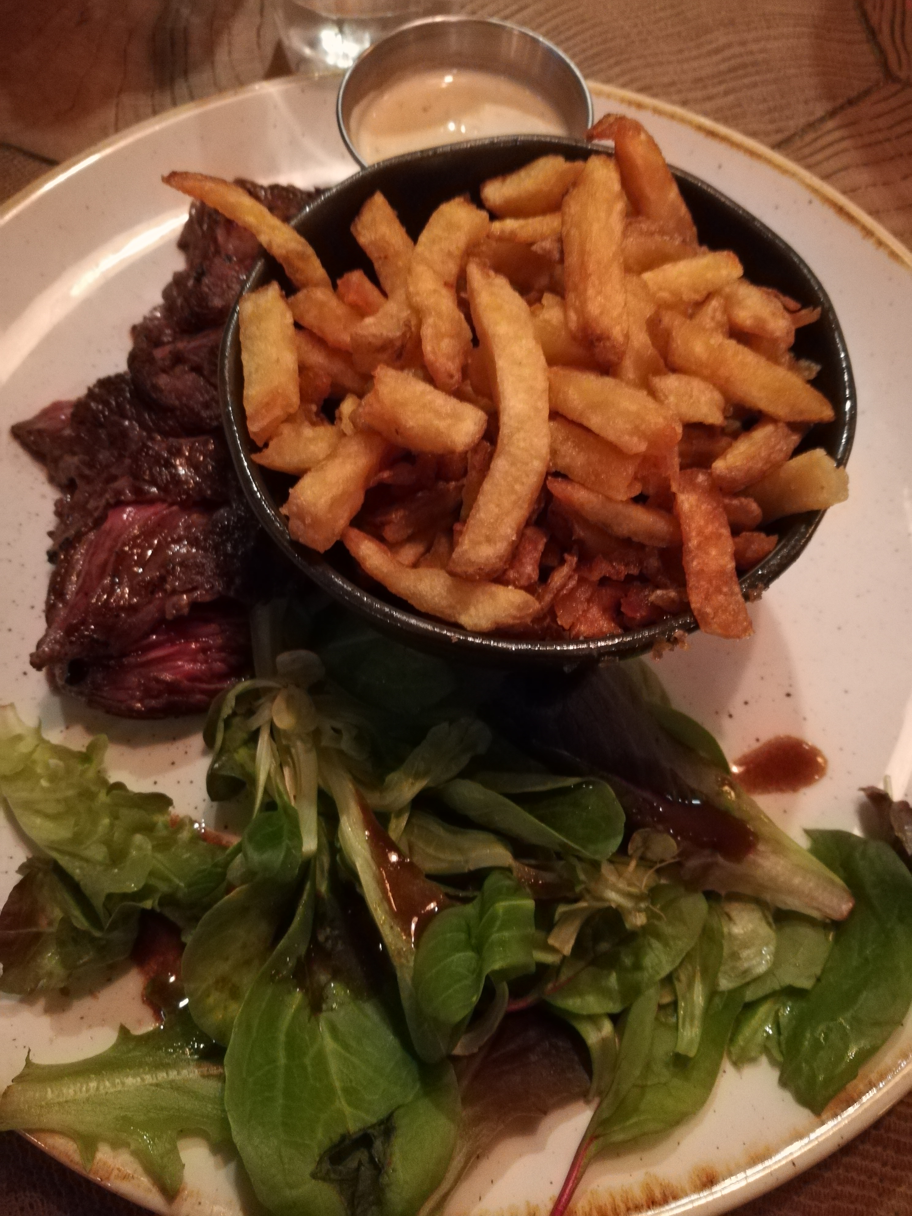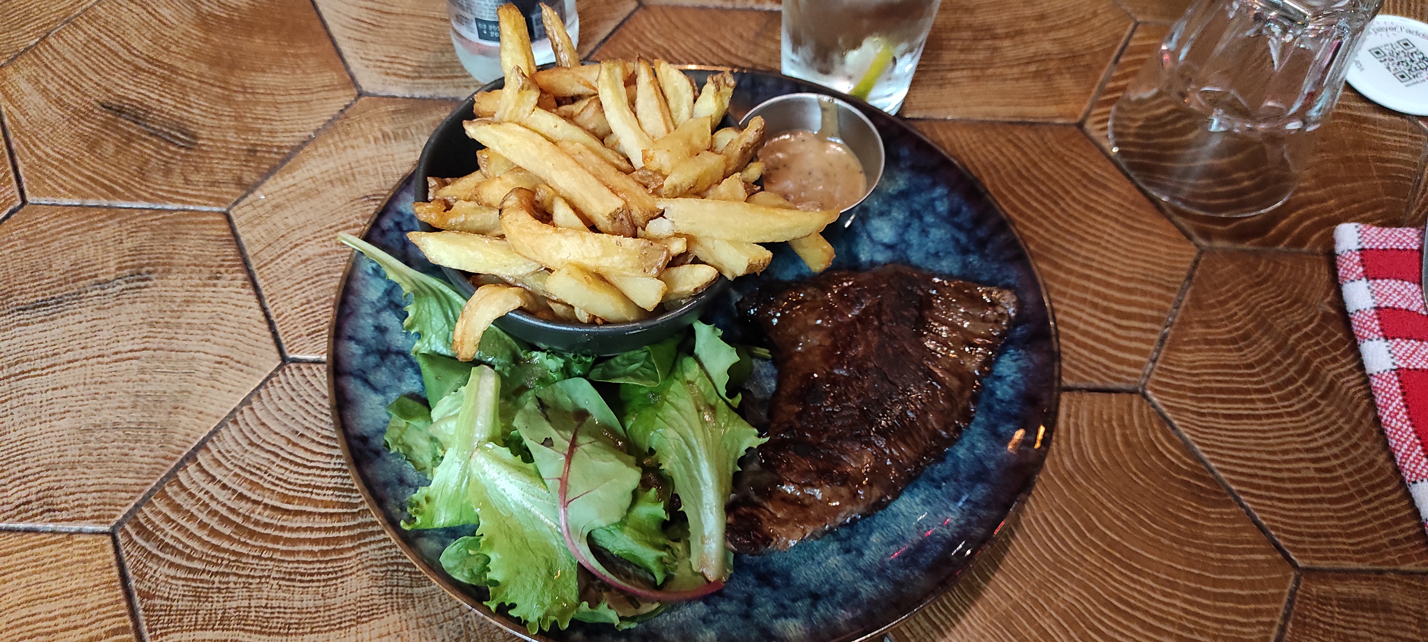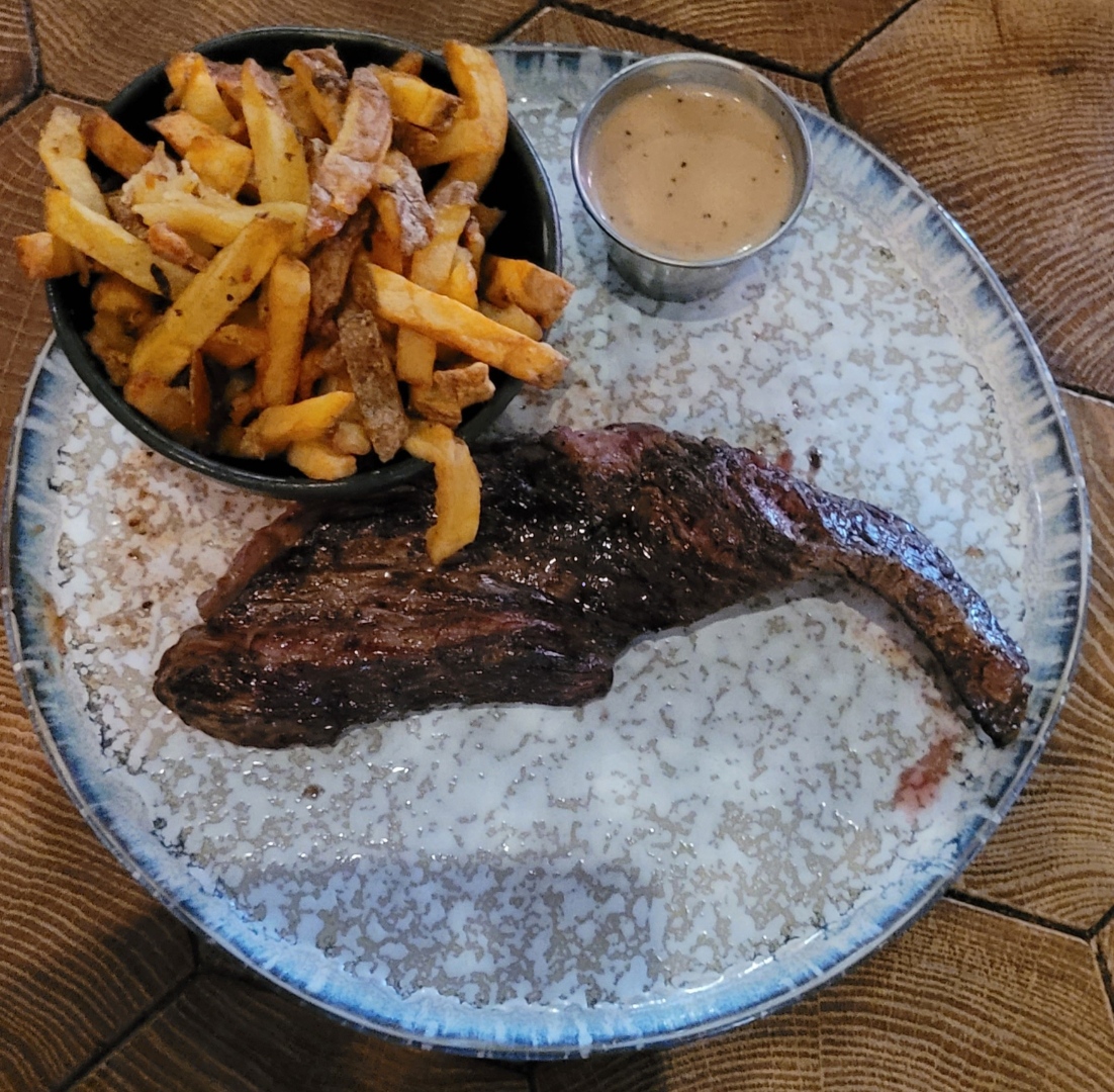 J'avais tellement hâte de manger ici, quand j'ai vu la carte et j'ai lu qu'on pouvait manger de la viande dans les top 5 du monde. J'ai payé 33 euros pour un morceau de viande que je peux acheter chez Lidl et pour de frites que je peux faire chez moi. Je suis complètement déçu. Je vous laisse voir la photo et vous pouvez juger par vous même.
